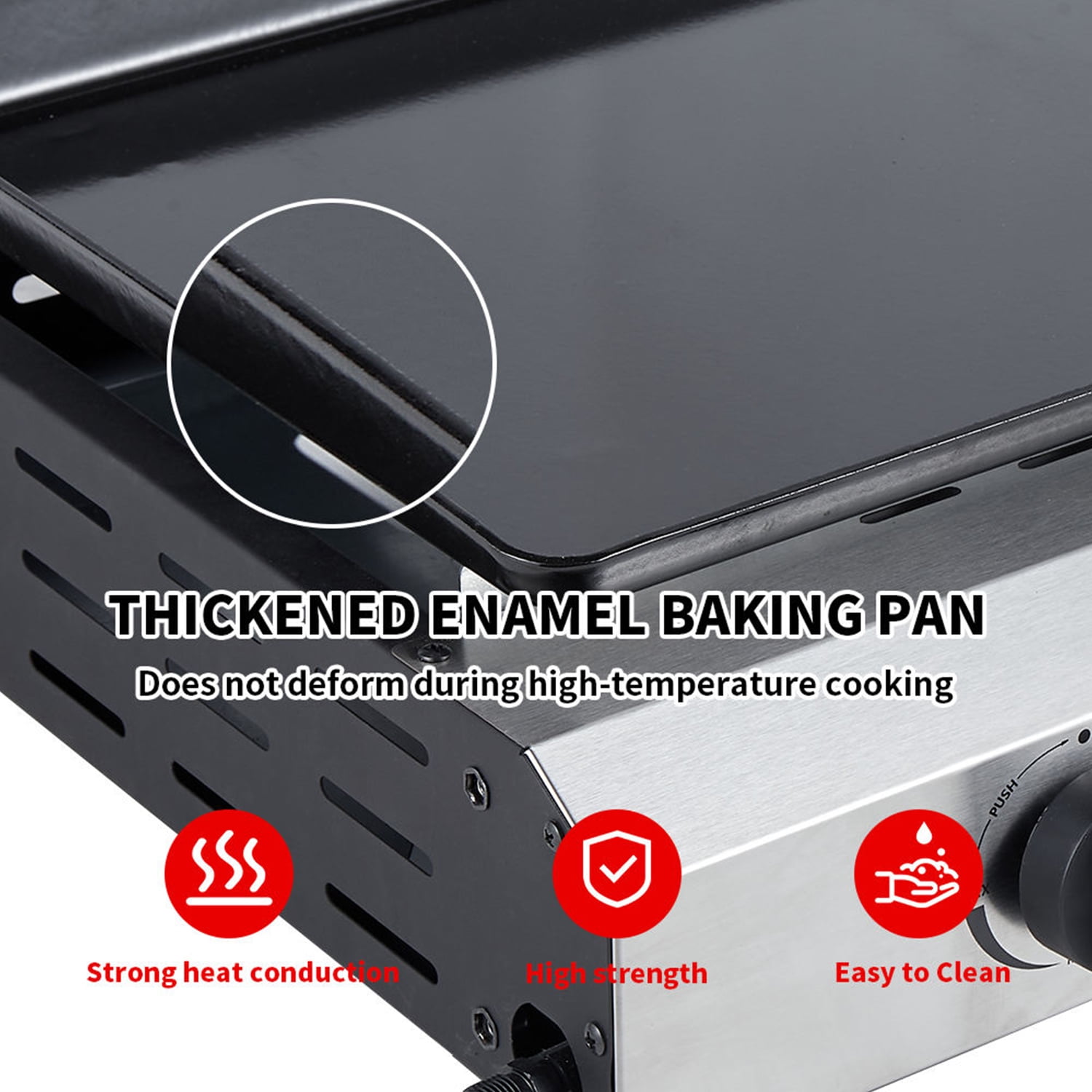 ● Wide Range of Application: With large heating zones and various BBQ tools, our grill can be used to make breakfast, lunch and dinner for the whole family. It’s suitable to cook eggs, pancakes, bacon, steak, potatoes and other grilled food. In addition, you can enjoy the BBQ time in patio, garden, backyard, etc.