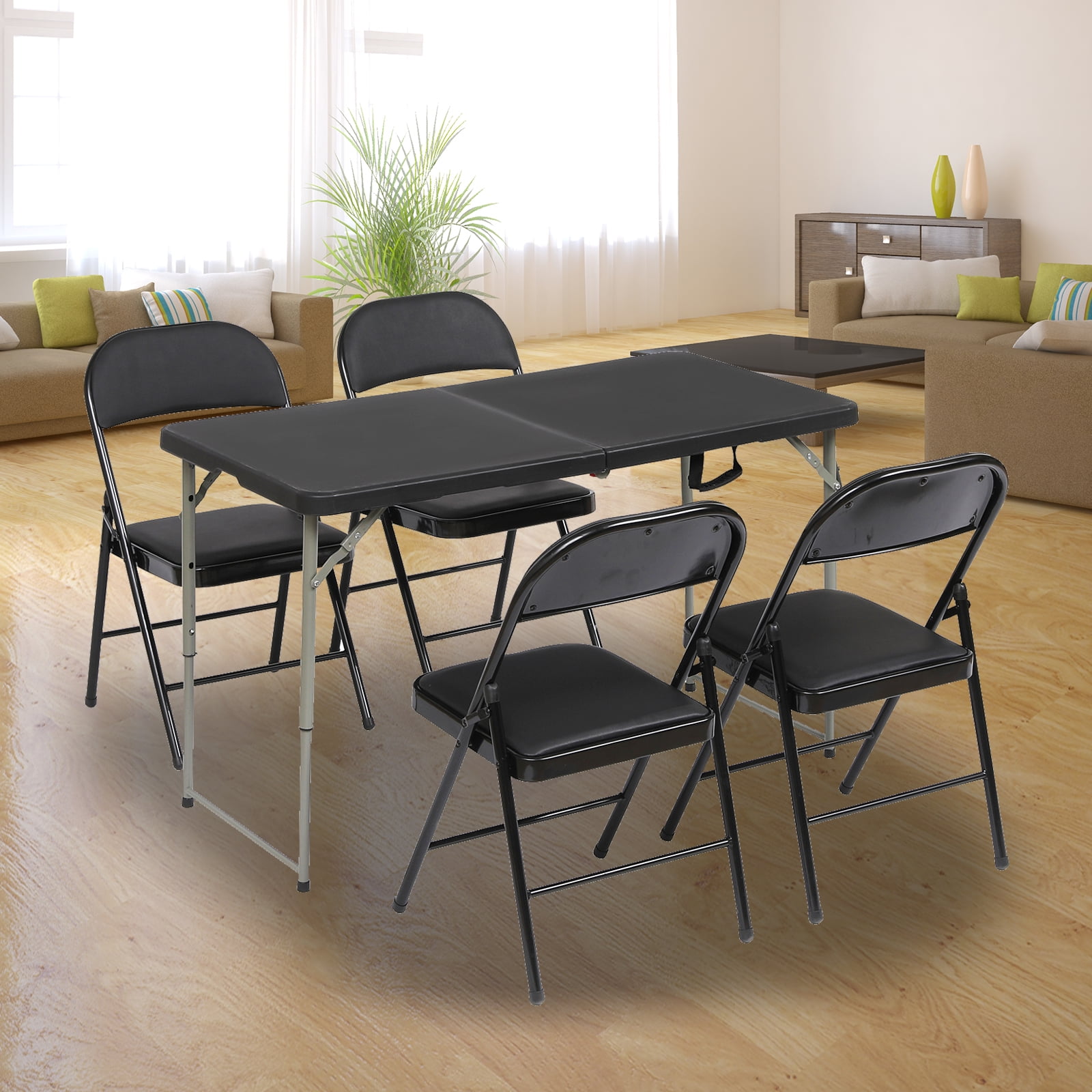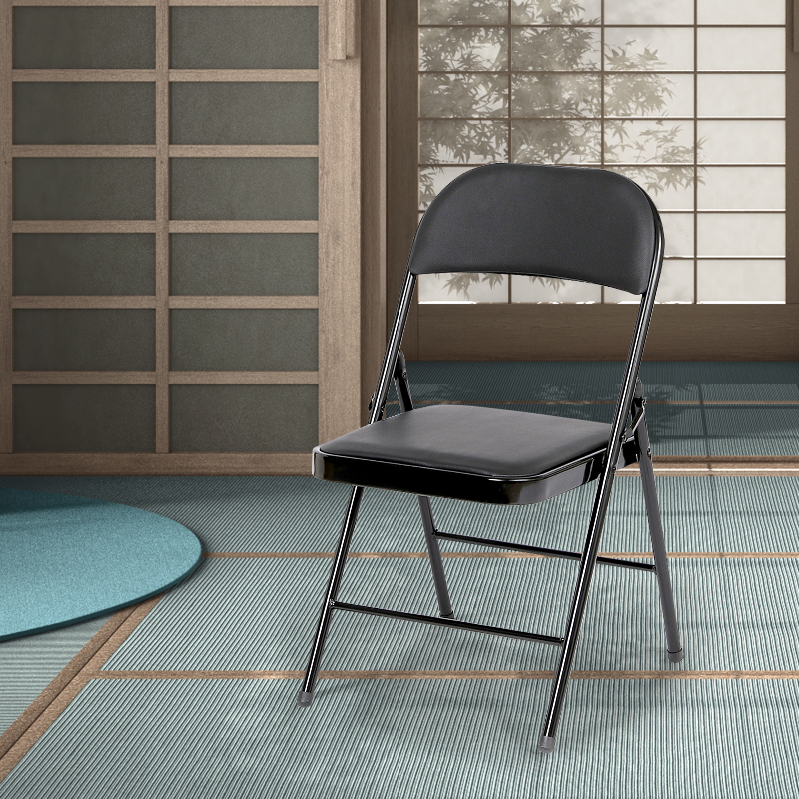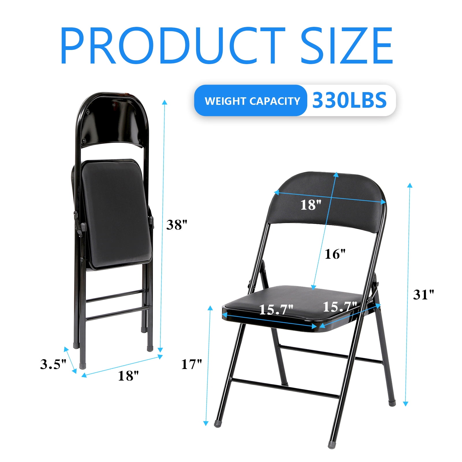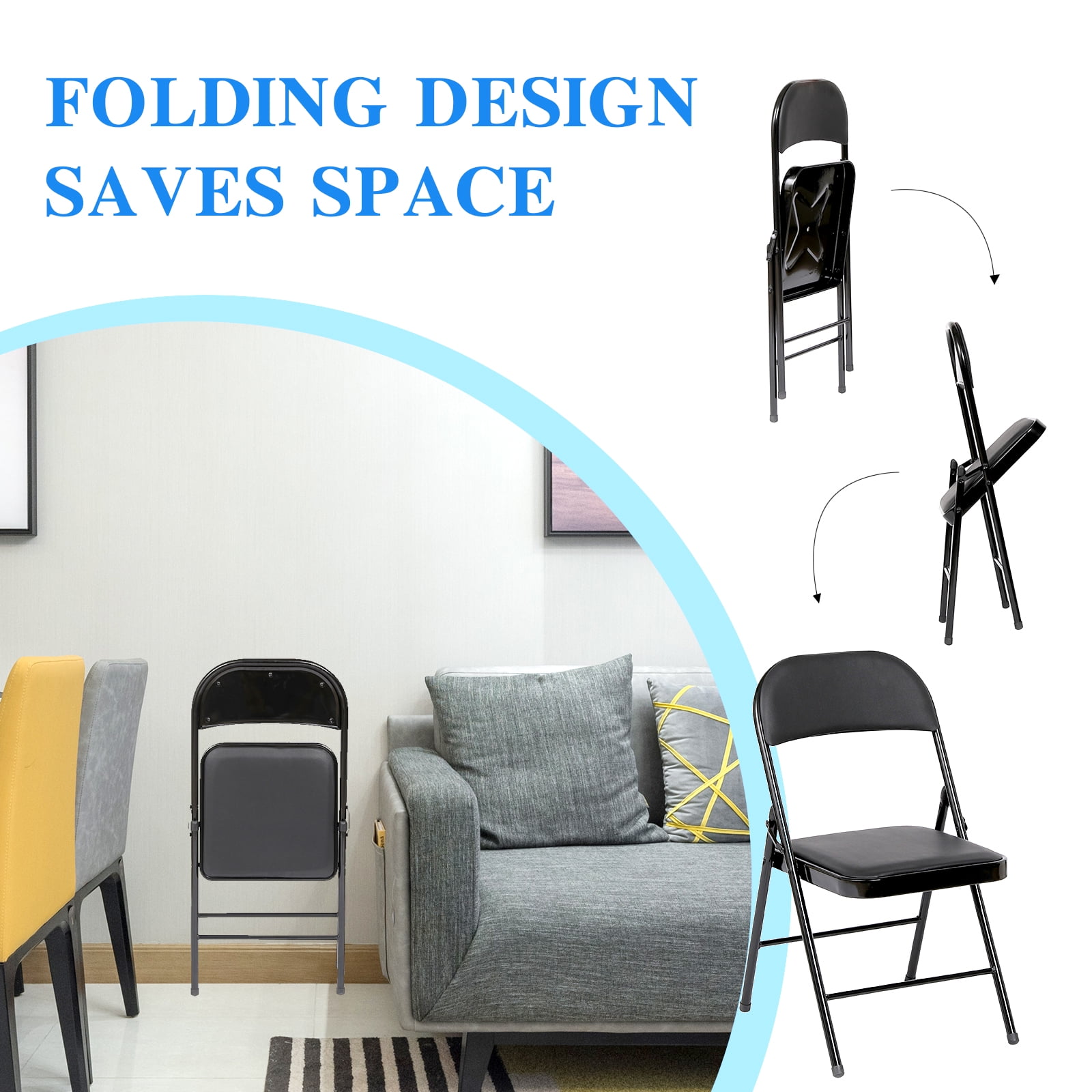 SUGIFT 4 Pack Folding Chairs Metal Frame Home Office Chairs, Black