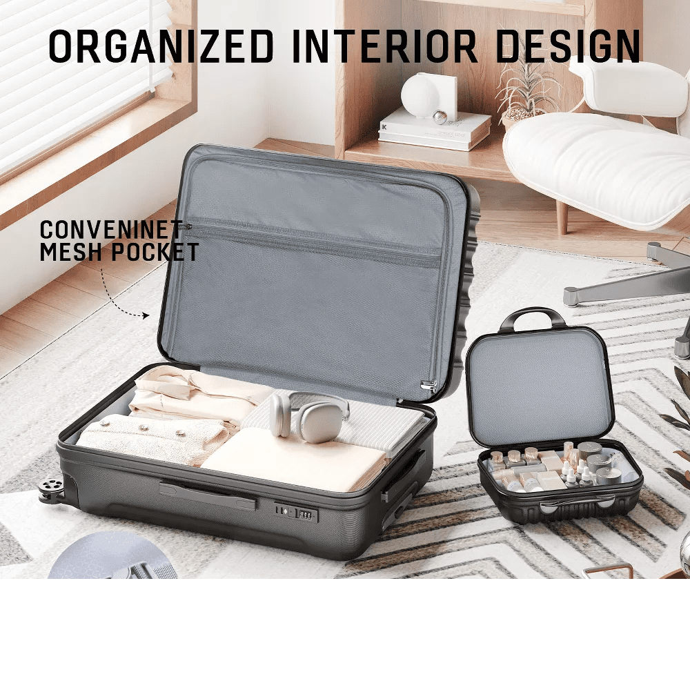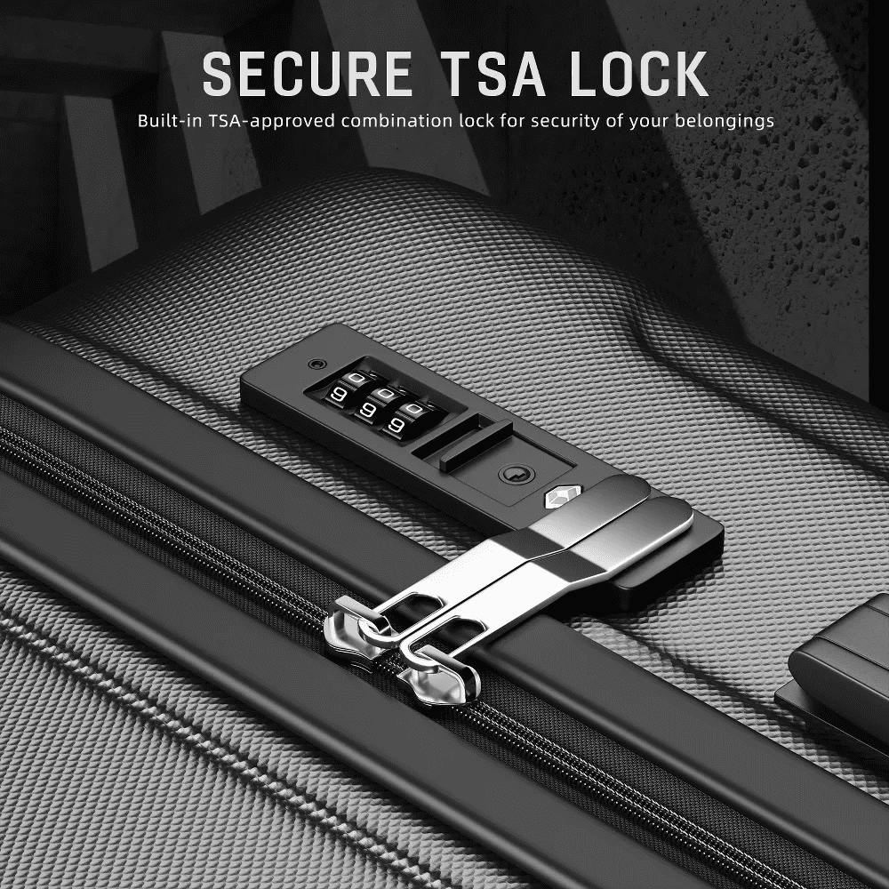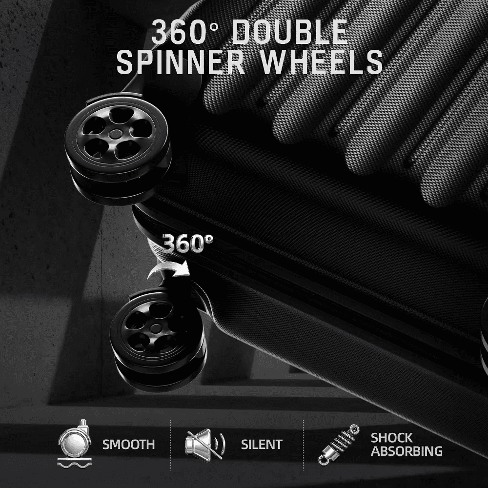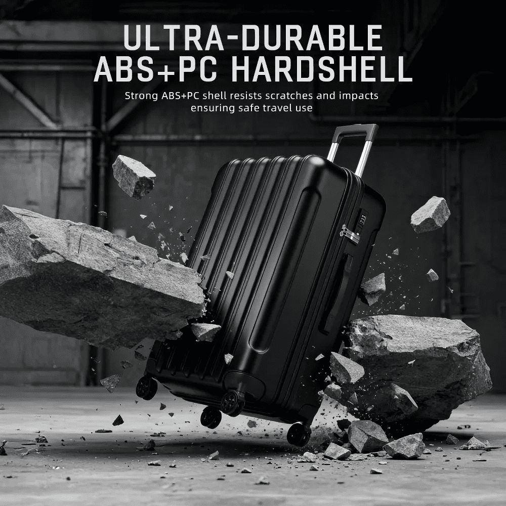Lightweight & Durable: High-strength ABS composite hardshell resists impacts and scratches while remaining ultra-lightweight for effortless handling during long journeys. Versatile 4-Piece Set: Four strategically sized suitcases (carry-on + checked options) adapt to weekend getaways, extended trips, or family travel needs. TSA-Approved Security: Integrated TSA-accepted combination locks allow seamless baggage inspections without damage, keeping valuables protected worldwide. TSA-Approved Security: Integrated TSA-accepted combination locks allow seamless baggage inspections without damage, keeping valuables protected worldwide. Smooth 360° Maneuverability: Dual-row 8-wheel spinner system glides effortlessly across surfaces with whisper-quiet rolling, even on rough terrain.