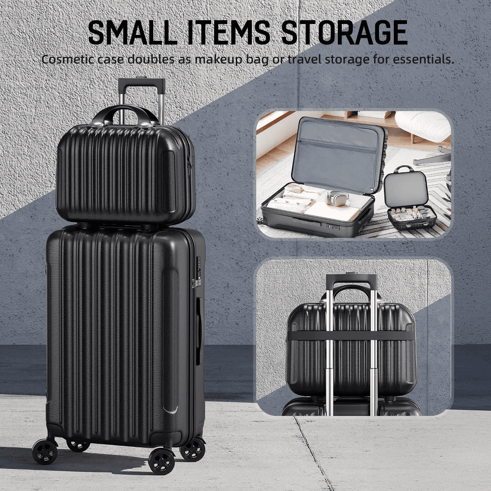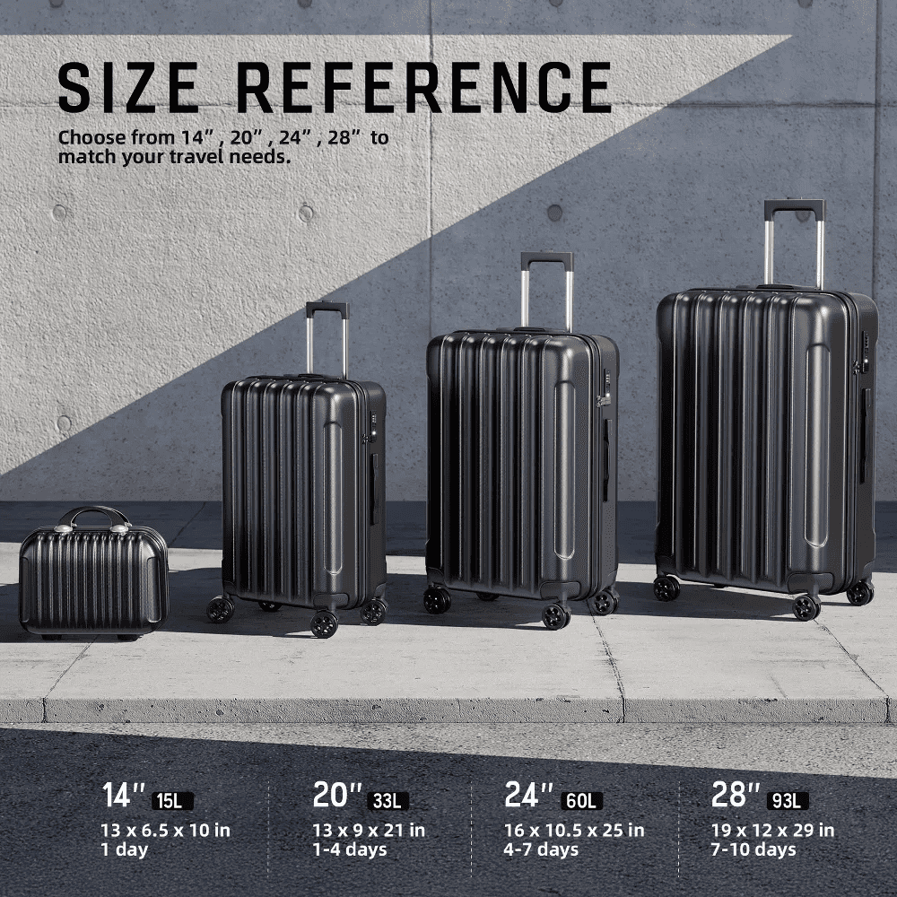 You’ll always be ready for an exciting getaway when you have the SUGIFT 4-Piece Luggage Set with TSA Lock. Set includes one 14″ one 20″, one 24″, and one 28″ suitcase Sturdy top handle, strong zippers, durable spinner wheels, and telescoping handles If you are looking for luggage set like this, do not hesitate to place an order! Large capacity and light weight allows you to carry many items but doesn’t feel tired Durable, lightweight, and water-resistant Suitable for flights, trips, camps and outdoor activities 【ABS Material Lightweight Luggage】SUGIFT Luggage set made from extra strong ABS material, which is lighweight and extremely durable. 【4 Piece Suitcase Sets 】The 14 inch handbag can store some daily necessities such as cosmetics, water glasses, etc. which is easy to access at any time.20 & 24inch luggage is perfect for business and personal travel. 【Suitcases with Spinner Wheels】Multidirectional smooth and silent 360°wheels. Sturdy and durable material ensures long journey usage and safety. It has strong bearing capacity. Smooth rotating wheels can help save your strength and make your suitcase lighter. 【Luggage with TSA Lock】TSA customs password lock design to avoid violent damage to the luggage. which allows only TSA agents to inspect your bags without damaging the lock when traveling.Only TSA agent have the keys. Usually we use a digital code to open the lock. 【 Aluminum Telescopic Handle】Suitcase has a sturdy ergonomic metal 3-step telescopic handle. The side handles are easy to lift. Push-button locking handle adjusts to multiple heights for comfort when you daily travel.