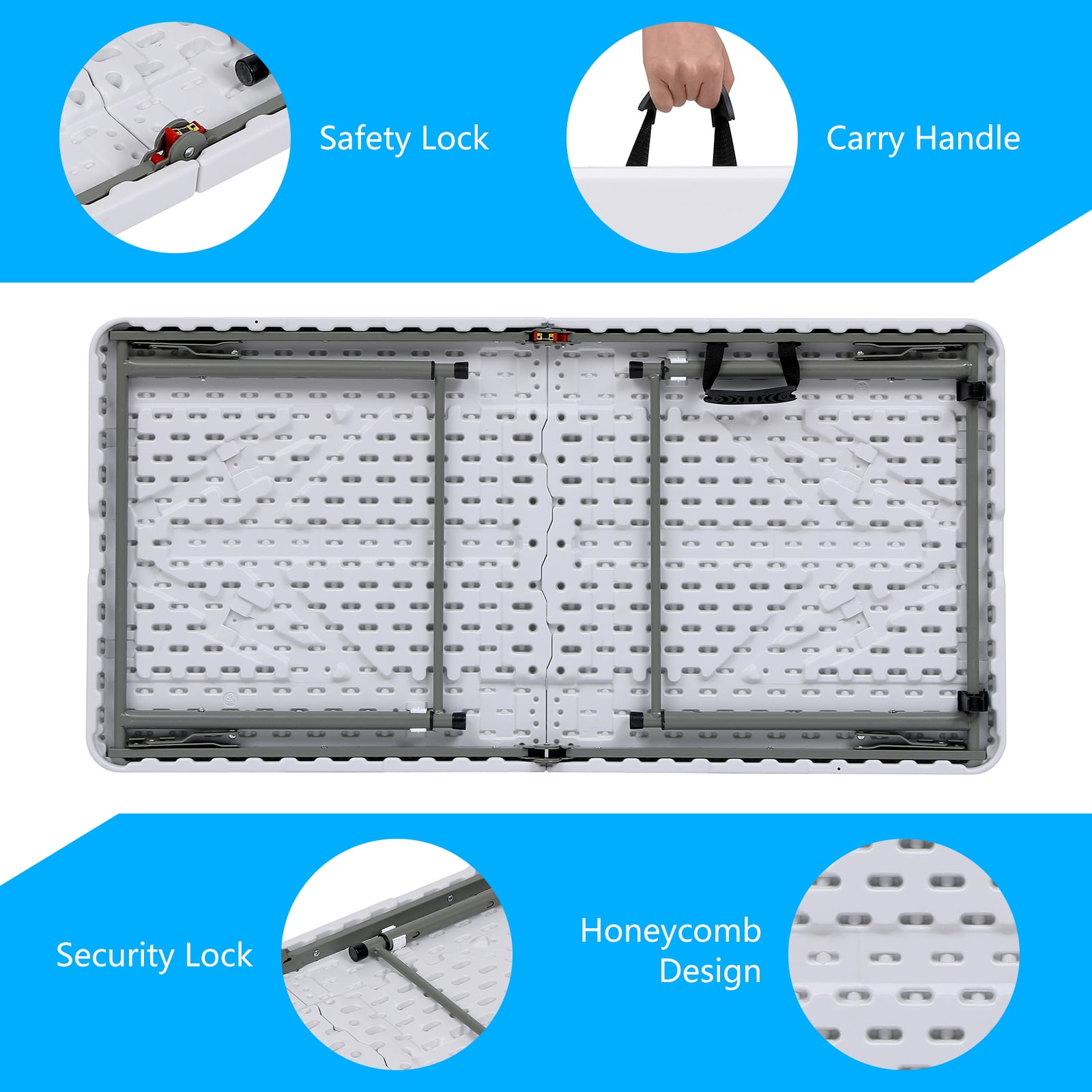 Height Adjustable: Three Flexible Height 19,24,29 can adjustable, suitable for different places to meet your different needs. Multi-purpose Table: This folding table can be used for family dinners, work and study tables, activity conference tables and outdoor camping. No Assemble Needed:Folding design, It is portable and no assemble needed. It won’t take up a lot of space when placed in the trunk of your car. It’s your best choice for outdoor camping. High Quality:Made of heavy duty blow molded High Density Polyethylene(HDPE),Honeycomb design, the pressure exerted on the desktop is dispersed, making the 4-foot folding desktop show excellent carrying capacity, which can reach 300 pounds. Durable and Strong: Powder-coated steel round tubing legs with bracing design,enhance strength and stability. The foot cap design on the table foot not only effectively prevents the floor from being scratched, but also reduces the risk of slipping.