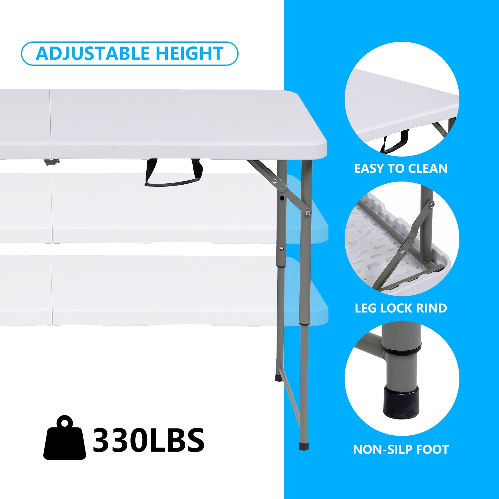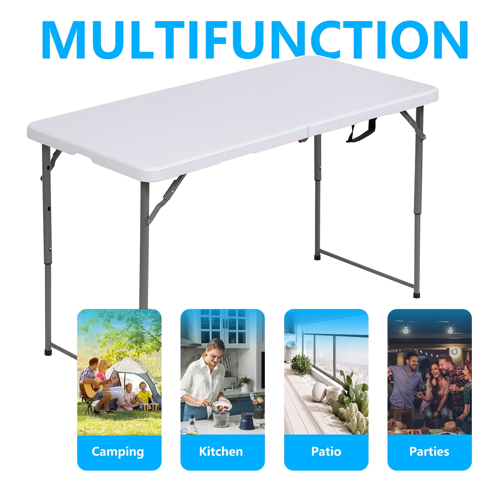 SUGIFT 4ft Folding Table, Adjustable Height Camping Table Office Table for Indoor/Outdoor Picnic Camping Bench,White