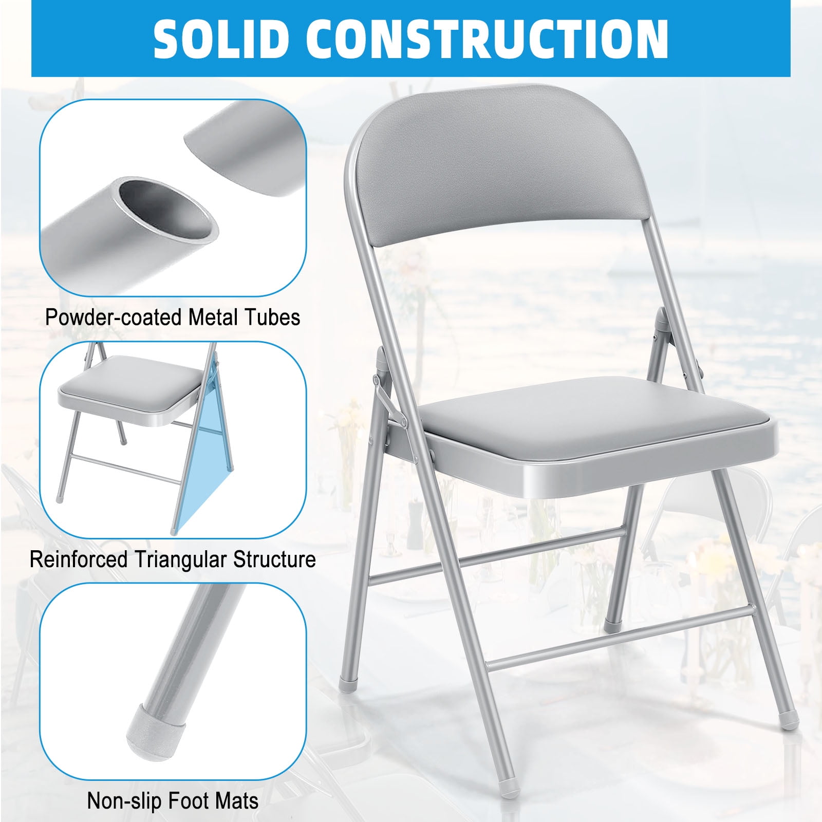 SUGIFT 6 Pack Vinyl Padded Folding Chair for Indoor and Outdoor, Gray