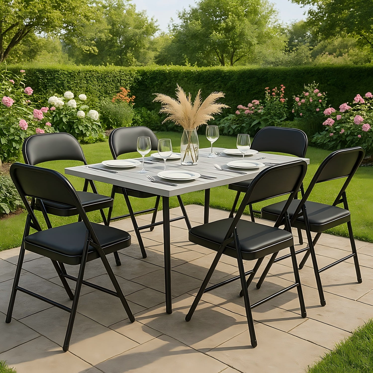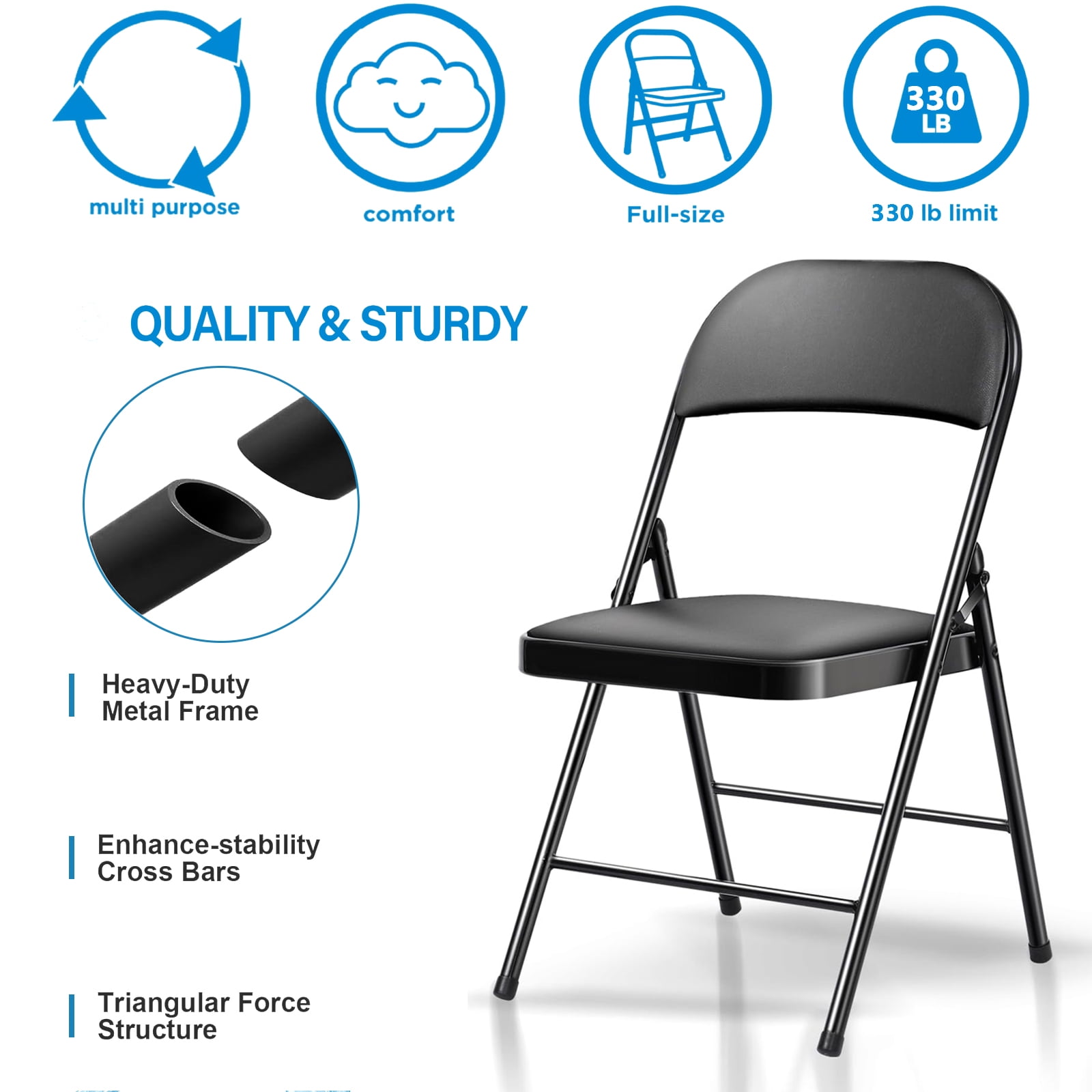 SUGIFT Deluxe Padded Seat and Metal Back Folding Chairs, Black, 6 Pack