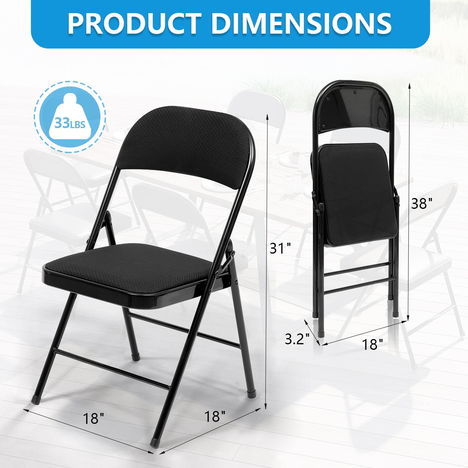 SUGIFT Fabric Padded Folding Chair Portable Dining Chairs 4 Pack, Black, Adult