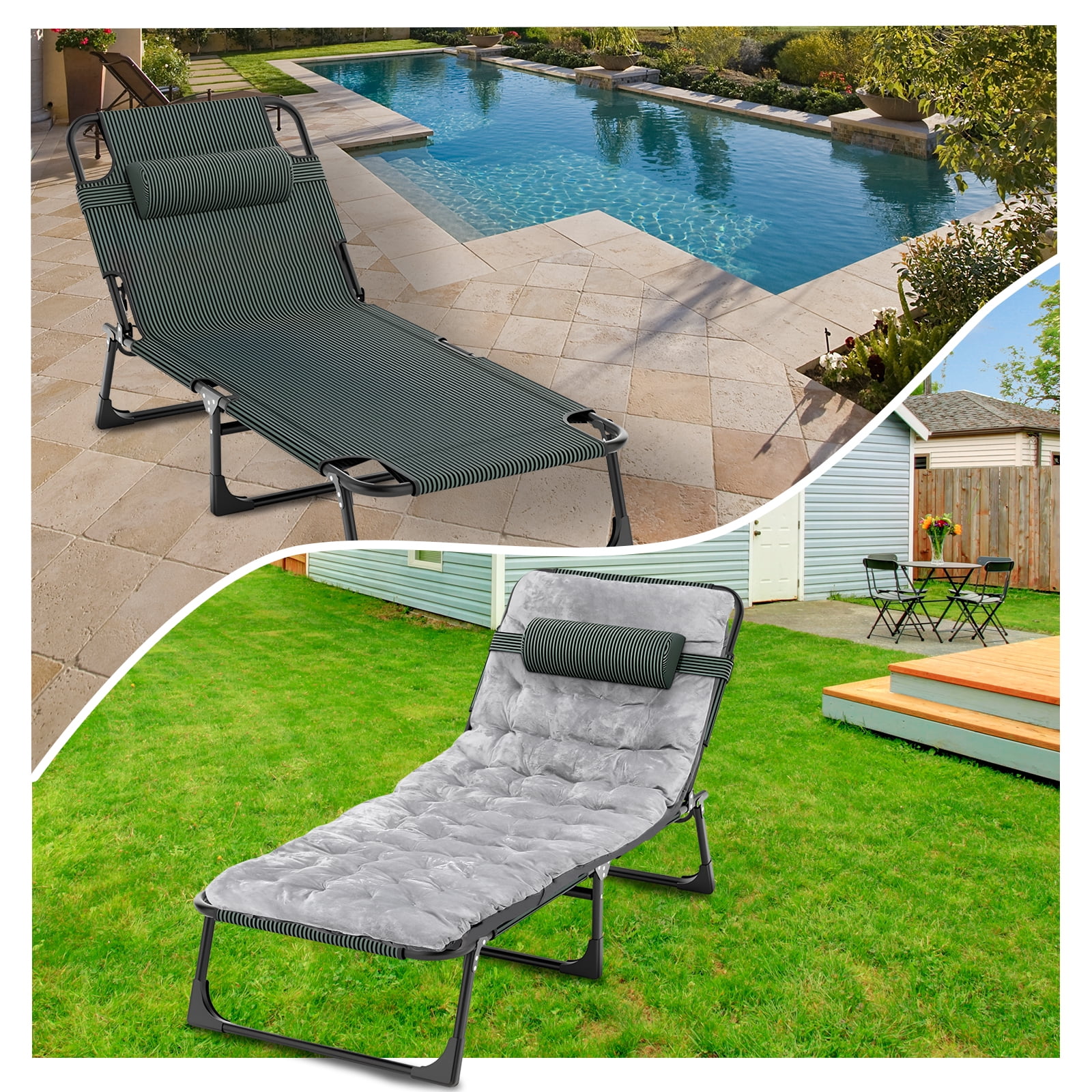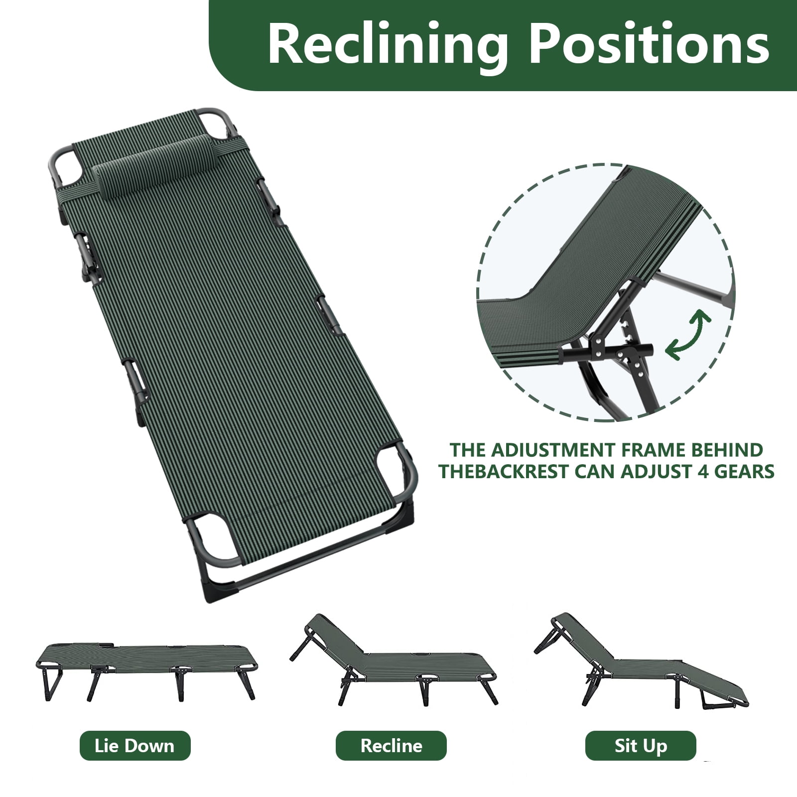 SUGIFT Folding Camping Cot Bed W/Mat for Adults, Adjustable 4 Position Heavy Duty Outdoor Lounge Chair for Camping, Pool, Beach, Patio