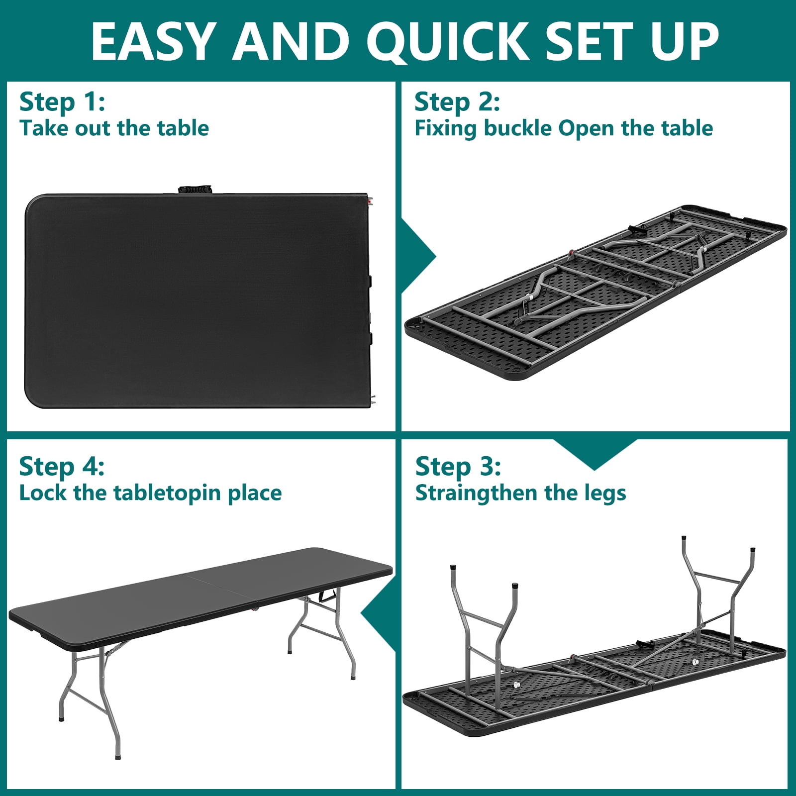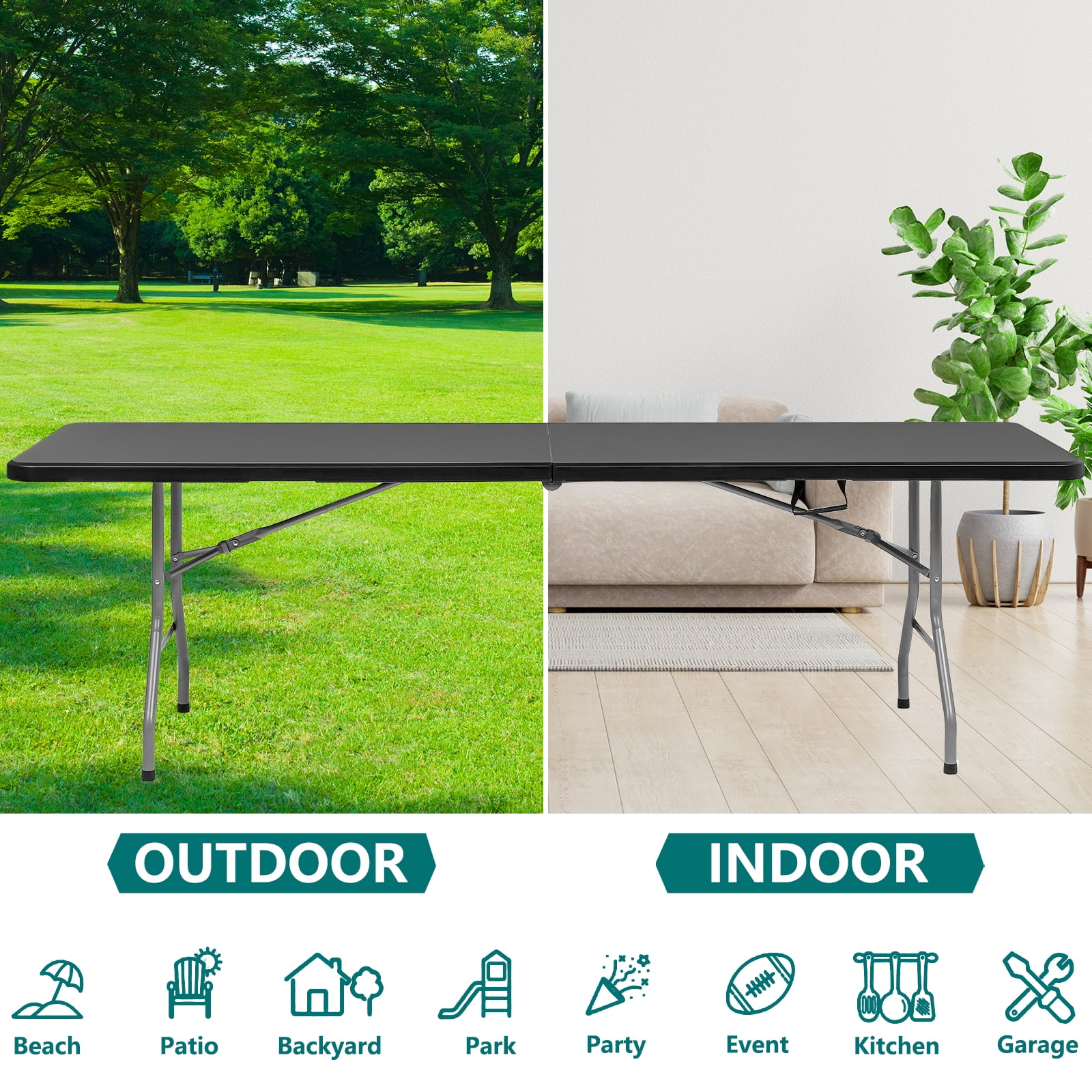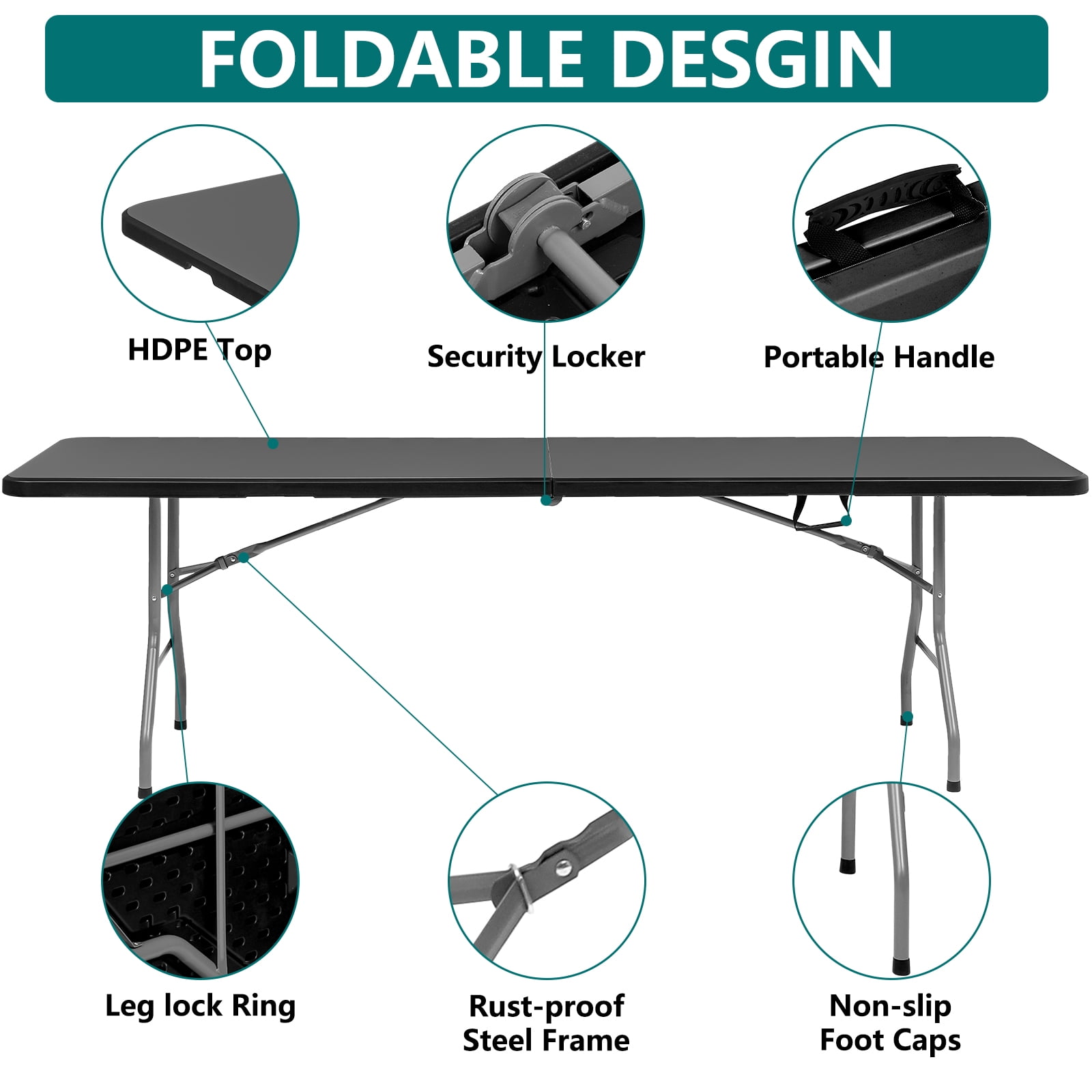 SUGIFT Folding Table 8ft Portable, Durable, and Heavy-Duty Design Fodable Table for Indoor/Outdoor Events, Black