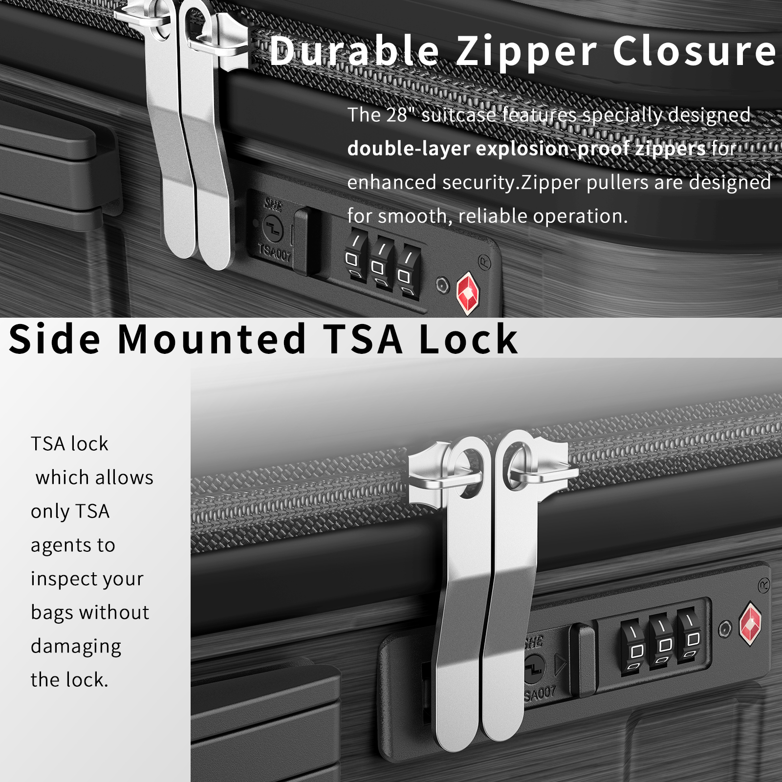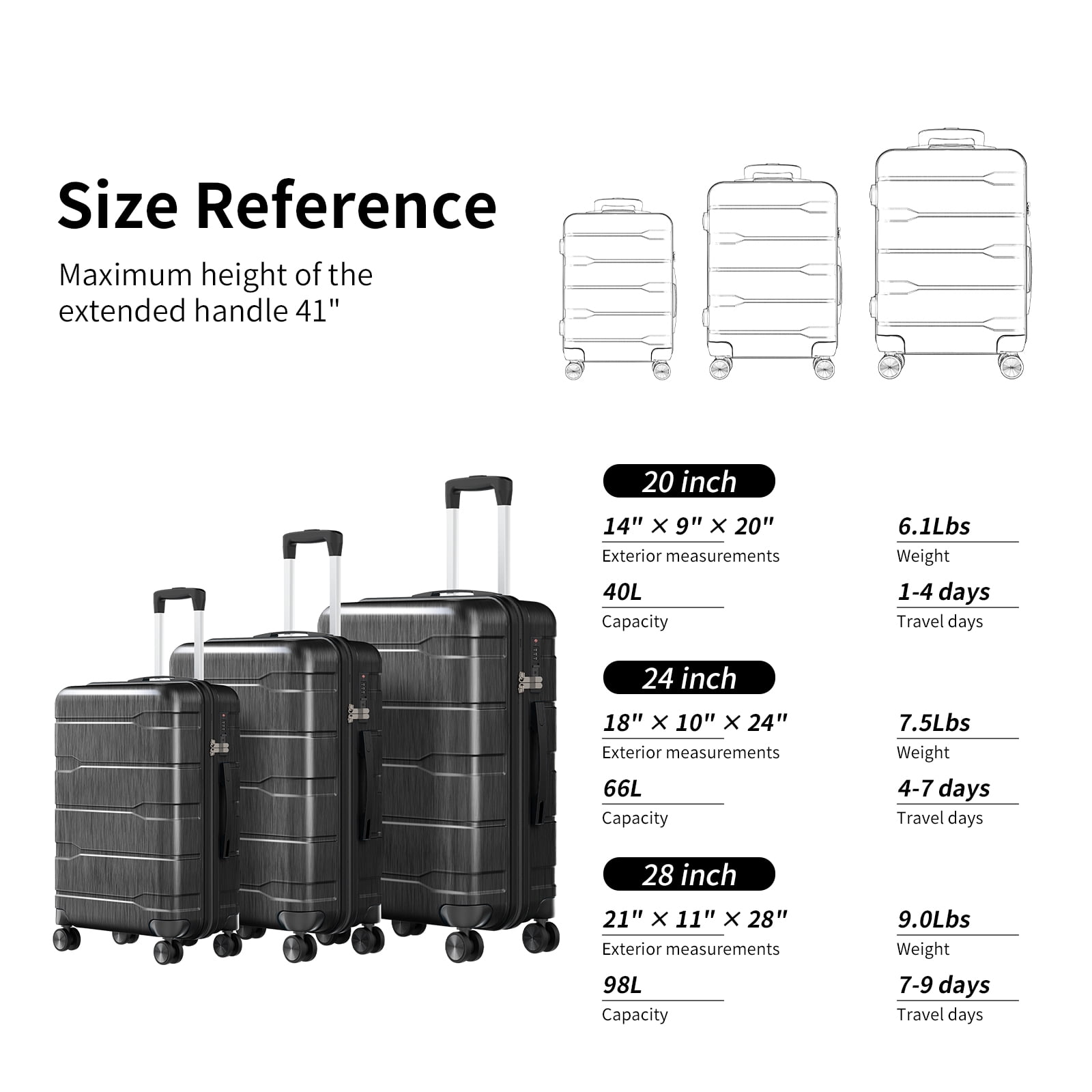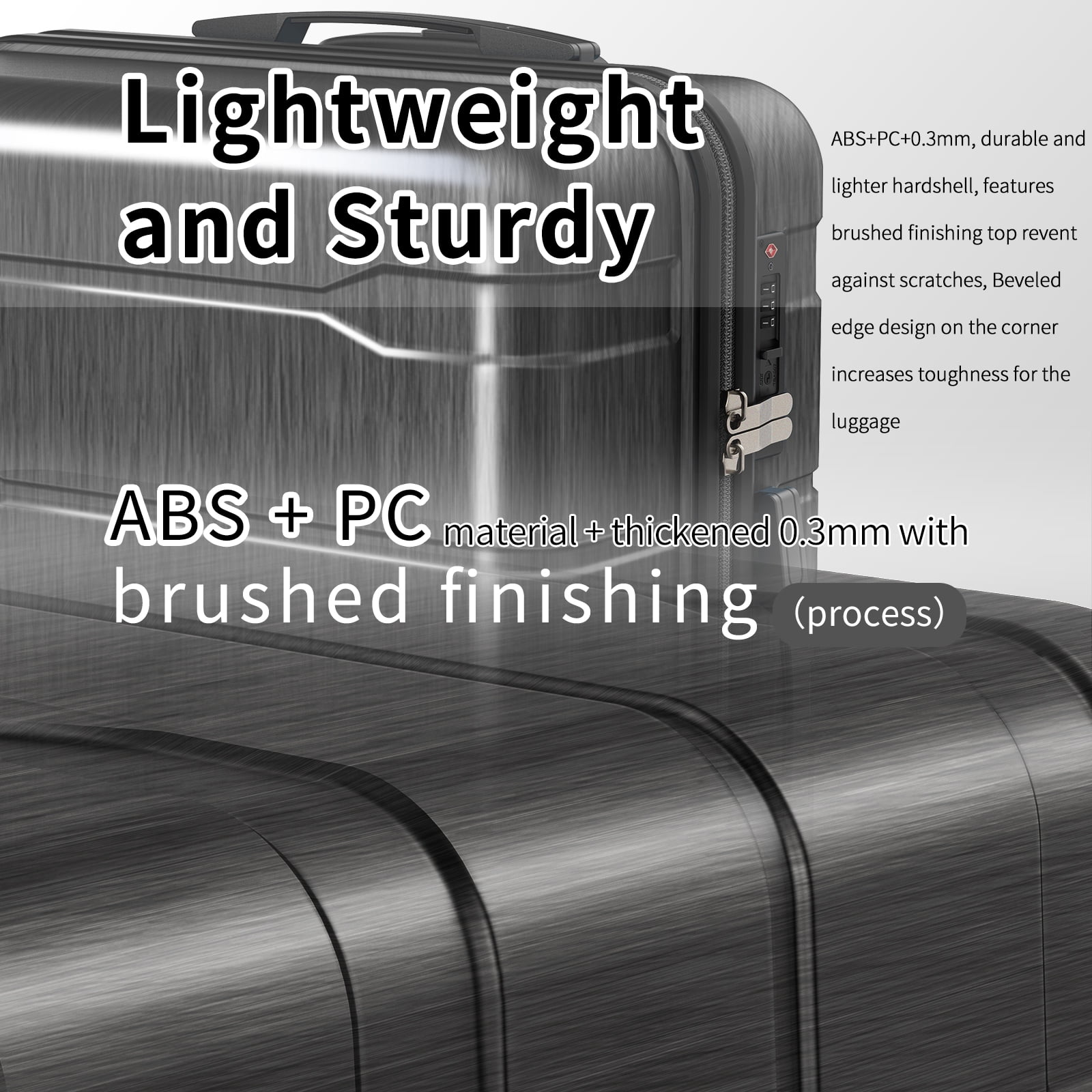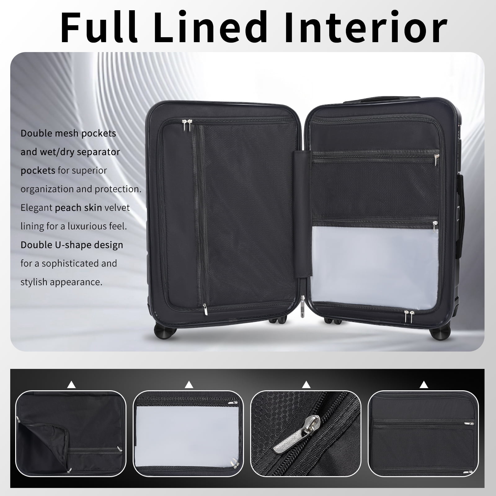 Materials: Enhanced PC and ABS with an additional 0.3mm thickness and a durable PC film for ultimate protection Handle Sturdy all-aluminum telescopic handle designed for frequent travelers Wheel System: Newly upgraded quiet wheels for effortless, noise-free transport Interior Fabric: Luxurious peach-skin velvet lining with superior tactile quality Design: Sleek, space-efficient design ideal for various travel demands