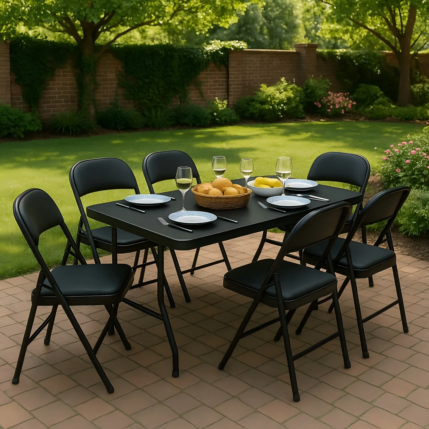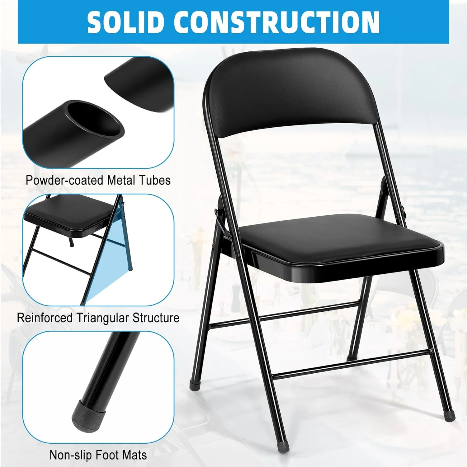SUGIFT Padded Seat and Metal Back Folding Chair, Black, 4 Pack
