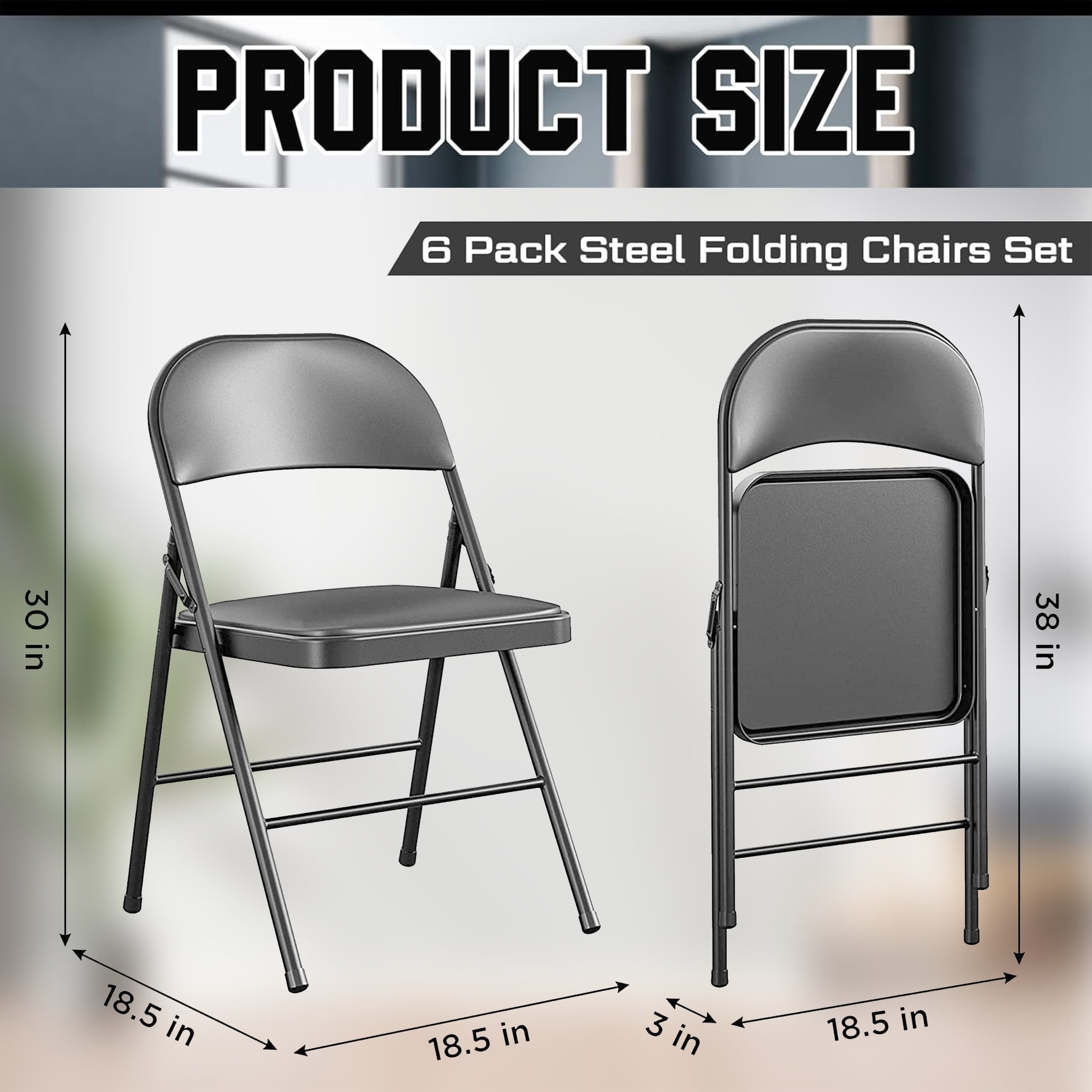 Heavy Duty and Durable: Vinyl padding and steel frame allows it to withstand all desired needs. Can be paired with our folding tables to make a complete set for future indoor/outdoor events or adult daily seating. Hinge Fold: Folds flat to provide effortless, non-invasive storage wherever is most convenient. Assembled Product Dimensions (L x W x H):18.1 x 18.1 x 30.71 Inches Maximum Weight: 330lb