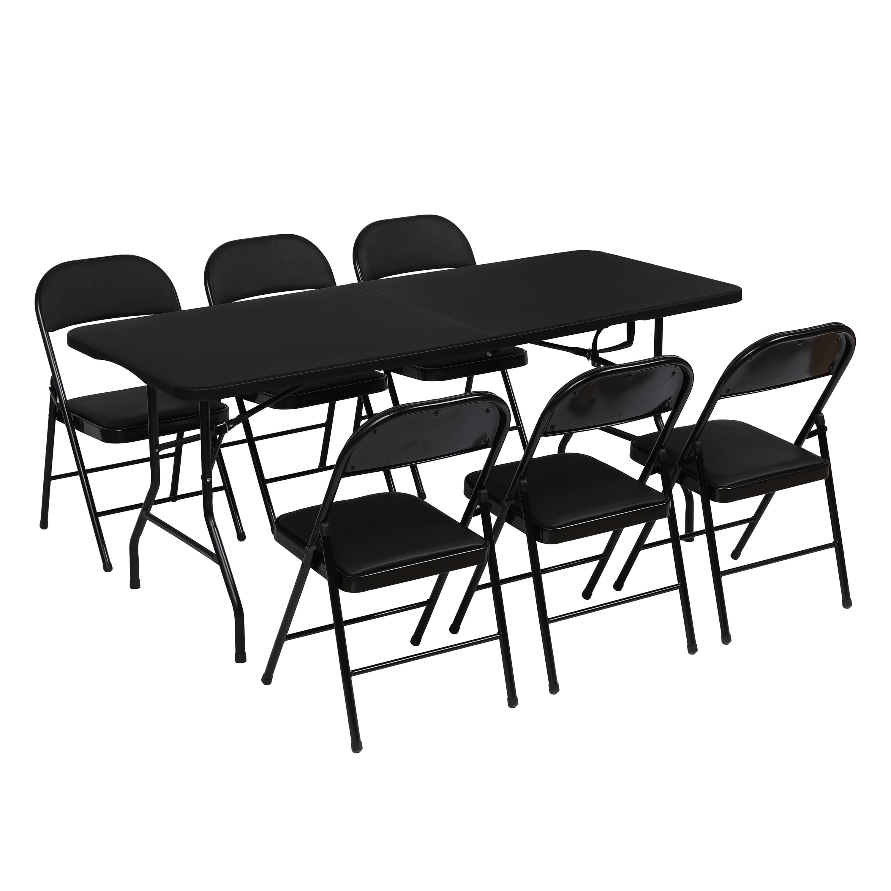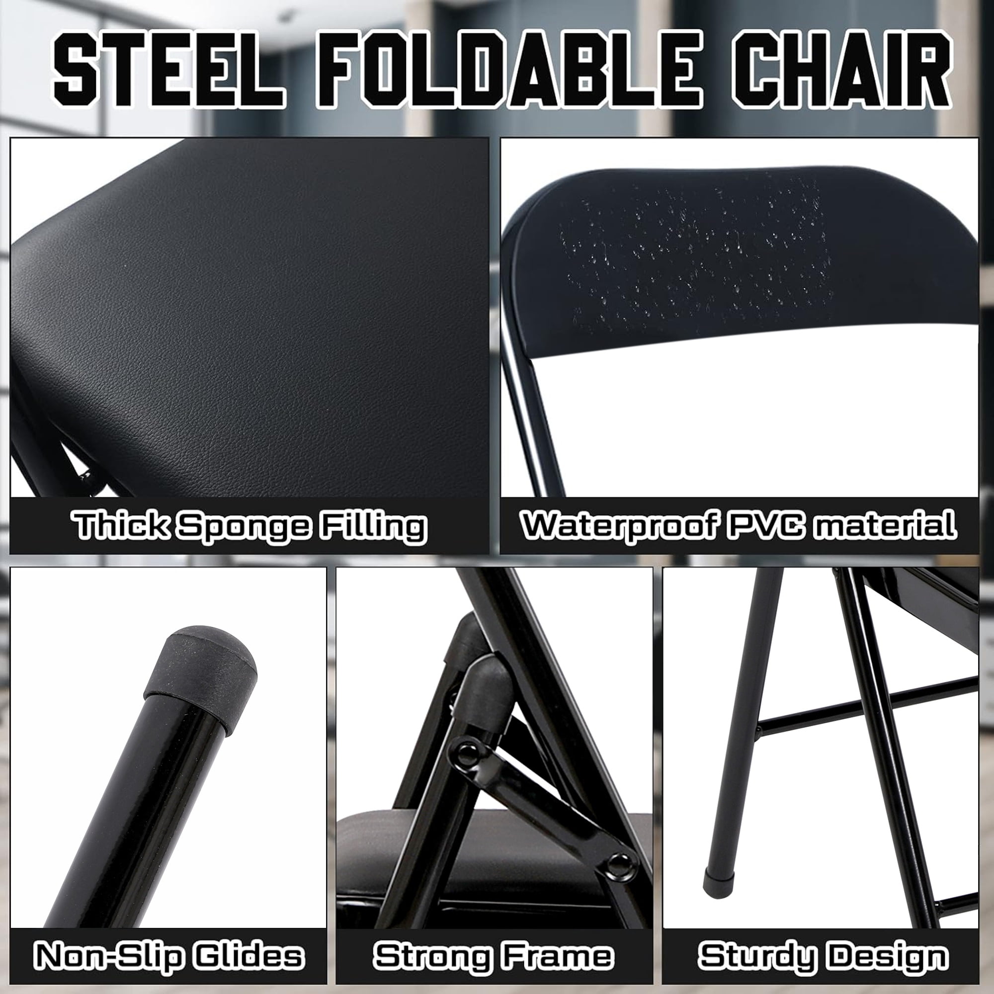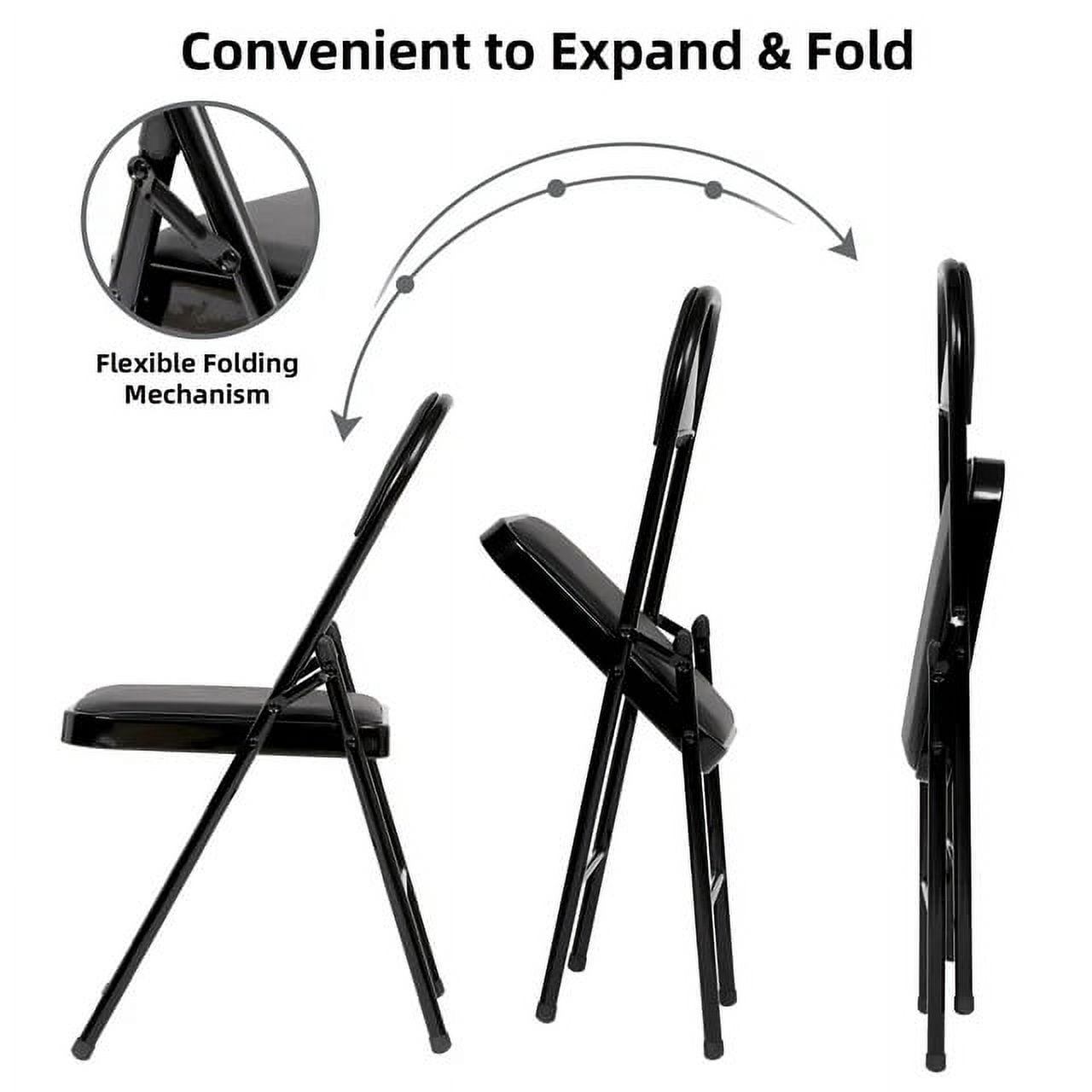 Enhance your next birthday party, holiday gathering, or wedding with the SUGIFT padded seat and metal back folding chair! Constructed out of a vinyl seat and steel frame combination, this chair to be a long-term purchase you can use with peace of mind and no regrets! The black steel legs make our chair heavy duty while retaining its stylish simplicity. Featured with this are non-marring leg tips intended to prevent slipping when in use and protect your floor’s surface from any possible damage. Before storing, simply wipe down this easy to clean chair using a damp cloth. When not in use, you can easily fold this lightweight chair for flat, compact storage and easy transportation. Built to last, this chair includes double cross braces and is constructed of durable all-steel allowing for a 330lbs. weight capacity. Create your dream dining arrangement for entertaining or everyday use.