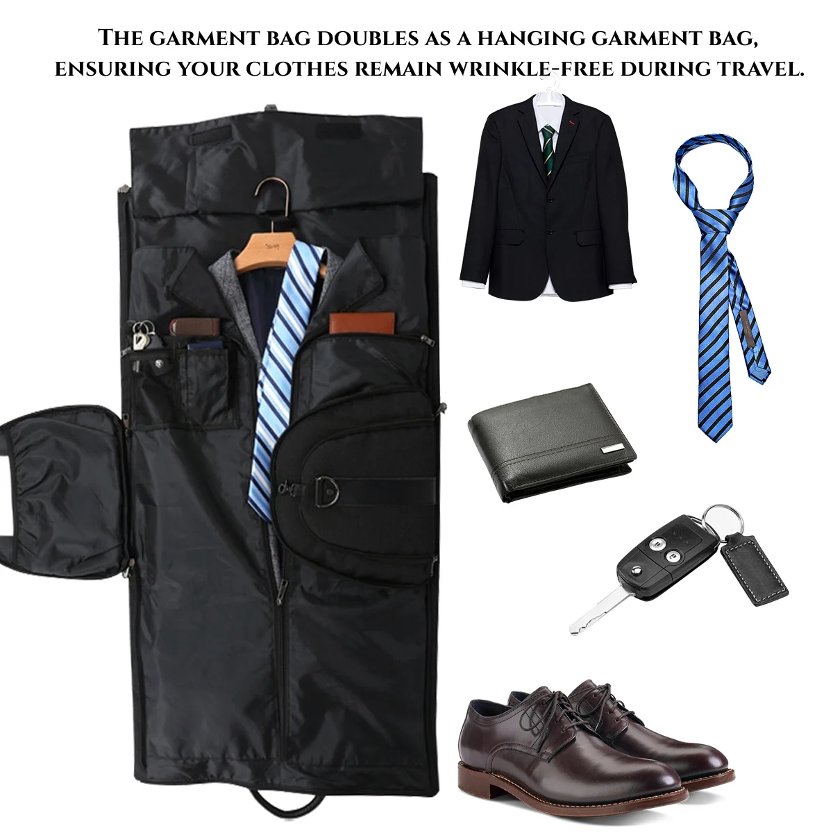 NO MORE WRINKLES — The garment bag doubles as a hanging garment bag, ensuring your clothes remain wrinkle-free during travel. Now you can keep your dress or suit neat and fresh at all times.