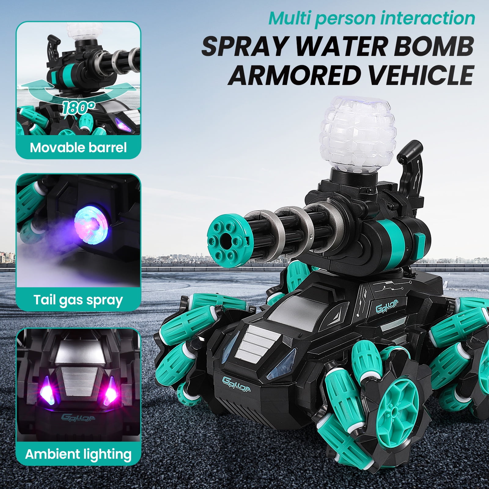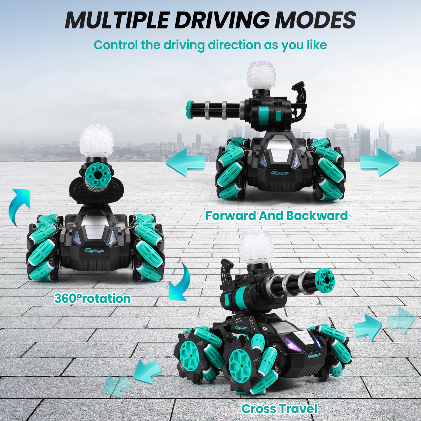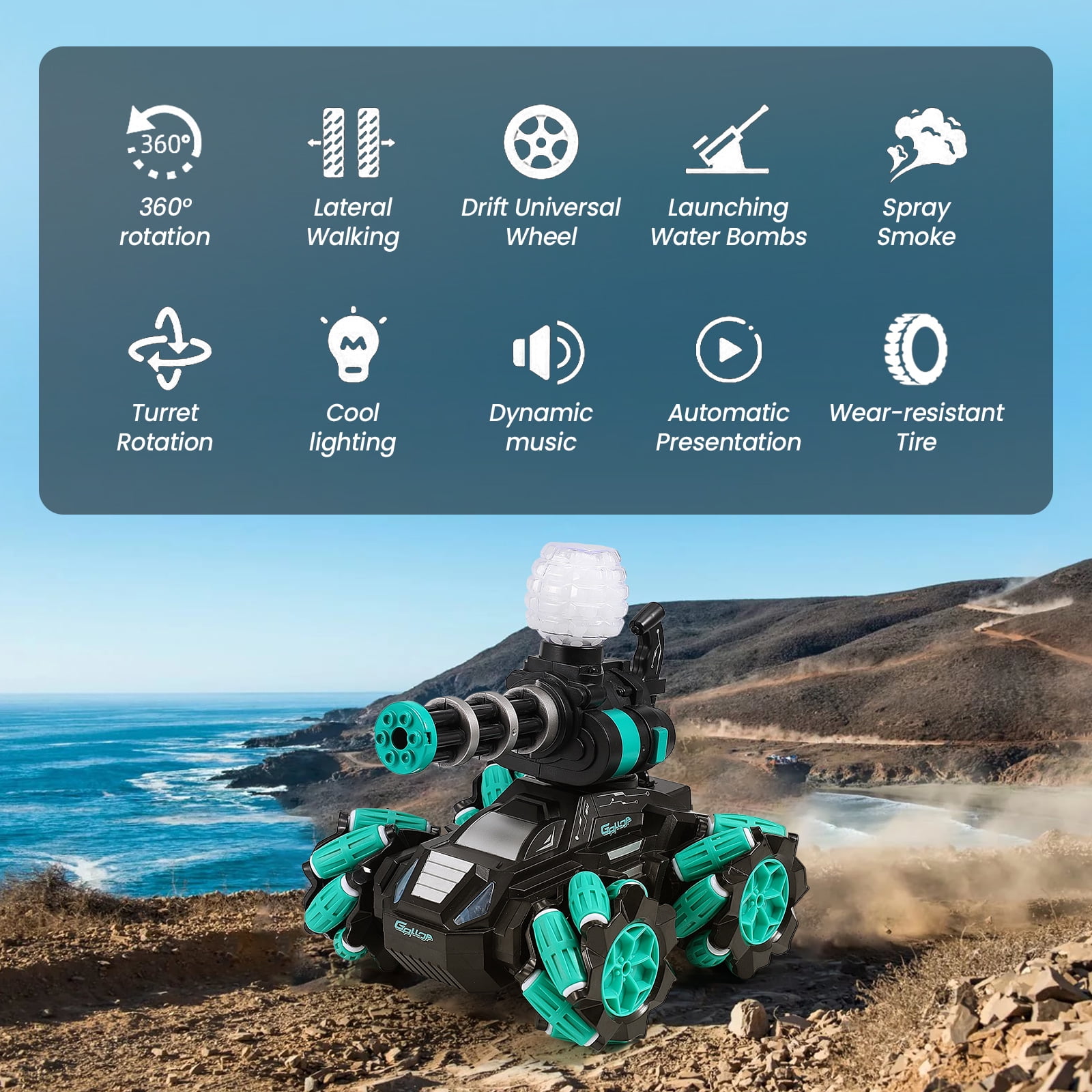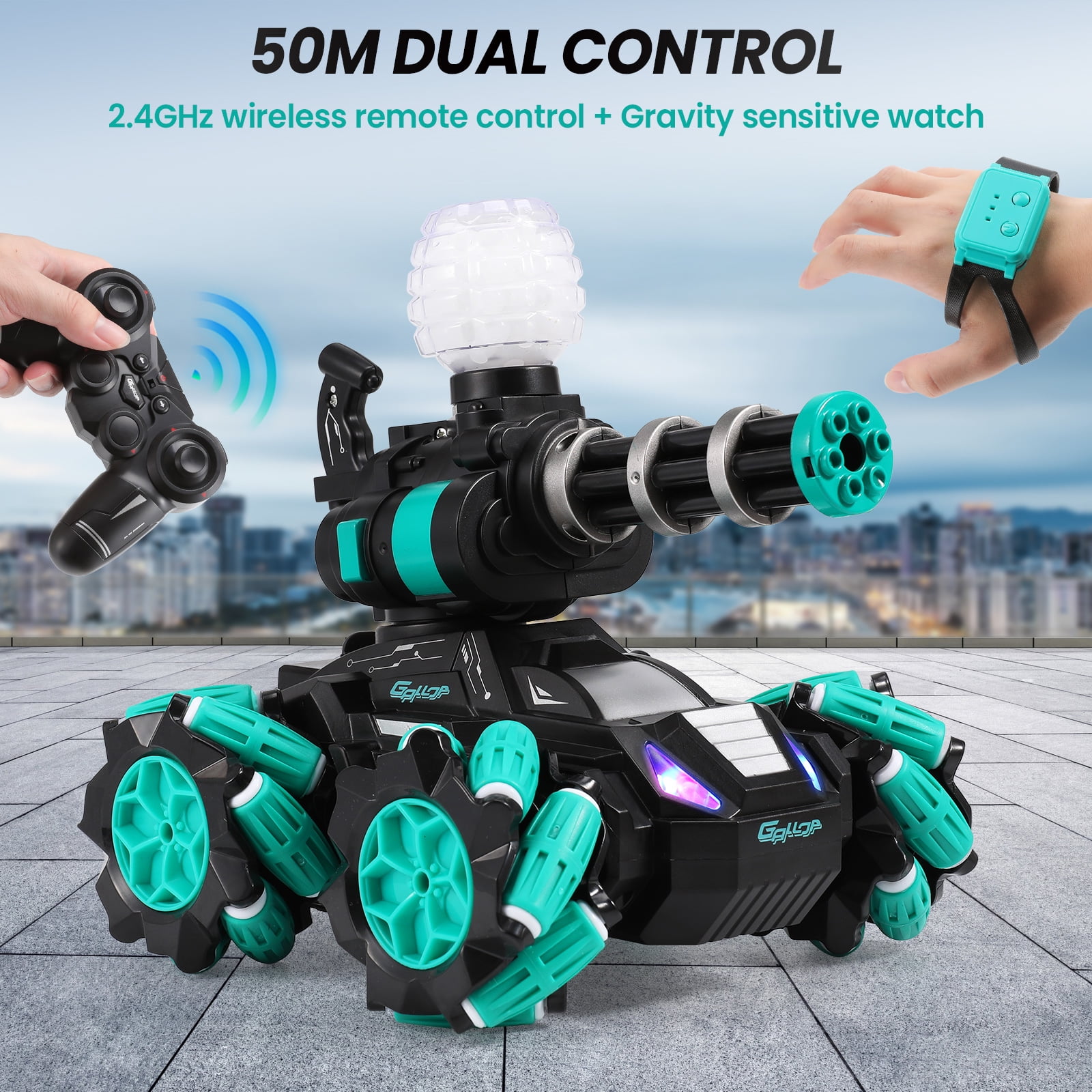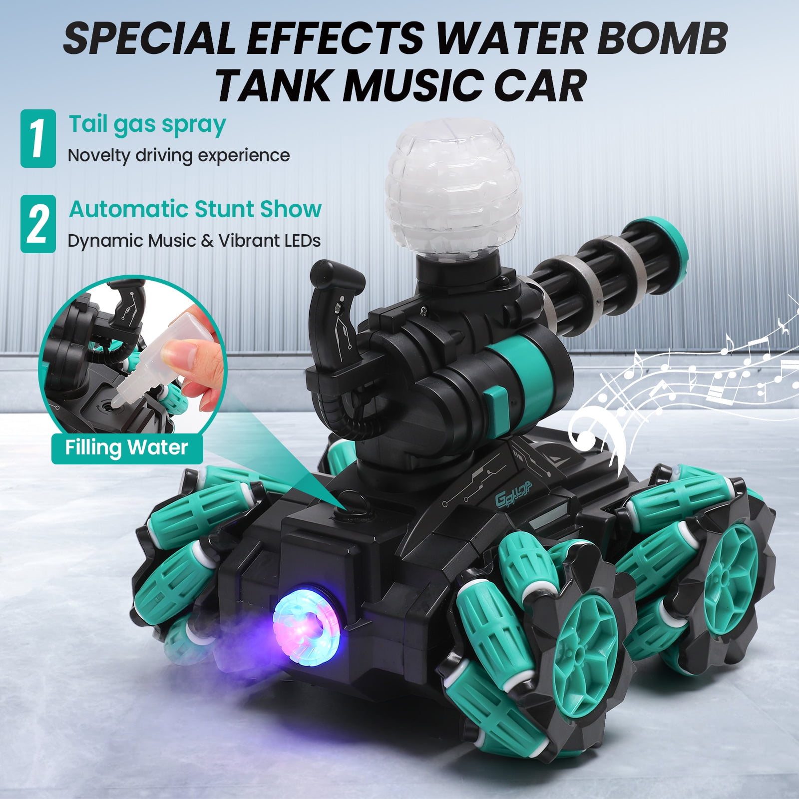 SULOBOM RC Tank Car, Shooting Water Bullets Remote Control Car, Kids Battle Stunt Car, Blow Bubble, Shoot Foam Darts, 360°Rotating, LEDs, Music, Toy Gifts for 6-15 Years Old Boys Girls