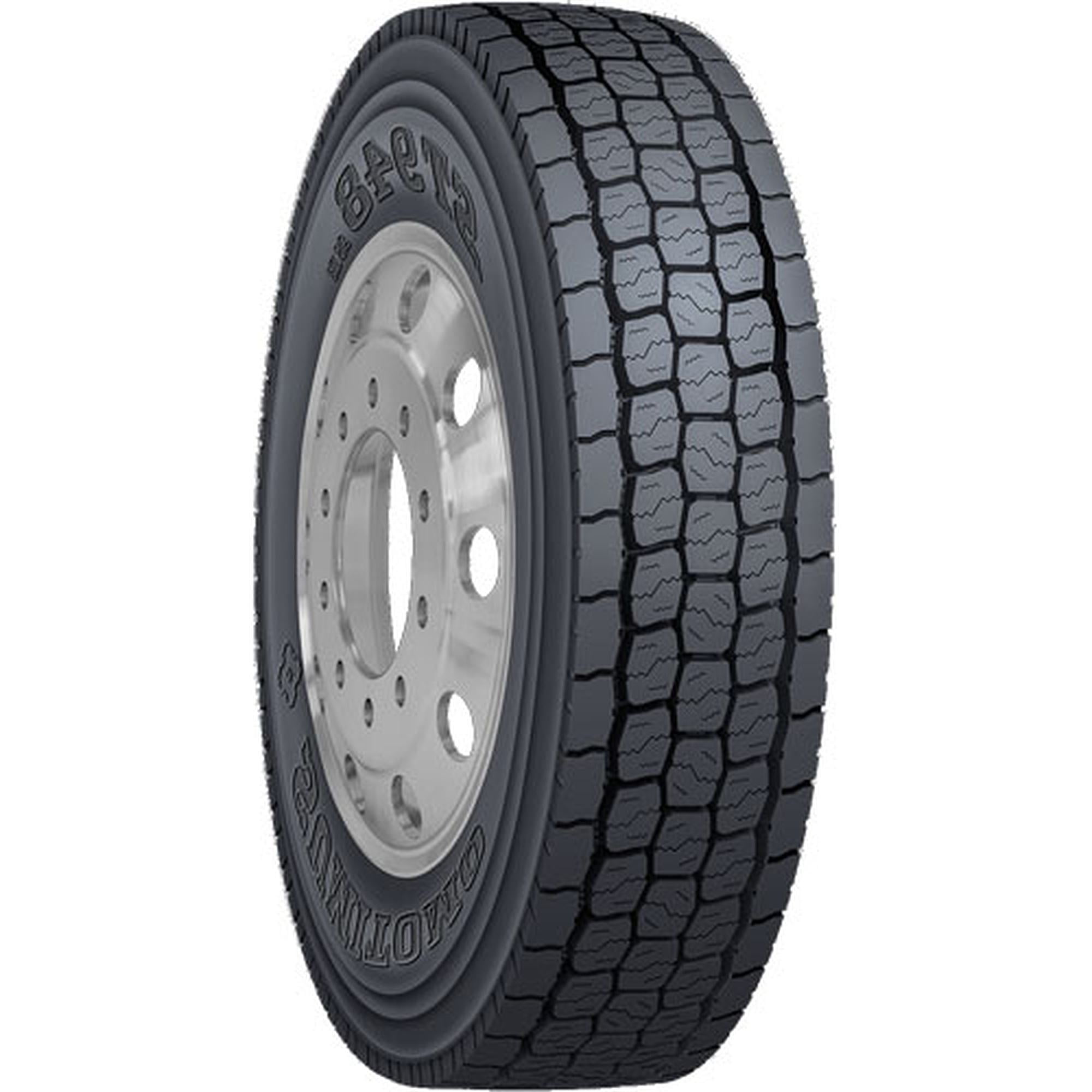 SmartWay certified thanks to a low rolling resistance design that enhances fuel efficiency Stone ejectors built into grooves to protect casing from damage Wide footprint puts more rubber on the road to reduce uneven wear Angled tread blocks and microgrooves allow for solid traction and performance year-round Rim/Wheel is not included with purchase Size: 295/75R22.5 Load Range: G Product May Vary From Picture Wheel/Rim Not Included