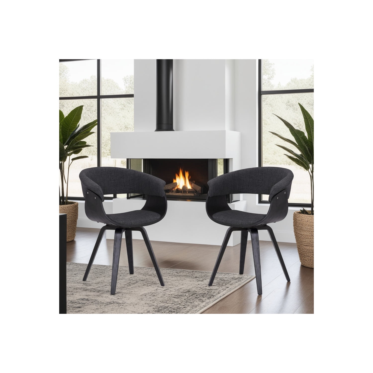 Summer Mid Century Modern Dining Accent Chair for Table Kitchen Desk Vanity in Charcoal Fabric and Black Wood Finish