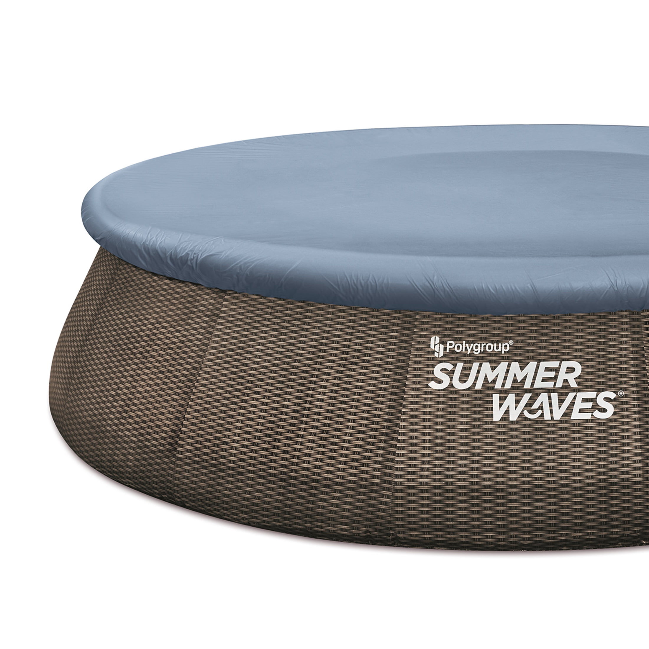 Summer Waves 18 ft Dark Double Rattan Print Quick Set Above Ground Pool, Ages 6 and Up, Unisex: Inflatable pool for backyard Quick Set feature allows quick and easy setup – just inflate the top ring; pool rises as it fills with water Easy-to-use RX1000 Cartridge Filter Pump (110~120 V with GFCI) will keep your pool water clean and refreshing Includes Type D filter cartridge and repair patch Includes SureStep ladder for easy access to pool Includes pool cover to keep debris out Stylish Dark Double Rattan exterior print Durable and puncture-resistant 3-ply Toughmesh materials Repair patch included Approximate size: 18′ x 48″” (5.49 m x 1.22 m) Age: 6+
