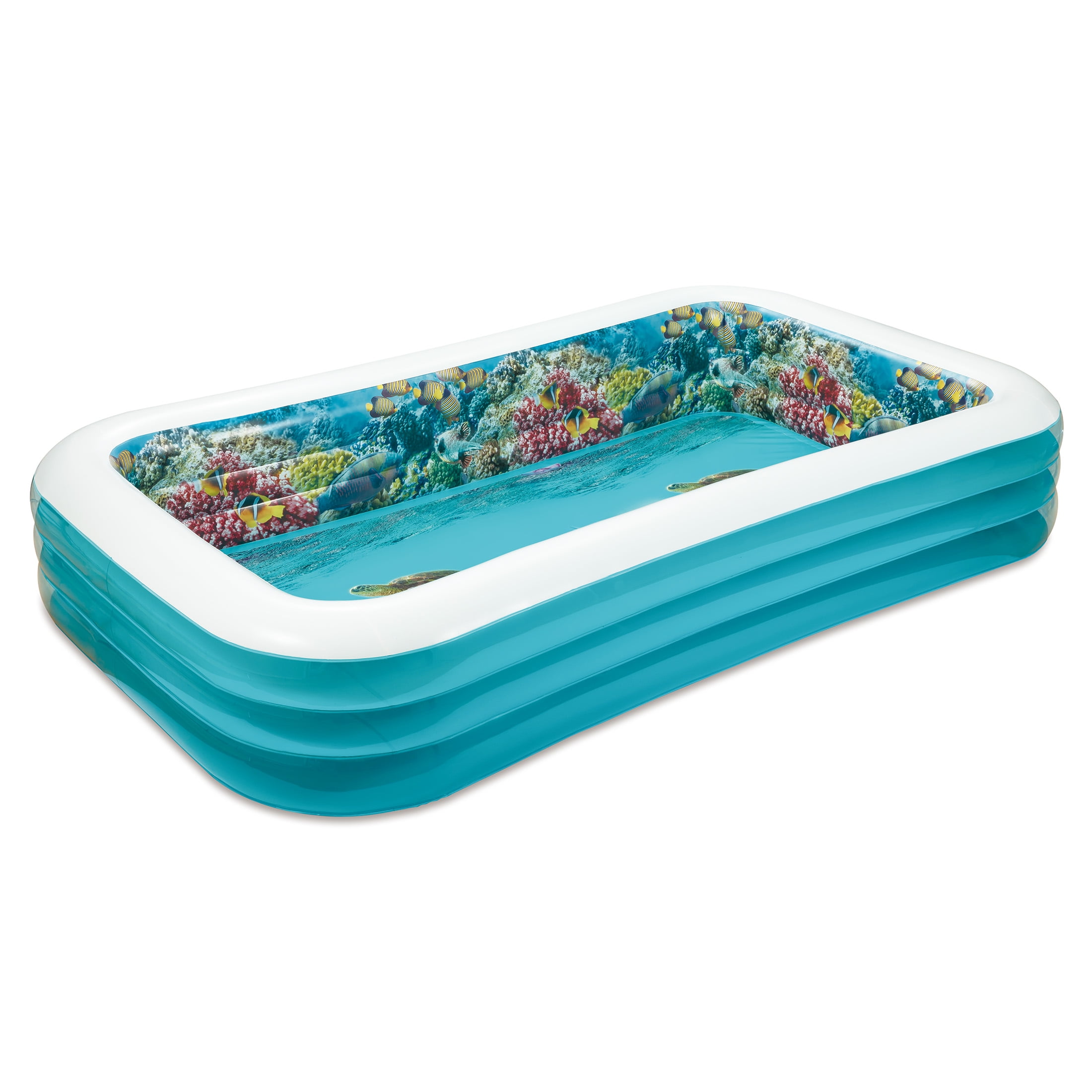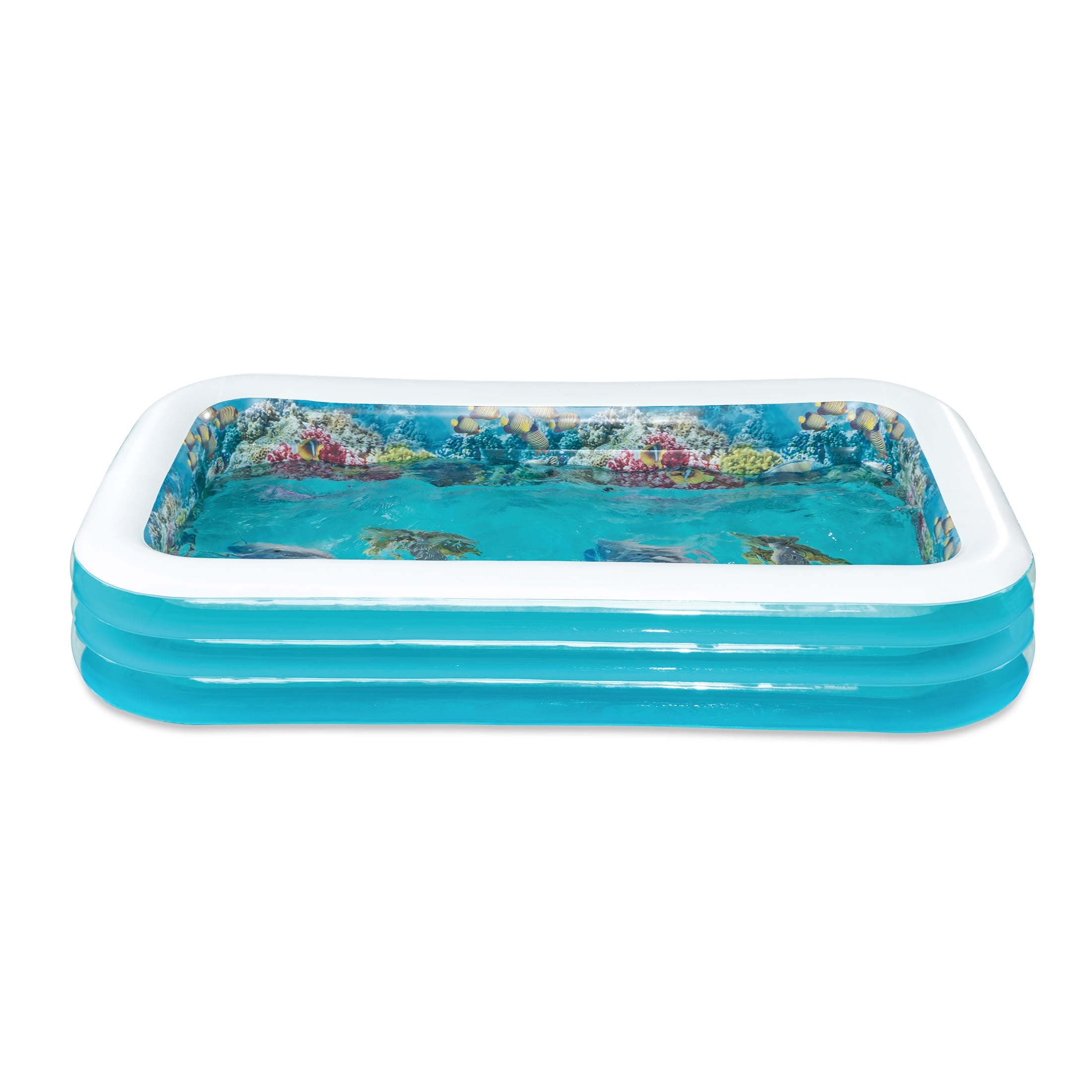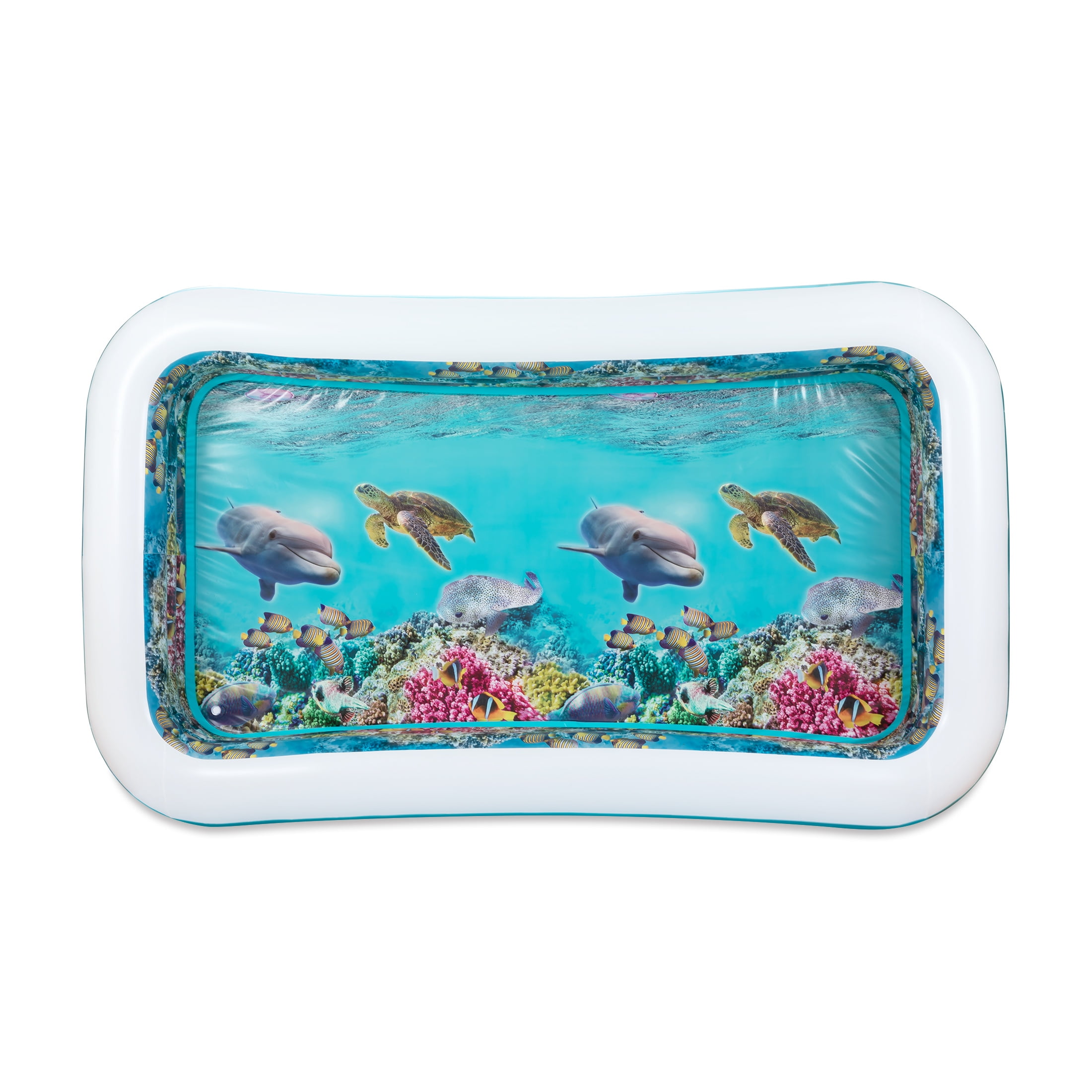 Summer Waves Rectangular Inflatable Dolphin 3D Family Pool, Blue, Ages 6 and Up, Unisex: Spacious inflatable pool for the entire family to enjoy Vivid, colorful 3D ocean-themed print for added fun Includes 1 pair of 3D goggles 2-in-1 valve for easy inflation/deflation Durably made from puncture-resistant materials Includes drain plug for easy drainage of water Repair patch included Approximate deflated size: 117″ x 69.5″ (2.97 m x 1.77 m) Approximate inflated size: 120″ x 72″ x 22″ (3.05 m x 1.83 m x 56 cm) Age: 6+