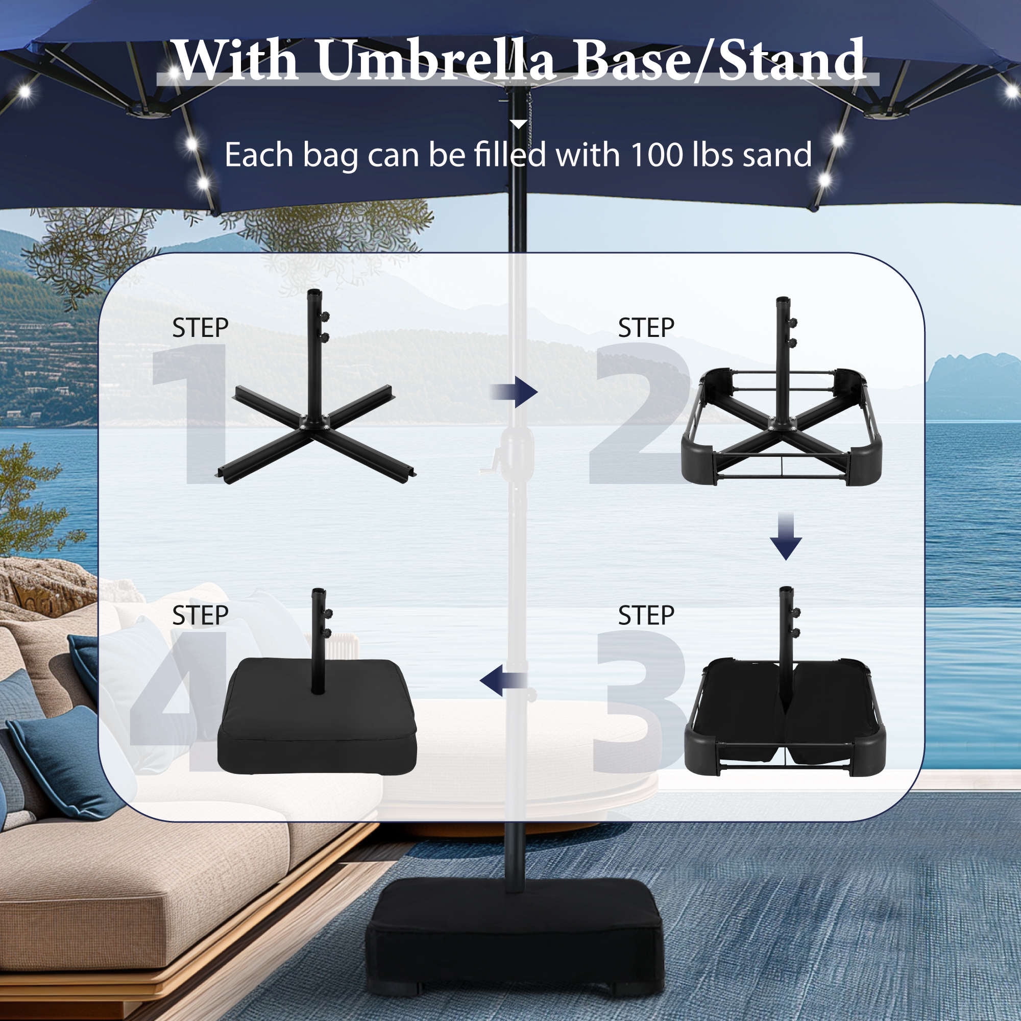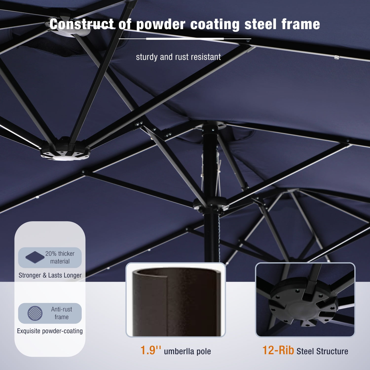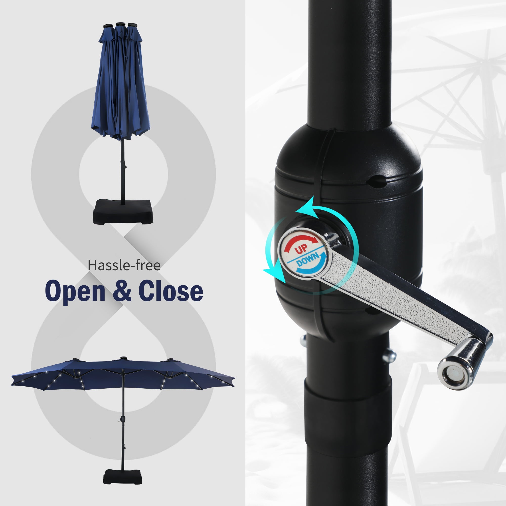 Summit Living 15ft Double-Sided Solar Patio Umbrella with Base Large Outdoor Umbrella with 36 PCs LED Lights, Navy Blue