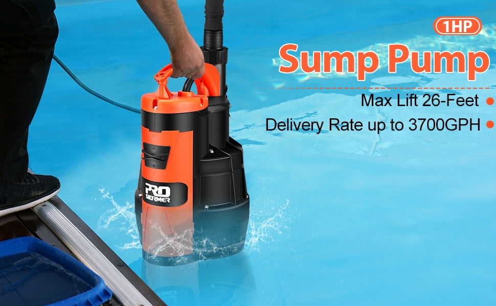 Sump Pump, PROSTORMER 3500 GPH 1HP Submersible Clean/Dirty Water Pump with Build-in Float Switch for Pool, Pond,Garden, Flooded Cellar, Aquarium and Irrigation