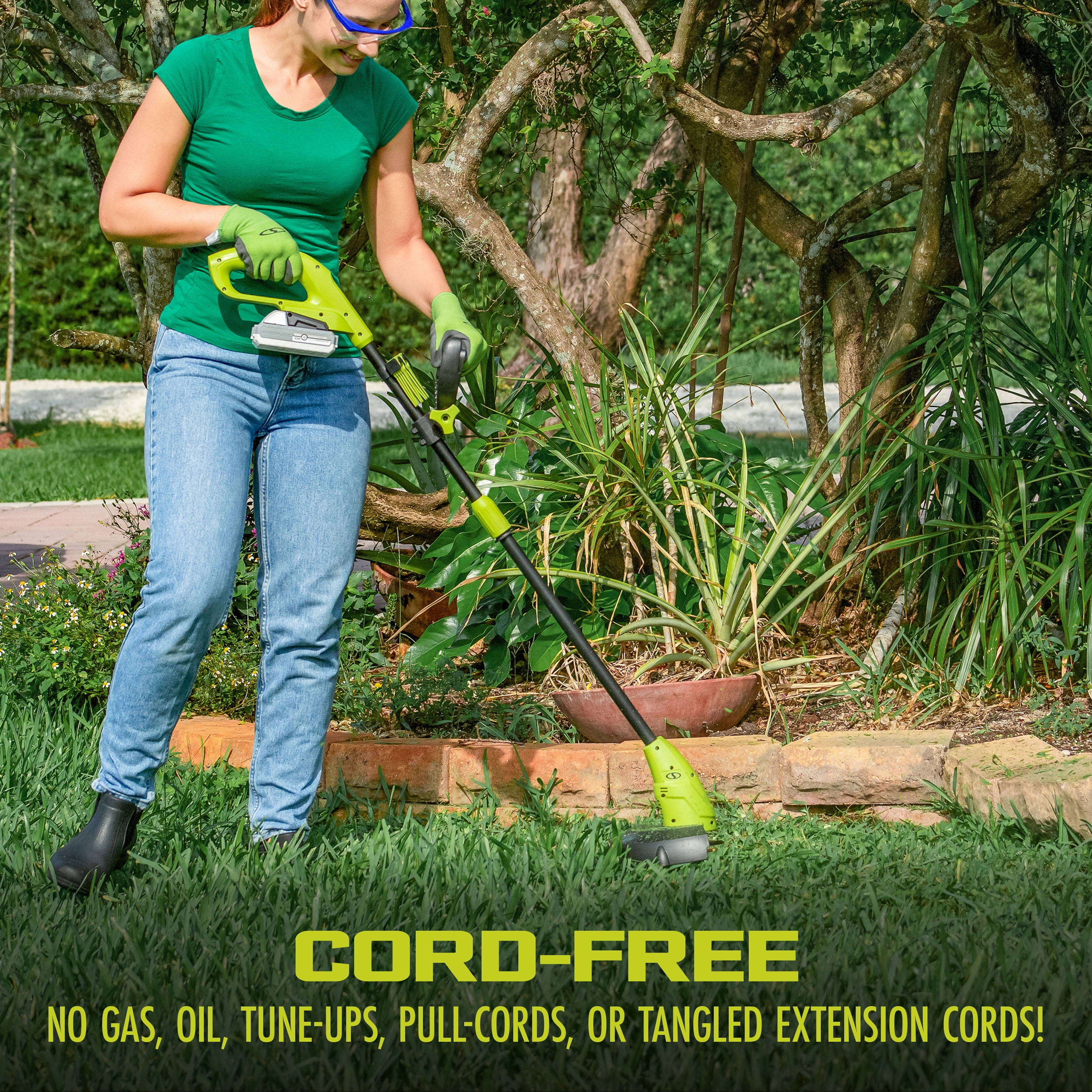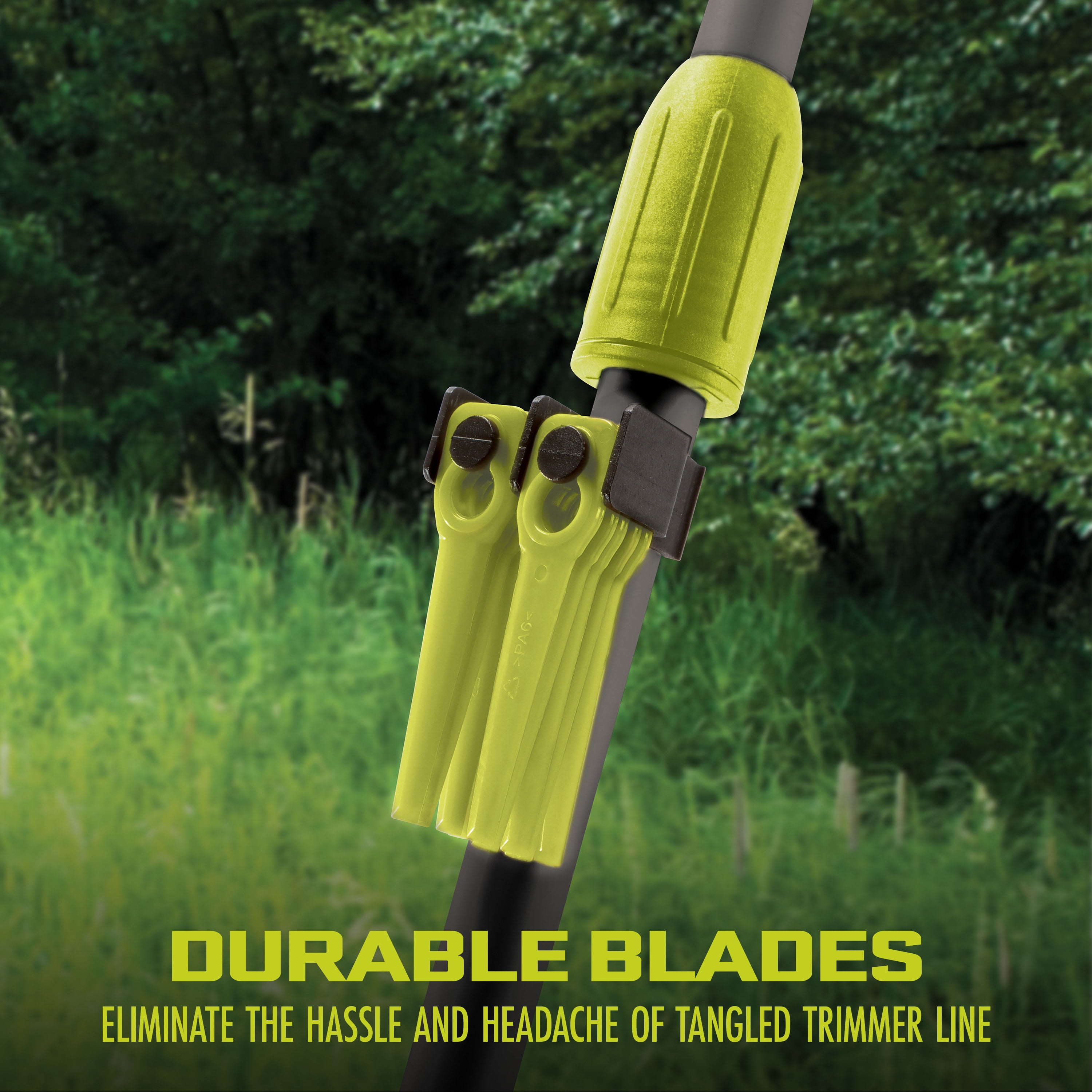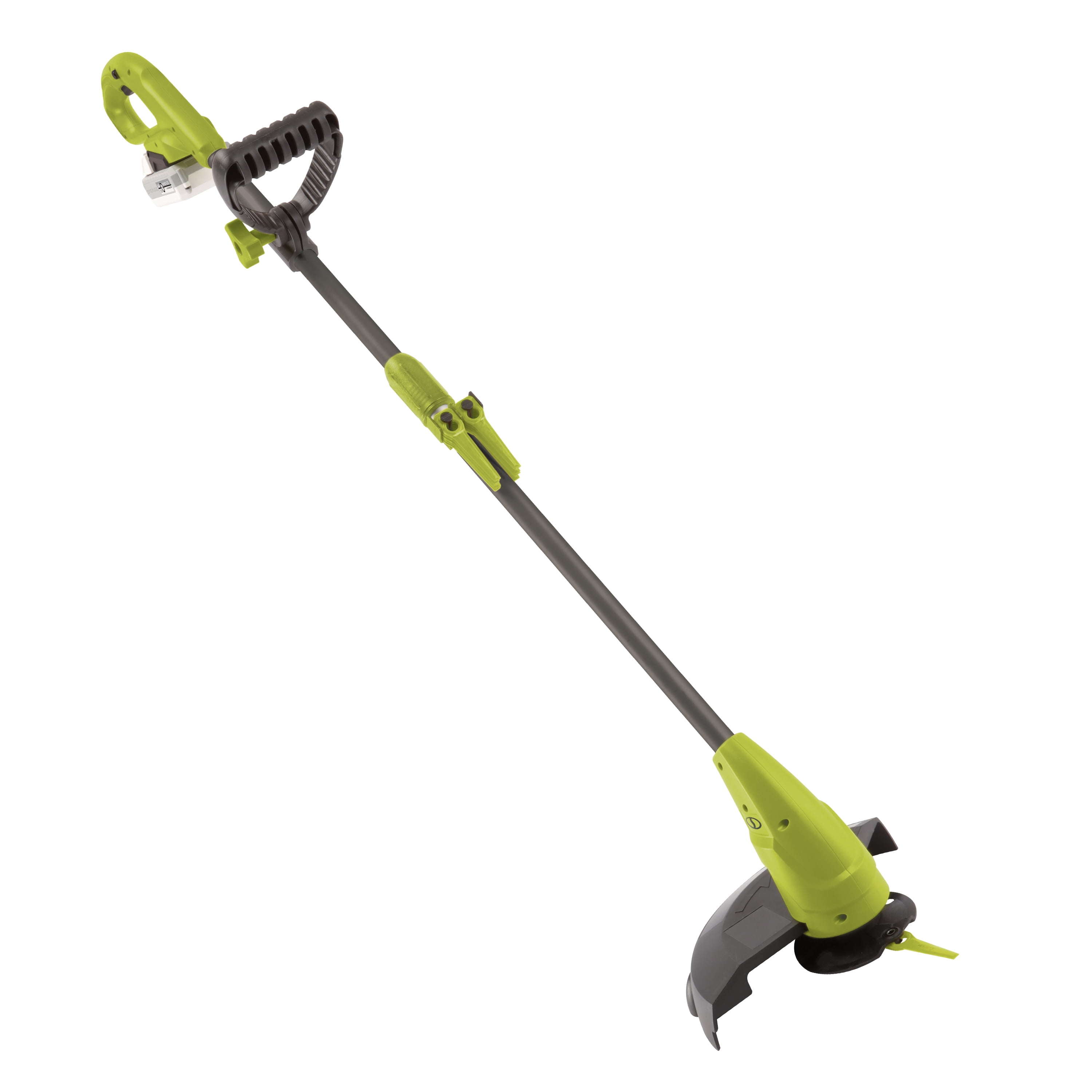 Questions? Text 54267 to chat directly with a Sun Joe product expert Revolutionary interchangeable blade system cuts a 10” wide path through grass and weeds 24VBAT-LTE iON+ rechargeable battery provides up to 1 HR 25 MIN of eco-friendly runtime Ideal for trimming grass and edging along flowerbeds and walkways Includes 11 disposable nylon grass blades (additional blades sold separately) No kinks or tangled trimmer line ever for hassle-free, reliable cutting Ultra-lightweight for maximum maneuverability Adjustable handle and telescopic pole for maximum comfort and control Full 2 year warranty
