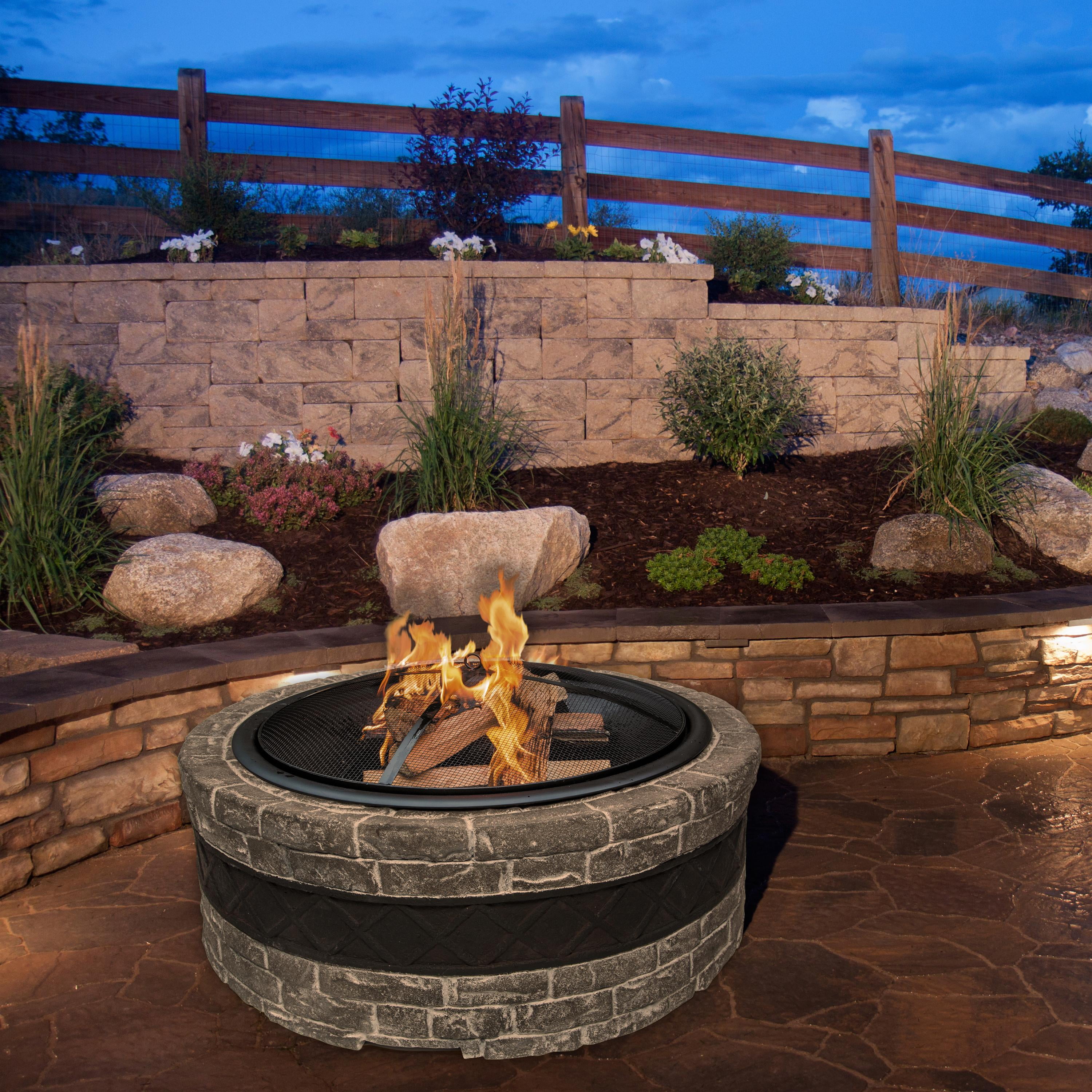 Sun Joe 35″ x 35″ Cast Stone Fire Pit with Dome Screen and Poker Durable Ideal outdoor centerpiece for warmth and enjoyment A durable cast stone base adds a sophisticated touch to any outdoor décor Large 29.5 in. (75 cm) fire bowl accommodates hardwood logs up to 21.5 in. (54.6 cm) long Wire mesh screen protects against sparks and provides an open view of the fire 24 in. (61 cm) screen hook included for safe removal of the screen while the fire is burning Mosquito-Safe Tip: Add sage, lemon balm, or citronella leaves to your fire pit to help repel mosquitos