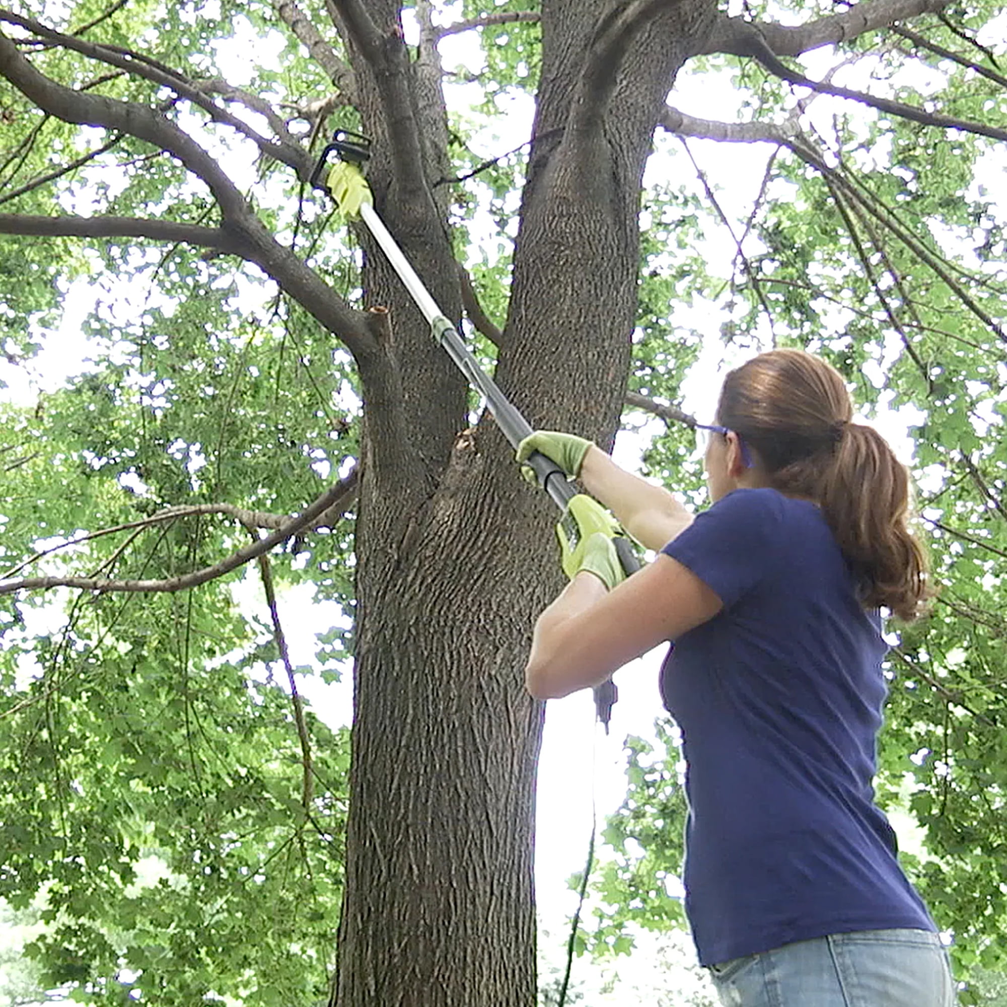 SAW WHAT YOU SEE – WITH THE CHAIN SAW THAT ALWAYS DOES DOUBLE DUTY! Tackle those tough-to-reach branches with ease! The Sun Joe® SWJ805E 2-in-1 convertible electric pole chain saw takes the danger and difficulty out of trimming your overgrown trees. Stand safely on solid ground and simply adjust the telescoping pole. Pole extends to 8.9 ft to gain up to 15 feet of overhead reach. Later, when the limbs are down and there’s wood to be cut, SWJ805E quickly converts from pole saw to hand-held chain saw in seconds, to make light work of loads of logs, low-lying brush and branches. Powered by a robust 6-amp motor, SWJ805E can handle the most stubborn tree limbs up to 7.5-inches thick. It features a durable, 8-inch Sun Joe® bar and chain with an auto-oiler to keep the bar and chain fully lubricated during use. And, unlike gas-powered tools, SWJ805E is powered electrically, so you’ll start up reliably every time with the simple push of a button, without having to deal with smoke, fumes, spark plugs or costly tune-ups. Plus, SWJ805E’s top-notch safety features include a sturdy, non-slip hand grip for added stability, a protective hand guard, a built-in safety switch to prevent accidental starts – and a sheath for safe storage when the day’s work is done. SWJ805E carries a complete two-year warranty. So, Let Gravity Do The Work®, and Go With Joe®: The SWJ805E 2-in-1 Convertible Electric Pole Chain Saw, from Sun Joe. Get Equipped®