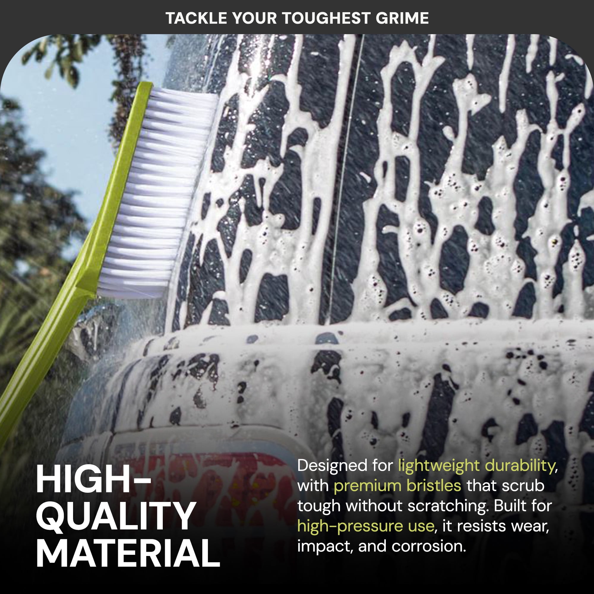 Complete pressure washer accessory kit featuring a Utility Bristle Brush, Rotary Wash Brush, Wheel + Rim Brush, Turbo Nozzle, and Microfiber Cloth for a showroom-quality clean Leverage the water pressure from your pressure washer to spin the 5.7″” Rotary Wash Brush and remove stubborn gunk Constructed with high-quality materials, this auto cleaning system features feathered bristles, an adjustable brush head, and a telescoping extension rod Included Turbo Nozzle and 20″” extension rod allow you to clean hard-to-reach areas under vehicles Joe brands designs, manufactures, and markets a wide range of innovative, affordable, and high-quality consumer tools for the home, yard, garden, and garage. With people-first and purpose-driven solutions in mind, we are dedicated to providing the right tool at the right price, making it easy to Go With Joe to get the job done Color: Green Dimensions (L x W x H): 23.30 x 7.00 x 5.00 inches Weight: 5.20 pounds Manufacturer warranty: 2-Year Warranty