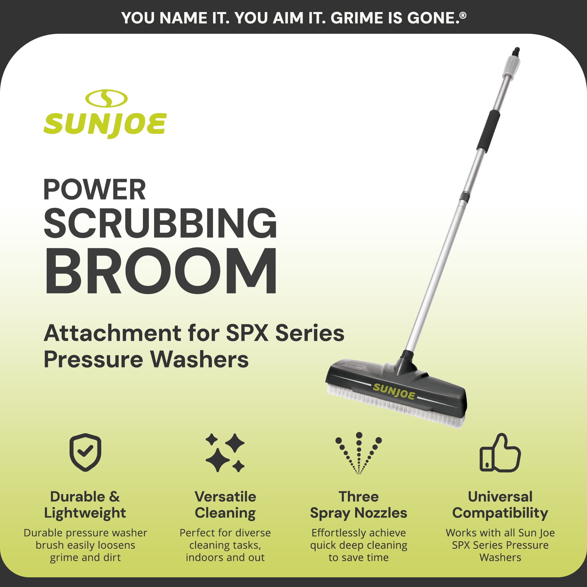 Experience a more powerful clean with the Sun Joe Power Scrubbing Broom, designed exclusively for SPX Series pressure washers. Whether you’re blasting away mud from your driveway, rinsing road grime from your RV, or scrubbing dirt off patio surfaces, this broom makes cleaning faster, easier, and more effective. Just connect it to your SPX Series pressure washer, and let the concentrated water flow take over tough messes with ease. This high-pressure cleaning tool doubles your cleaning power compared to dry sweeping alone. The rotating brush head delivers a deep-down clean, loosening stuck-on debris and scrubbing surfaces gently yet thoroughly. Ideal for a wide variety of outdoor surfaces, it effortlessly handles concrete, decks, siding, and even vehicle exteriors without the need for intense manual scrubbing. Crafted for durability and convenience, this broom features a robust utility brush and a reliable water transfer adapter for consistent performance. It’s built to withstand repeated outdoor use and remains effective in clearing dirt, debris, and grime. The long handle design helps you clean hard-to-reach areas without bending or straining, making it a reliable addition to your outdoor cleaning tools. With its compatibility across all SPX Series pressure washers and easy attachment setup, the Sun Joe Power Scrubbing Broom is a go-to choice for deep cleaning projects. Whether you’re tackling weekly washdowns or post-storm messes, this tool brings water-powered performance to every sweep. Take control of your outdoor cleaning tasks and scrub smarter with Sun Joe.