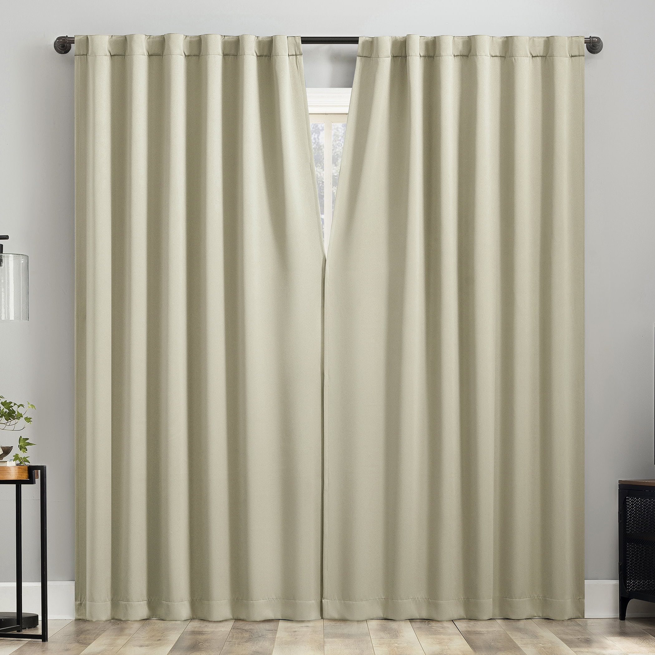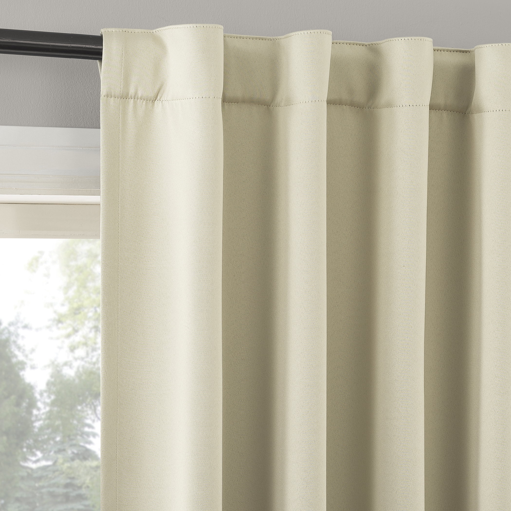 Extreme Blackout technology with magnetic closure blocks out 100 percent of outside light Energy Efficient design reduces energy lost through your windows by up to 50 percent Thermal properties help keep summer heat and winter chill out of your home Noise reduction by up to 45 percent helps you get a sounder, more uninterrupted sleep Hidden back tabs fit curtain rods up to 1.5″ in diameter Pair includes two (2) panels