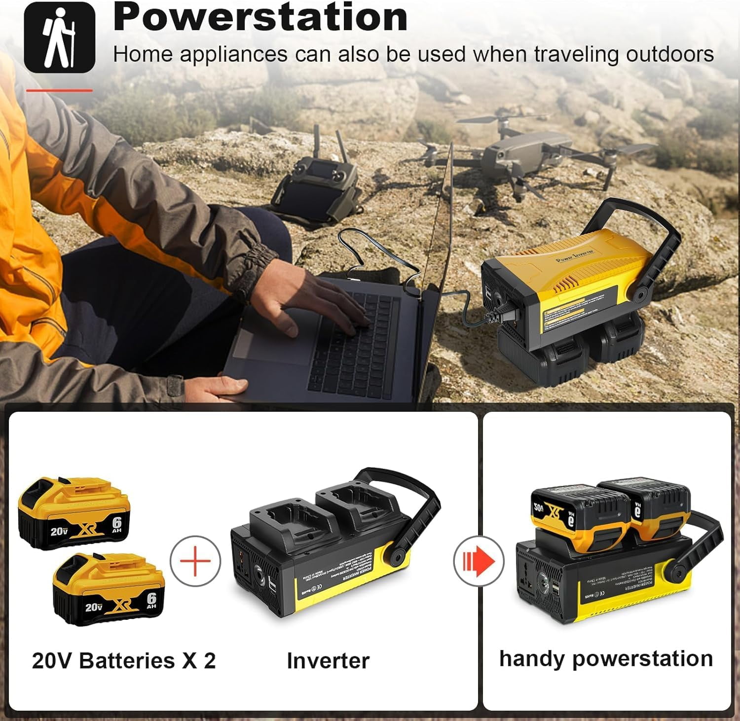 SUNBAT Power Inverter Compatible with DeWalt Battery,Include 2Pack 20V 6.0Ah Replace DeWalt Battery