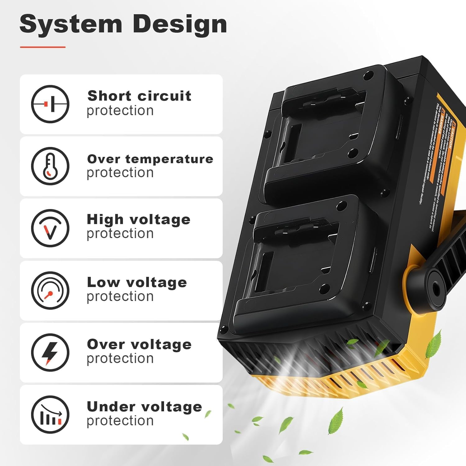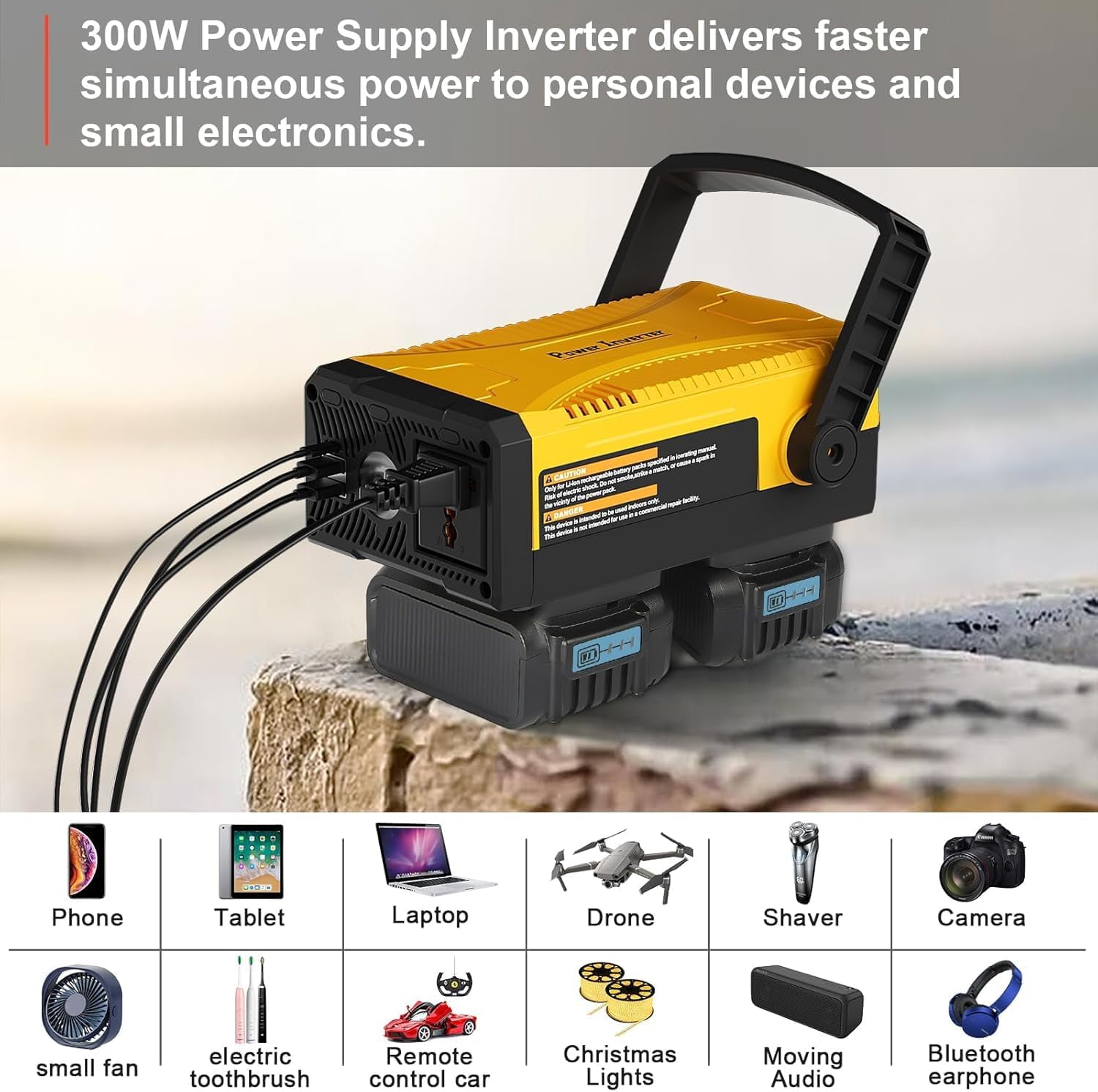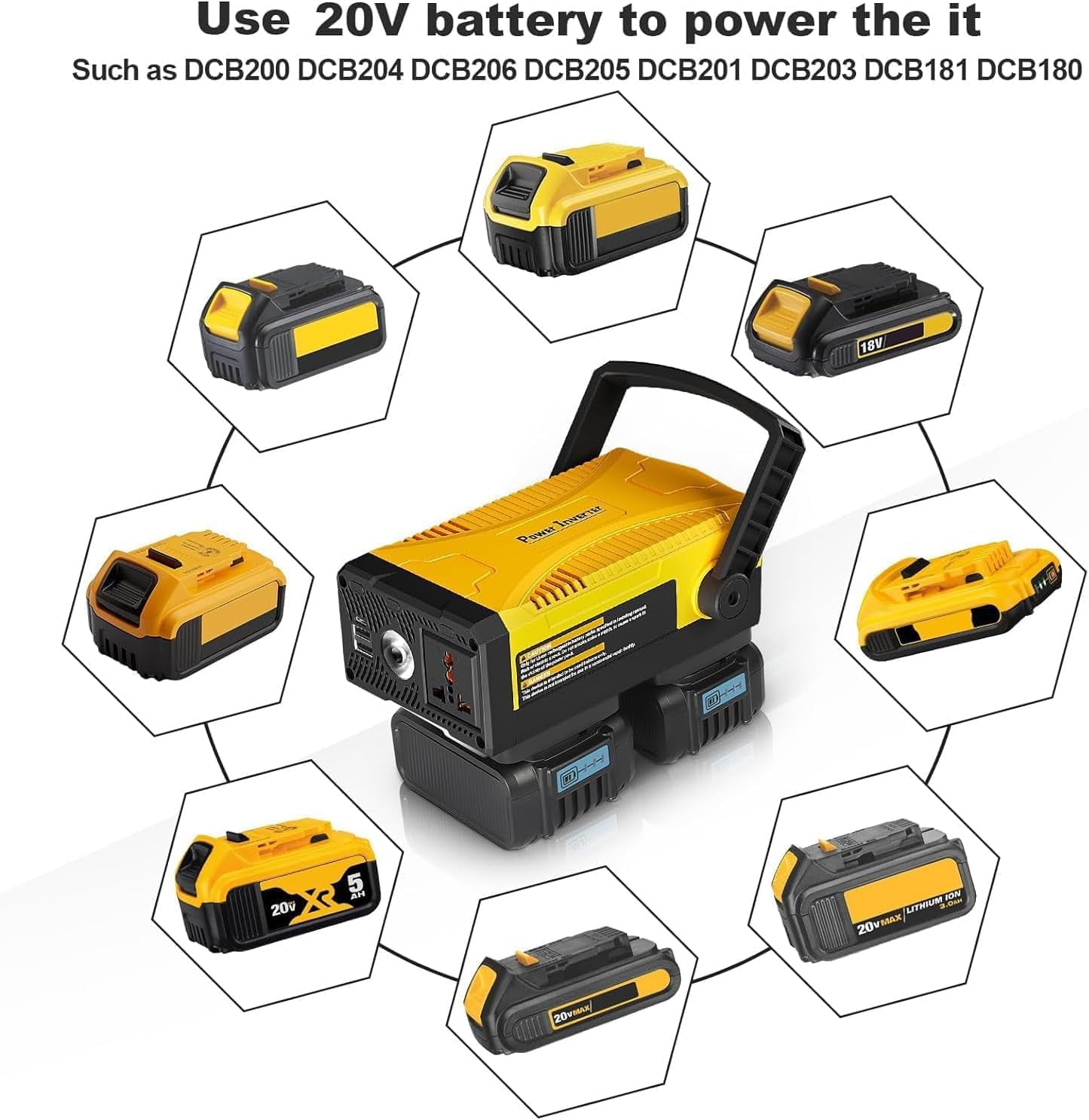 【Portable Power Station】:Compatible with dewalt dewalt tools battery,turn them into dewalt power station by our inverter.Dewalt battery 20v inverter offers output 110V/150W AC power, 5V-3A dual-USB and Type-C port, and 3 modes of intelligent light. Make your baterias dewalt more valuable. 【High Output】: With stable 110V-150W AC power output port in dewalt car inverter, which can supply your fans, work lights and other electrical tools below 150Watts.Power supply inverter can be the perfect partner at your work. 【Multiple Power Ports】:150w dewalt charger station are equipped with 5V/3A dual USB and a Type-C port to quickly charge your phone, tablet and bluetooth speaker simultaneously.Bateria dewalt 20v inverter is an ideal choice for you at work. 【Intelligent Lighting】:With 3 intelligent modes of LED light, low light, strong light and SOS.20 volt dewalt battery replacement can not only help you to illuminate at work, but also send out a distress signal in emergency.Dewalt batteries 20v max lithium ion converter can make your work more convenient and secure.