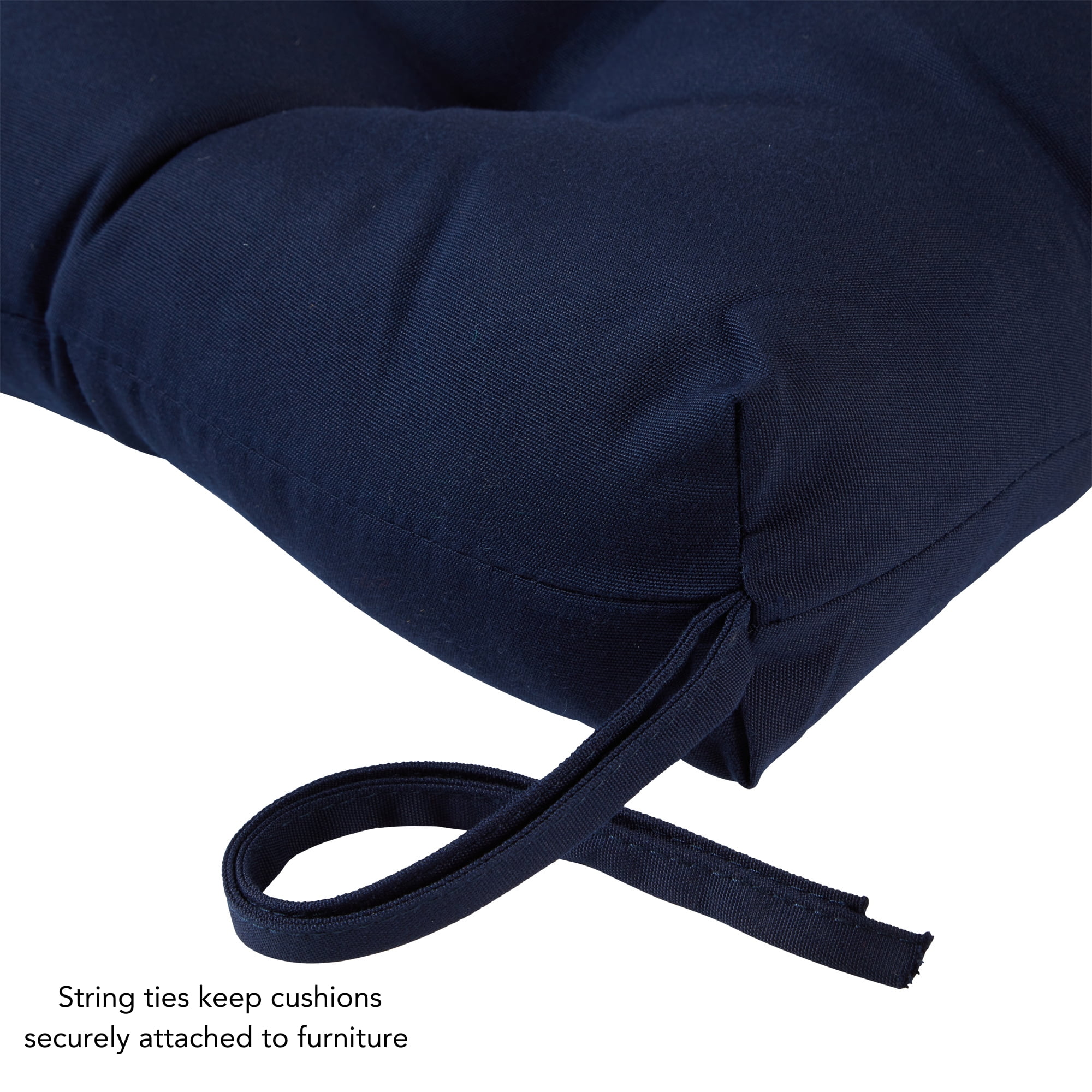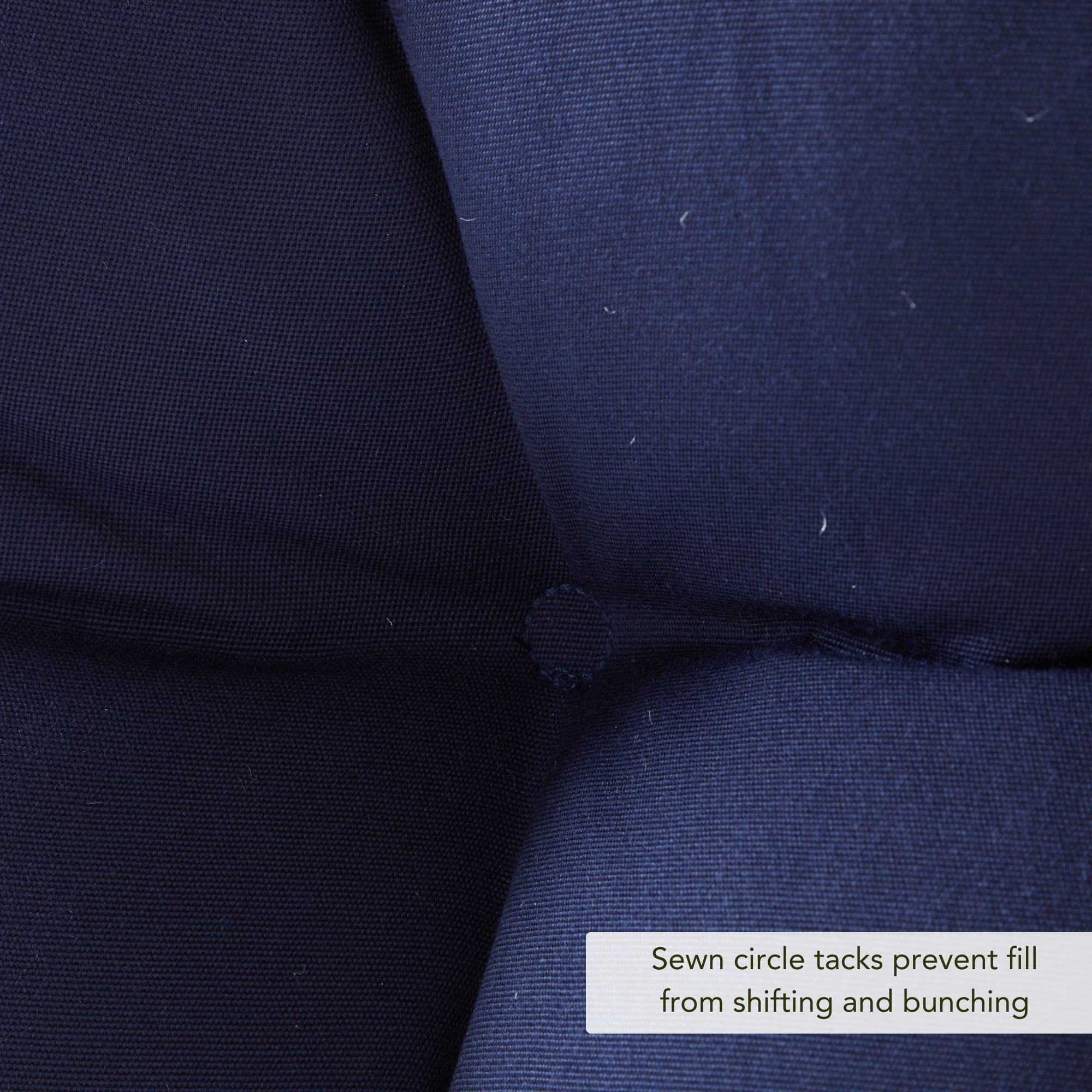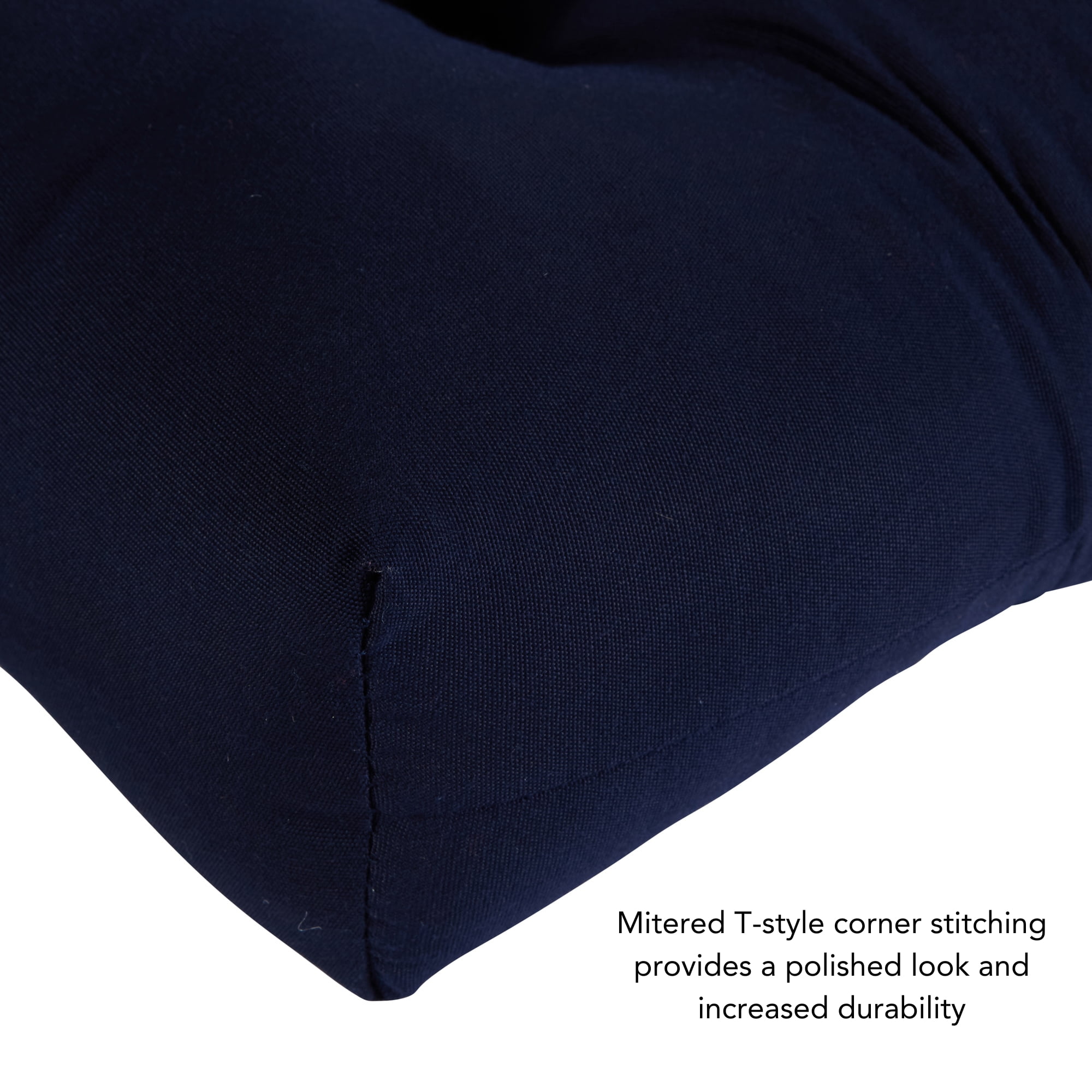 Includes one 44 x 17 in. reversible outdoor bench cushion Deep solid shade of blue Made from 100% acrylic, high-performance outdoor Sunbrella fabric Water, stain, fade and mildew resistant Soft polyfiber fill made from 100% recycled, post-consumer plastic bottles Plush, overstuffed construction for extra comfort and longevity For best results, and to prolong the life of your cushions store covered when not in use Cushion dimensions are +/- 2 inches. Please note product will arrive in a slightly compressed state; please allow a few days for product to expand to final size listed in description