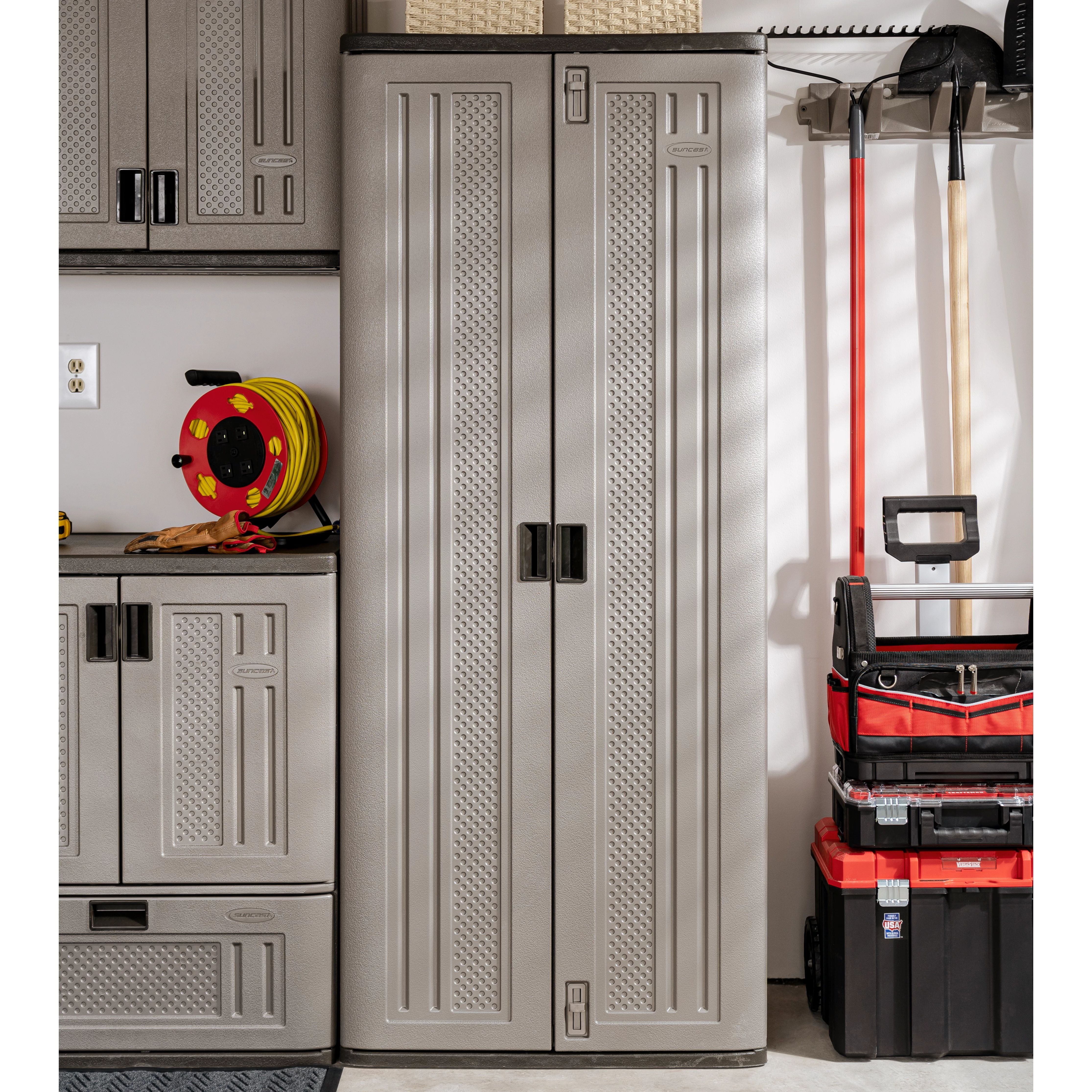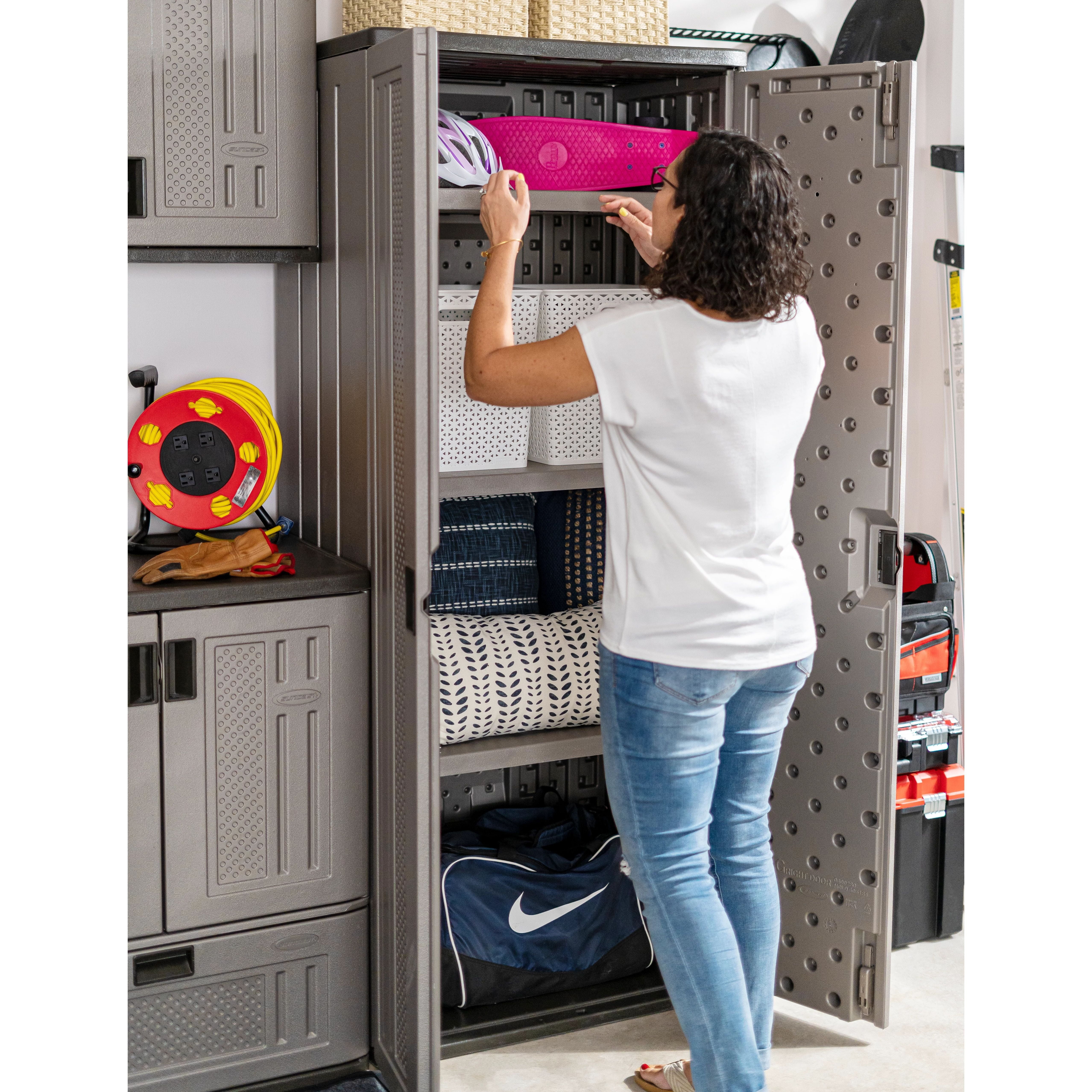 Suncast 3-Shelf Resin Base Garage Cabinet Locker, Gray