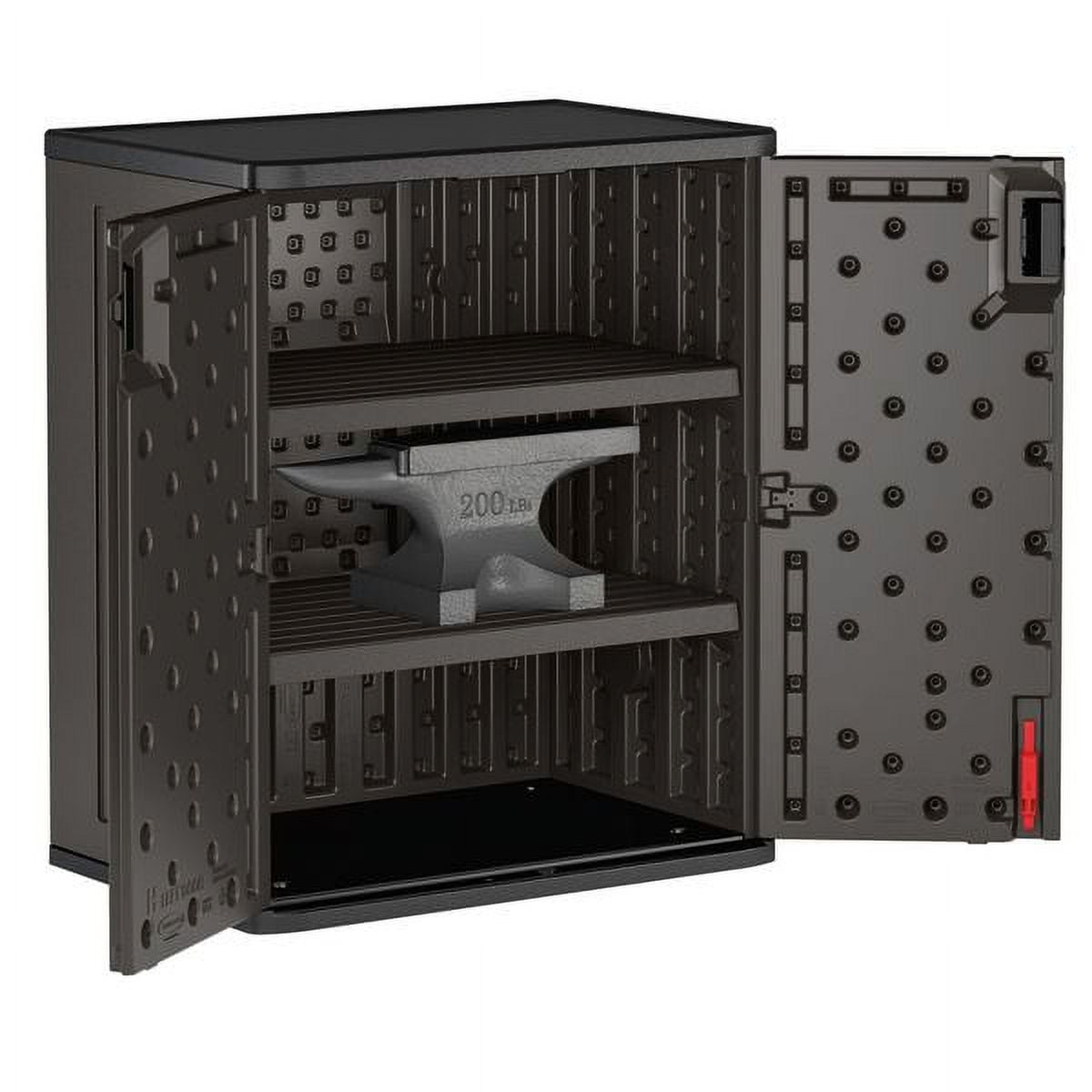 The Suncast 36″ Storage Cabinet Locker is an ideal addition to any room for an organized and neat look. The multi-wall panels are engineered for added strength and stability and is resistant to scratches, dents and rust. Equipped with 2 adjustable metal-reinforced shelves, each capable of holding 200 pounds, this storage locker is an excellent storage solution for lawn gear, hand tools, gardening accessories, and much more. It’s padlock compatible and provides an upper and lower latch to help keep the doors closed and secure (lock not included), making it a wonderful choice for your home. It’s easy to maintain and clean with an easy assembly that requires minimal tools as well.