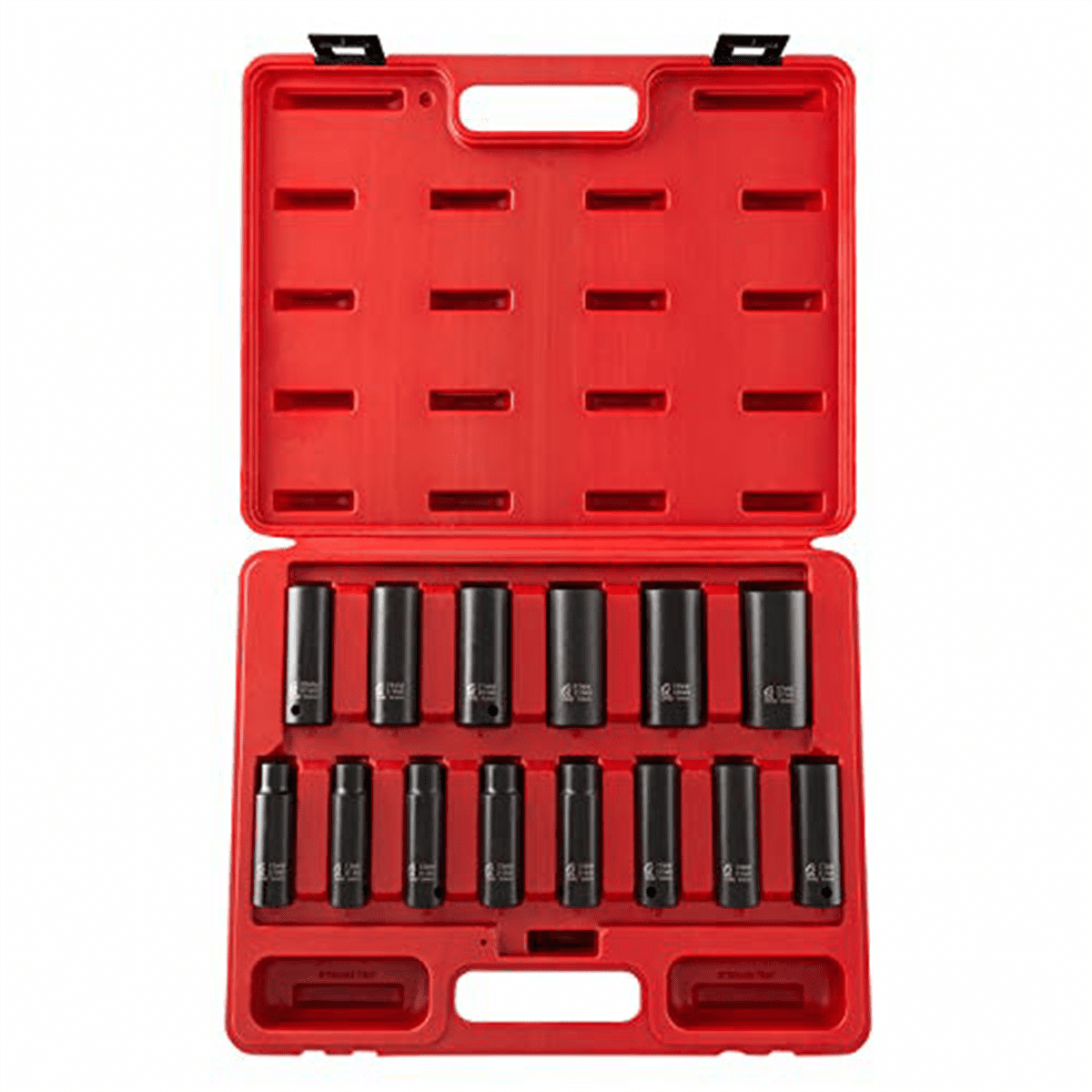 Add some versatility to your tool box with the Sunex Metric Deep Impact Socket Tool. This deep impact socket is designed for reliability through countless projects and features metric sizing. This 14-piece socket set includes 10mm, 11mm, 12mm, 13mm, 14mm, 15mm, 16mm, 17mm, 18mm, 19mm, 21mm, 22mm, 26mm, and 27mm socket sizes and a travel/storage case. These are the socket sizes most often used for automotive repairs. Each socket features a 0.5-inch drive. These industry-leading impact sockets are constructed from premium chromium molybdenum alloy steel for superior strength and durability. The radius corner design provides the socket to grab the sturdy wall of the fastener instead of grabbing the corners resulting in less wear and tear on the fastener. The durable finish provides both rust and corrosion prevention. Its versatile build meets a variety of different project needs and ensures years of usage. Tackle the toughest jobs without any worry with the Sunex Metric Deep Impact Socket Tool.