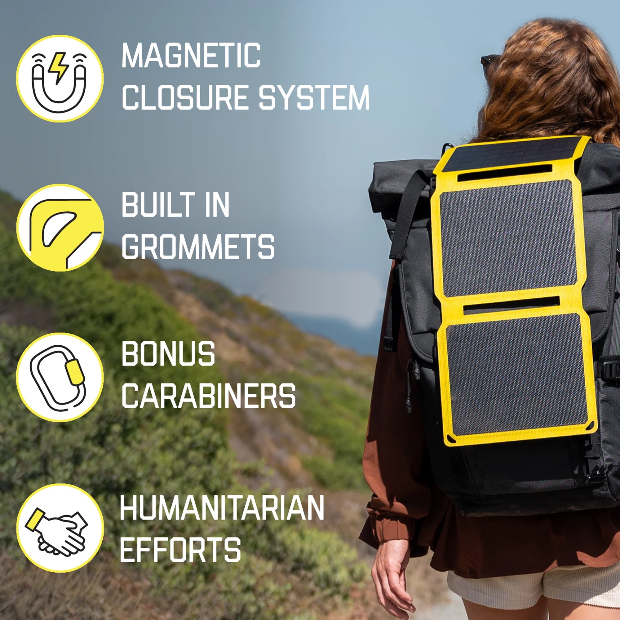 Powerful and durable – shock, vibration and weatherproof Designed in the USA. Backed by a local American company. RUGGED & DURABLE: Weatherproof ETFE exterior layer improves performance and durability, extends the panel’s lifespan and requires far less maintenance when compared to a PET exterior layer that is used by most portable solar chargers. The USB ports are waterproof rated IP67 – the PCB is coated with a waterproof seal and the junction box is silicone bonded to the panel. Waterproof, shock-proof, dust-proof and drop-proof. Designed for all weather conditions and environments. COMPACT & PORTABLE: Panels fold down to the size of a tablet and easily fit into any backpack. Integrated magnetic closure system keeps the panels closed during storage, eliminating the need for bulky straps. Mesh pocket provides ample storage space for most electronics and accessories, while the elastic straps secure phones, power banks and more during storage and transport. The mesh design intuitively allows proper airflow to prevent devices from overheating while being charged. POWERFUL & FAST CHARGING SPEEDS: Dual USB ports allow you to simultaneously charge USB-A and USB-C devices. Each port is rated at 5V and pumps out up to 3 amps of power per USB port (15W total maximum output) to provide wall-outlet charging speeds. Monocrystalline panels with ETFE construction provide maximum efficiency and a UV-ray permeability of 95% compared to 80% from PET – makes the panel more efficient than most solar chargers. SMART TECHNOLOGY: Built-in smart IC chip provides the quickest, yet safest, charging speed. Short circuit, over-load, over-heat, over-charge, over-voltage, over-current and current limiting protection. Automatic restore if shade occurs. MULTI-USE: Ideal for camping, backpacking, hiking, outdoor adventures and is essential in any disaster, emergency, and hurricane prep kit for survival. Never be caught without power. Great for any USB device including your iPhone, Samsung, Pixel, iPad, phones, power banks, tablets and more. Download Quick Start Guide Full 100% Satisfaction Guarantee: If for any reason you are not satisfied, please email us – We will keep you powered! For International Shipments, Please Note: Customer is responsible for all duties and taxes on international shipments. International shipments are restricted to certain countries – please refer to the International Shipping section of our Shipping Info page for more details.