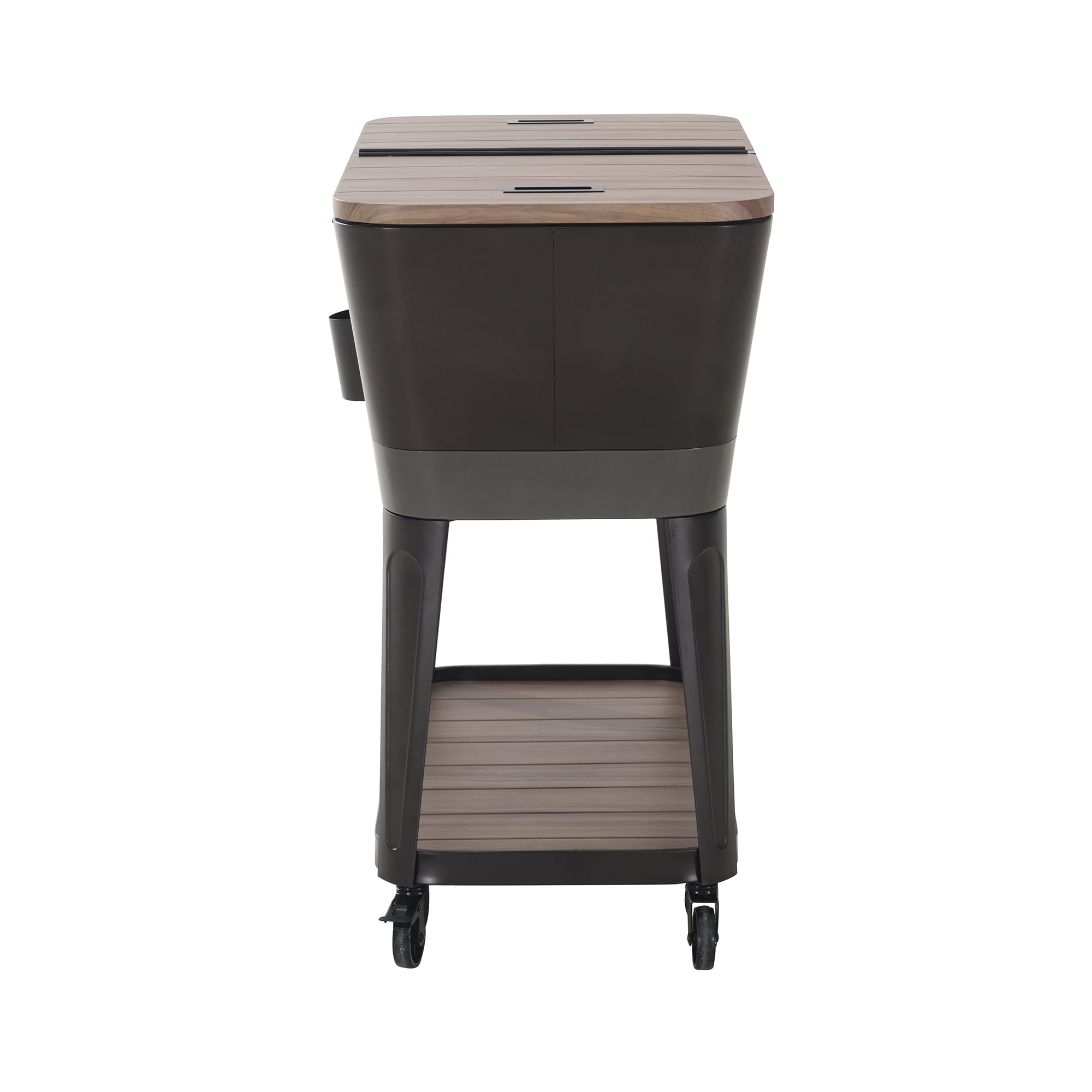 Sunjoy 80-Quart Wood Grain Finish Metal Rolling Ice Chest Cooler Cart with Storage Shelf, Steel Bottle Opener, and Lockable Wheels, Bronze