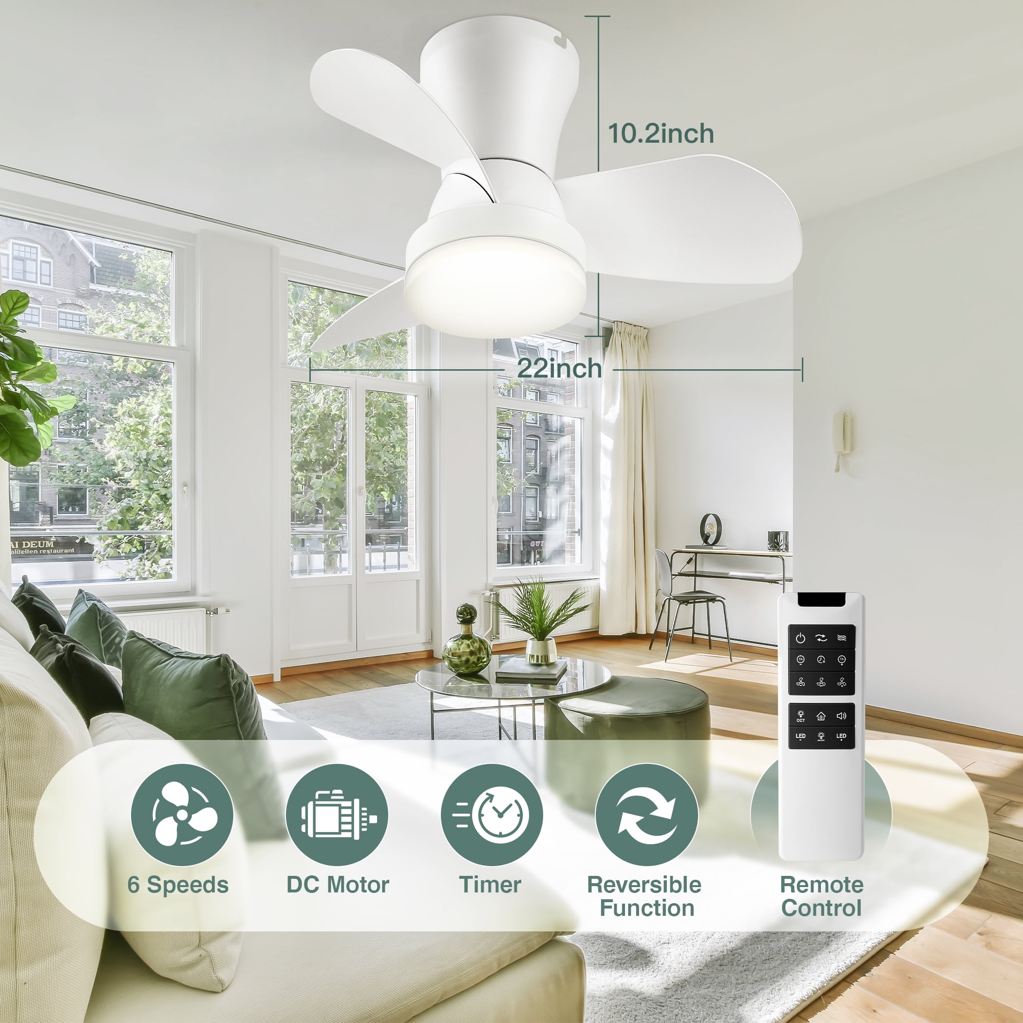 Ceiling Fans with Lights and Remote, 22 inch Ceiling Fans with Lights and Remote, Low Profile Ceiling Fan for Bedroom/Kitchen/Dining Room/Patio, 6 Wind Speeds, Dimmable, White