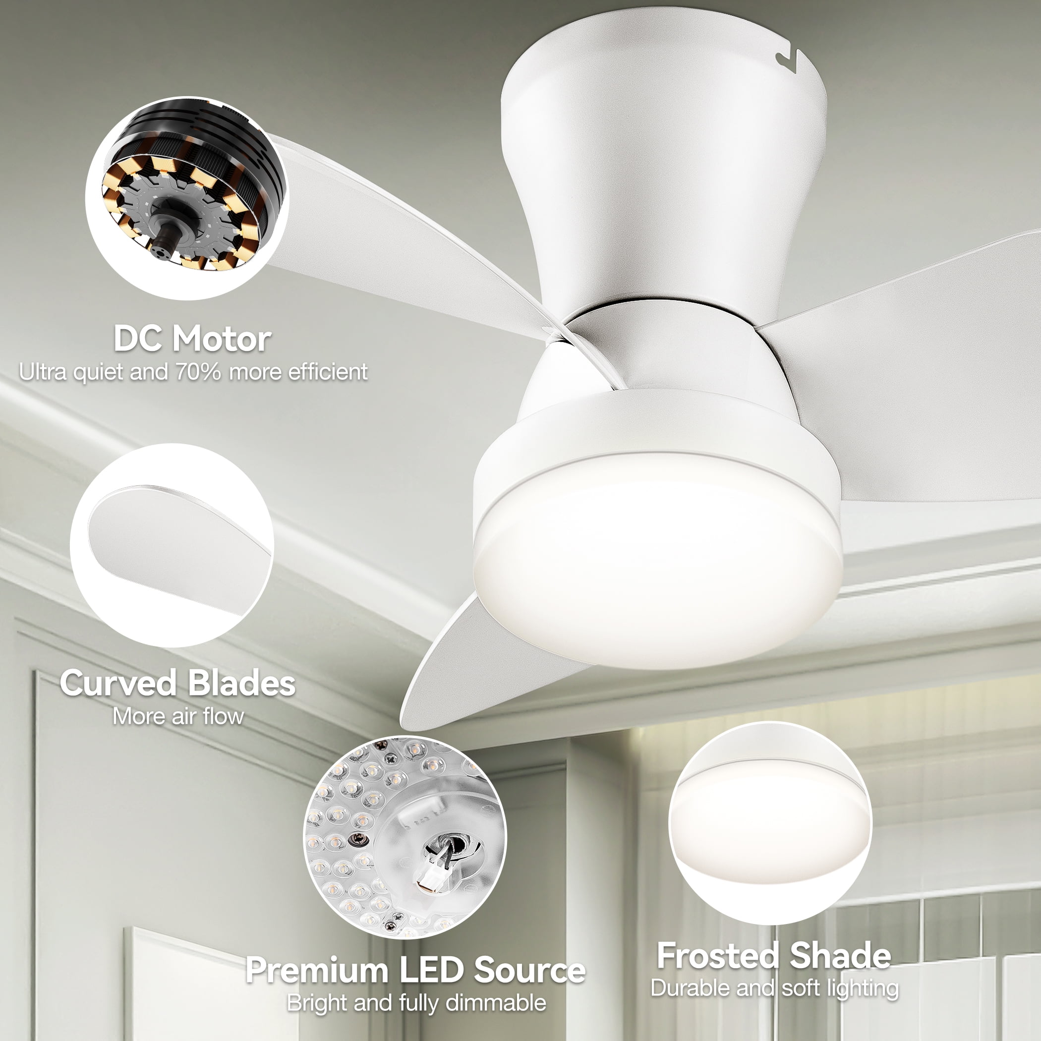 SUNMORY 22″ Ceiling Fan, Low Profile for Bedroom & Kitchen, 6 Wind Speeds, White Stylish Low Profile CoolingEnhance your living space with our low profile ceiling fans, crafted for rooms with lower ceilings. Efficient cooling, space-saving design. Optimal airflow for a cozy environment in compact spaces Effortless Comfort, Elegant ControlUpgrade your space with our ceiling fan lights and remote. Adjust your comfort with 6 speeds using the included remote, effortlessly blending modern style and personalized airflow. Enjoy comfort at your fingertips, making every moment inviting Efficient and Serene AtmosphereImmerse yourself in unrivaled efficiency and tranquility with our ceiling fan with light. Its super quiet, cost-effective DC motor provides a stronger breeze over a larger area. Experience smooth, ultra-quiet blade operation, surpassing traditional AC styles by 70%. Operating at a noise level below 35 db, it ensures a peaceful environment during use Customize Your BrillianceTransform your space with our ceiling fan light fixture. The optional light is fully dimmable, offering more brightness than typical LED fans (1800 delivered lumens). What sets it apart is the flexibility of three color temperature settings, ranging from 3000K (very warm) to 6000K (very bright). Illuminate your space with personalized brilliance Installation NotesInstall your flush mount ceiling fan with the included detailed instruction manual. For added convenience, simply scan the QR code on the manual to access the installation instruction video. NOTICE: If you are unfamiliar or uncomfortable with wiring, contact a qualified electrician