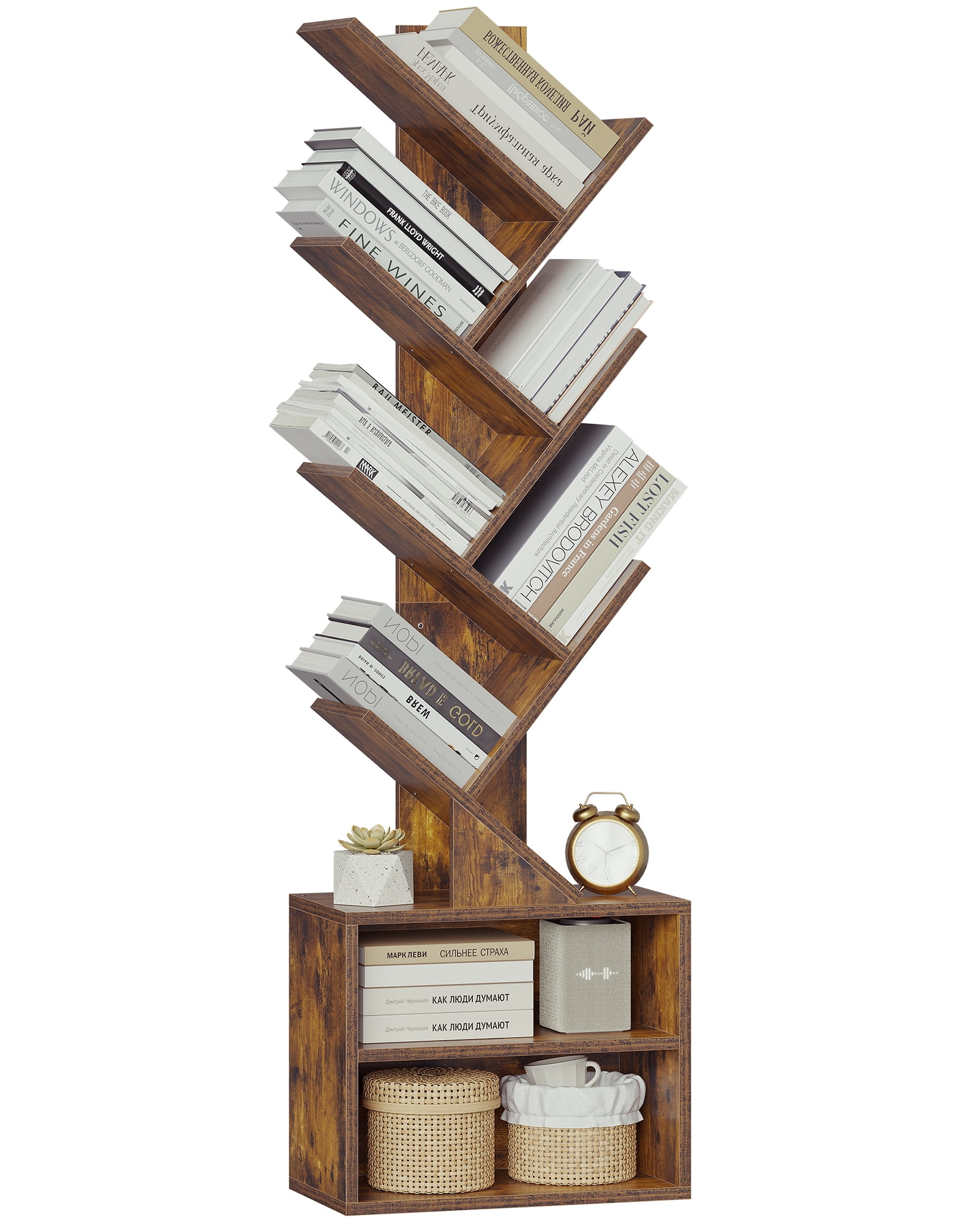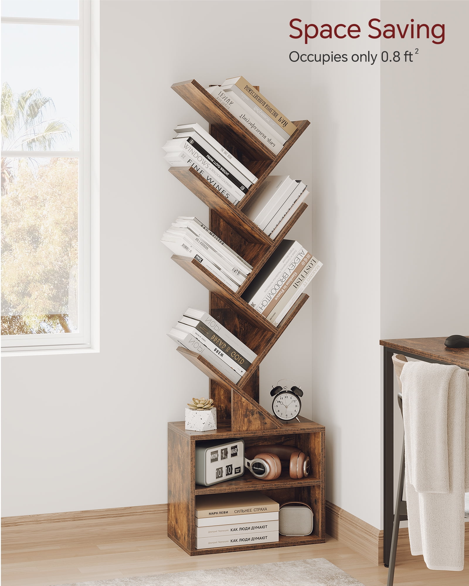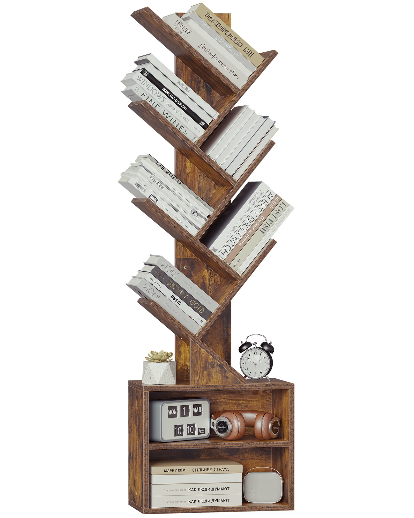 【Small Bookshelf for Small Spaces】- Featuring a compact design, the floor standing tree bookshelf optimizes floor space, making it an excellent choice for bedrooms, home offices, corners, hallways, or smaller living rooms. This narrow small bookcase organizer provides ample storage for books, CDs, game cassettes, decorations, and more. Keep your belongings stylishly organized, ensuring a neat and clutter-free space. ( Book shelf dimensions: 47.4″H*14.6″L*”7.9″W )【High-Capacity Tall Bookcase】- This Wood Bookshelf offers 6 tier shelves and 2 open storage cabinets, providing ample space for storing 5-10 books on each shelf. Additionally, the 2 storage drawers can be conveniently merged into a single unit to accommodate larger items. Crafted from thickened MDF material, this bookshelves tower ensures enhanced load-bearing capacity, offering durability and stability for your storage needs 【High-Capacity Tall Bookcase】- This Wood Bookshelf offers 6 tier shelves and 2 open storage cabinets, providing ample space for storing 5-10 books on each shelf. Additionally, the 2 storage drawers can be conveniently merged into a single unit to accommodate larger items. Crafted from thickened MDF material, this bookshelves tower ensures enhanced load-bearing capacity, offering durability and stability for your storage needs 【Durable and Stable】- Crafted from high-quality MDF material, the tall bookshelves boasts a unique tree structure that enhances its stability and durability. With a sturdy base and reliable backboard, the ladder bookcase offers robust stability, ensuring that you can showcase your items with confidence. For added peace of mind, utilize the included anti-tip accessories to secure the corner book shelves to the wall, making it ideal for households with small children or pets 【Eye-Catching and Unique Design】- The rustic brown tree bookshelf seamlessly combines modern design with timeless colors, making it a versatile choice for various decors. The branch-inspired design adds a playful touch to your home, while the vintage faux wood pattern exudes elegance. Whether placed in the living room, bedroom, home library or home office, this small bookcase brings a touch of sophistication and uniqueness to any space 【Easy Assembly】- Assembling your tree bookshelf is a breeze with the included hardware and detailed instruction manual. For added convenience, simply scan the QR code on the manual to access the assembly instruction video. Each parts of tree bookcase is numbered for quick and easy assembly Professional After-sales Service: For assembly instruction videos and any other assistance, please reach out to our dedicated customer service team. They are available at any time to serve you. Rest assured, we offer a 2-year warranty and lifetime technical support for customers who purchase the SUNMORY tree bookshelves organizer. Pre-drilled holes not aligned correctly : All pre-drilled holes are aligned correctly. If you find that the holes are not aligned, please check if the back panel is assembled in the wrong direction (the side with the exposed screws should face backwards). Feel free to contact us for any assistance.
