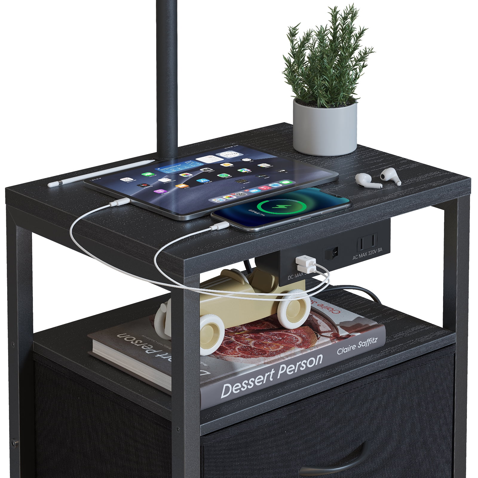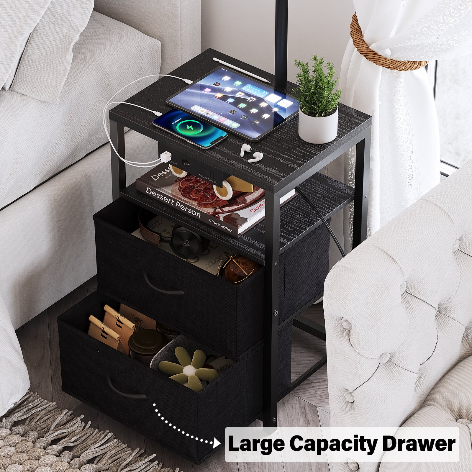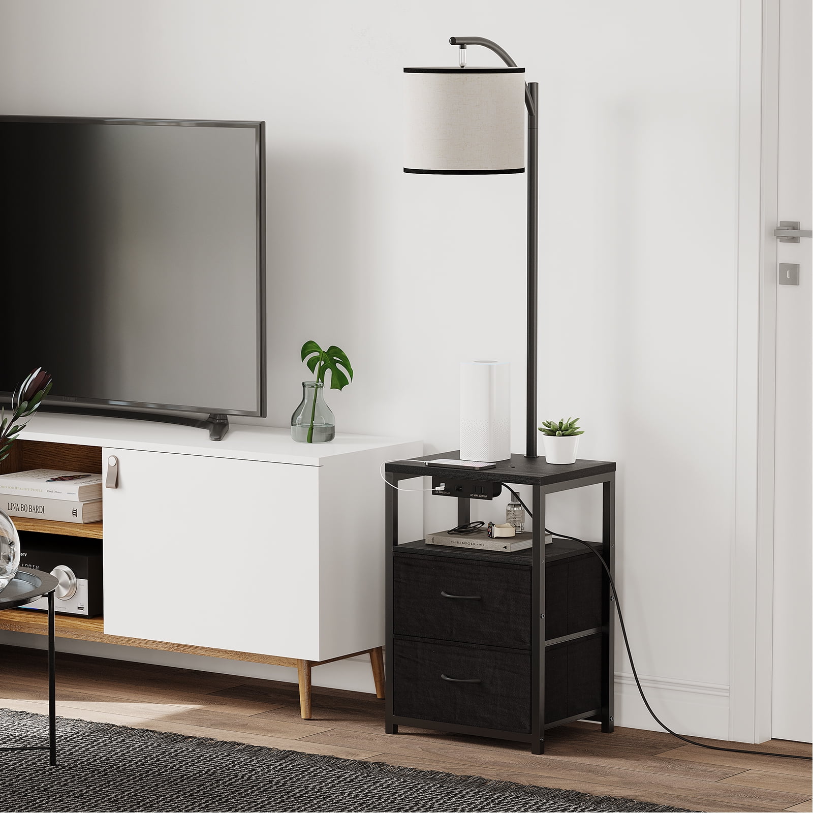 SUNMORY Floor Lamp with Table & 2 Drawers, Lamp with USB Port and Outlet, 3 Color Led Bulb Included Sturdy and spacesaving design, perfect for various settings Features an advanced charging station with 2 USB ports, USBC, and a power outlet for convenient charging of devices Includes onelayer shelves and 2 fabric drawers for ample storage of nighttime essentials Constructed with thick metal support rods that are scratchresistant, hightemperature resistant, and waterproof Multipurpose use: Ideal as a nightstand, end table, or toy organizer in children’s rooms Versatile placement options: Can be positioned beside the bed, sofa, TV, or recliner to suit your needs Comes with a 3color temperature LED bulb for customizable lighting ambiance