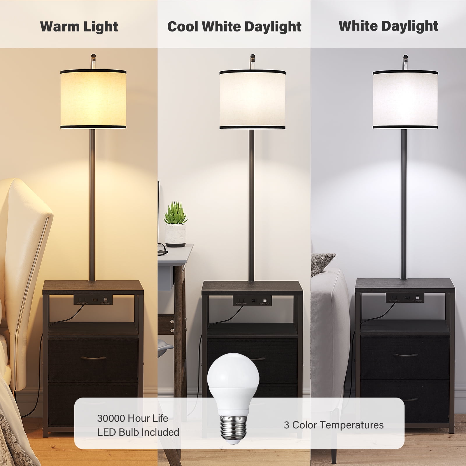 SUNMORY Floor Lamp with Table & 2 Drawers, Lamp with USB Port and Outlet, 3 Color Led Bulb Included