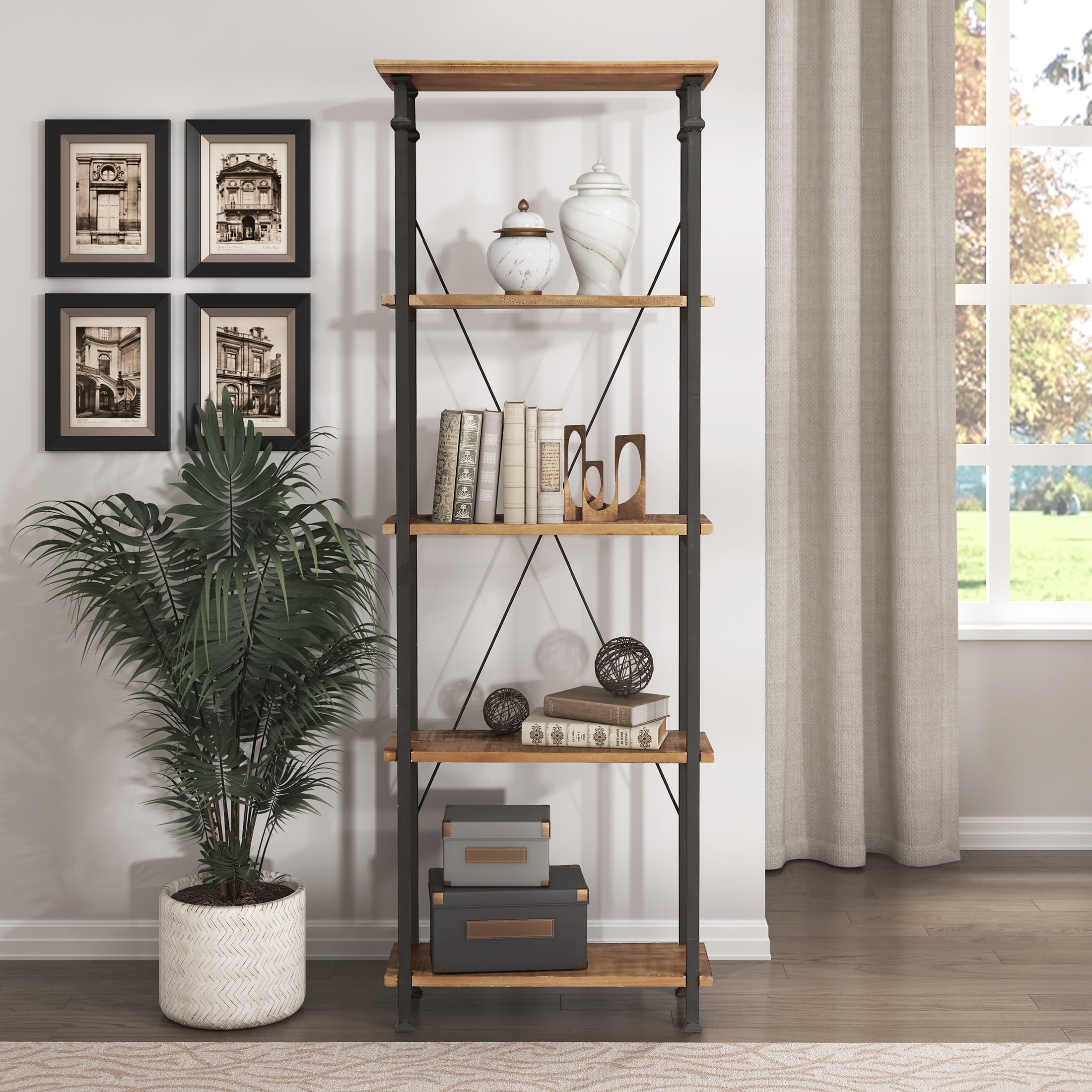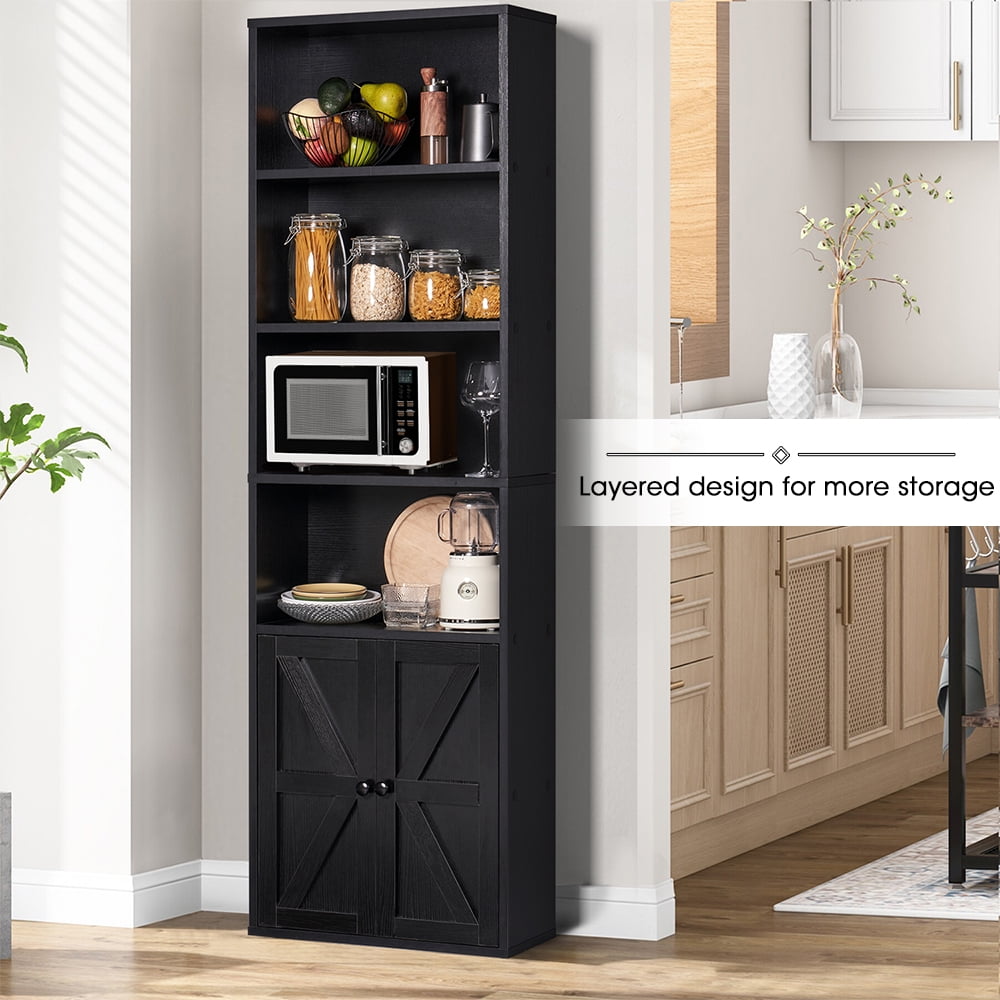 Sunmthink 6 Tier Standard Bookcase with Storage and Two Barn Doors, Black