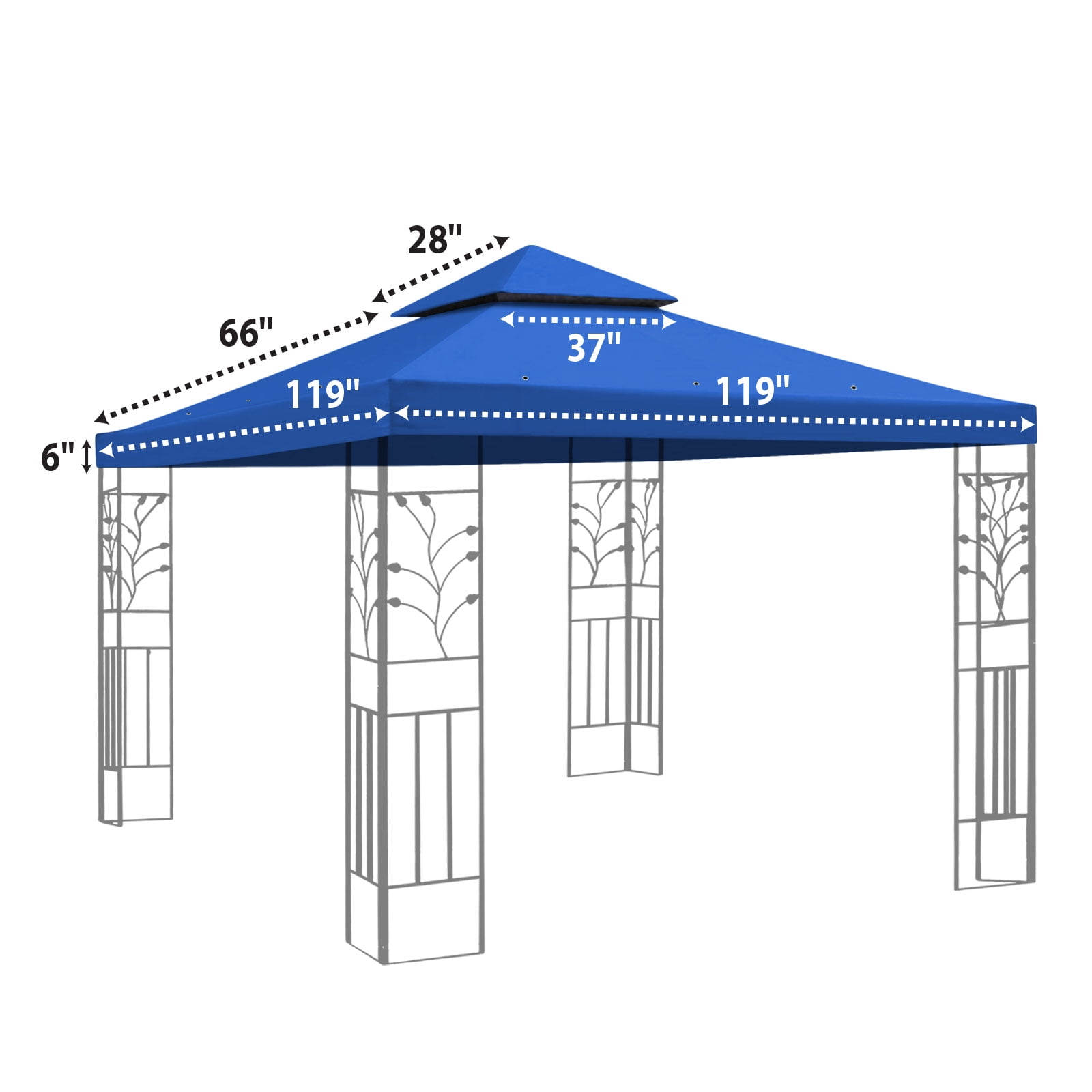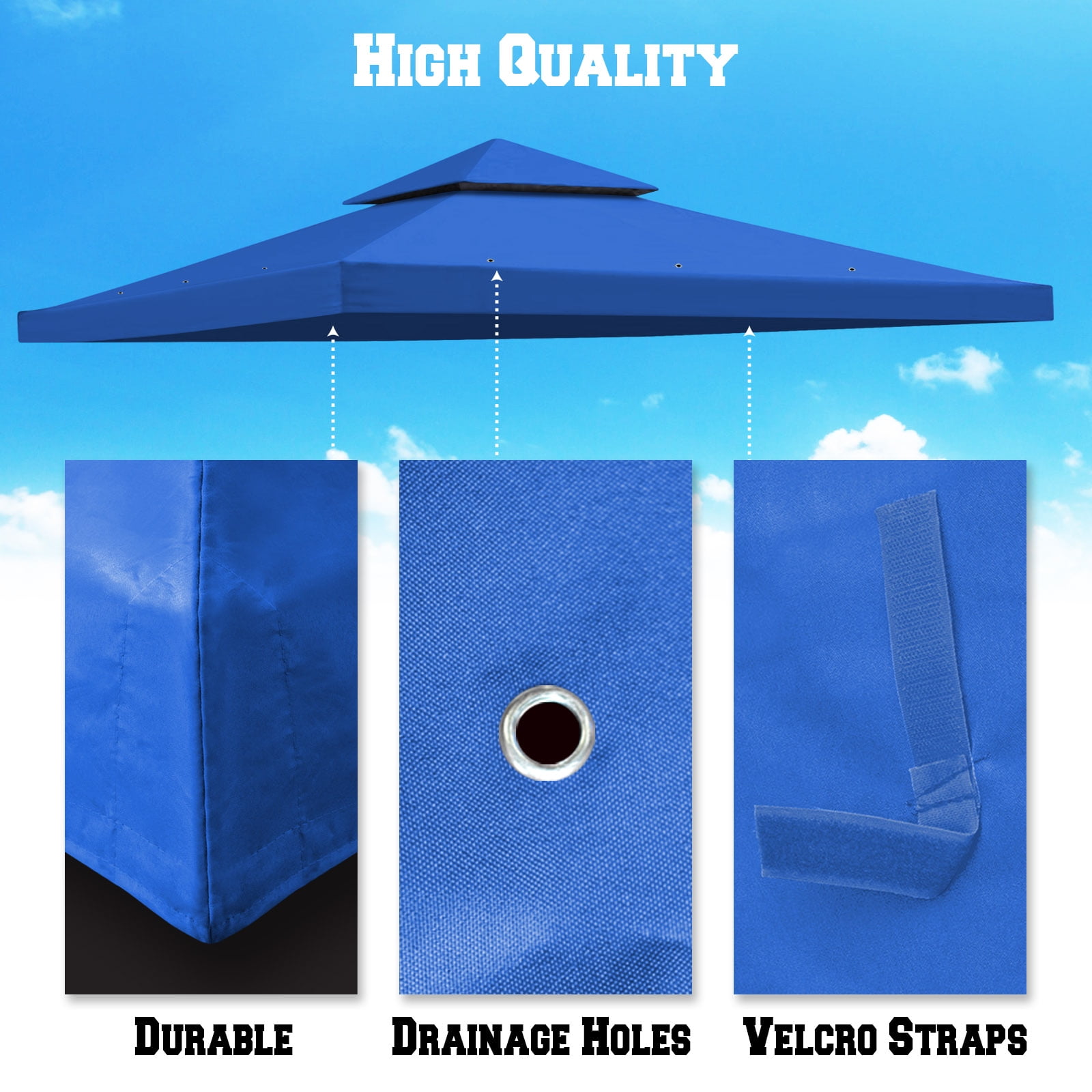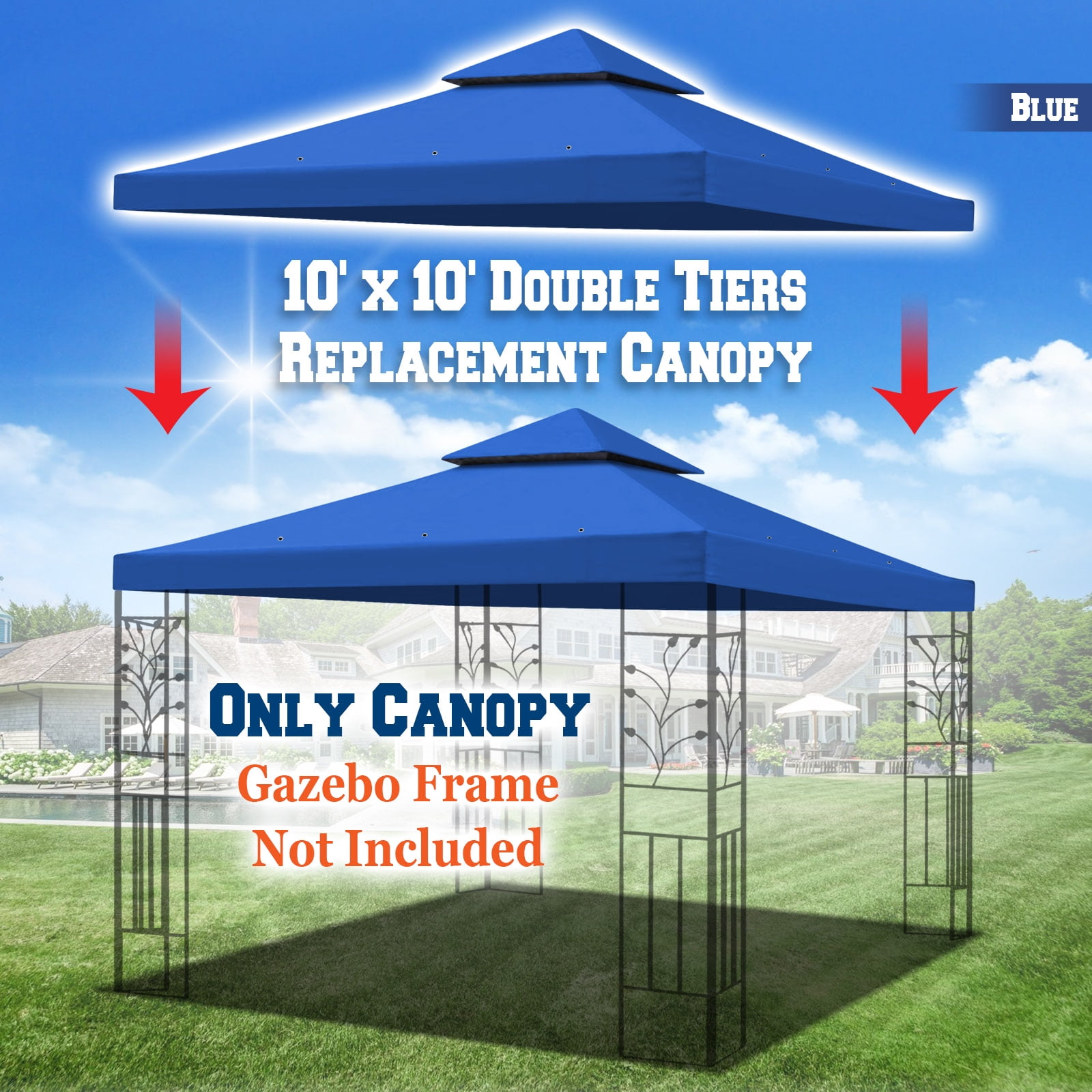 Sunny 10′ x 10′ Blue Event Outdoor Canopies, Water Repellent 10′ x 10′ replacement canopy top cover designed for easy installation Double tier design enhances ventilation and air circulation Constructed from durable polyester material for longlasting use Features beautiful plain edges for an elegant look UV protection and water repellent properties for added durability