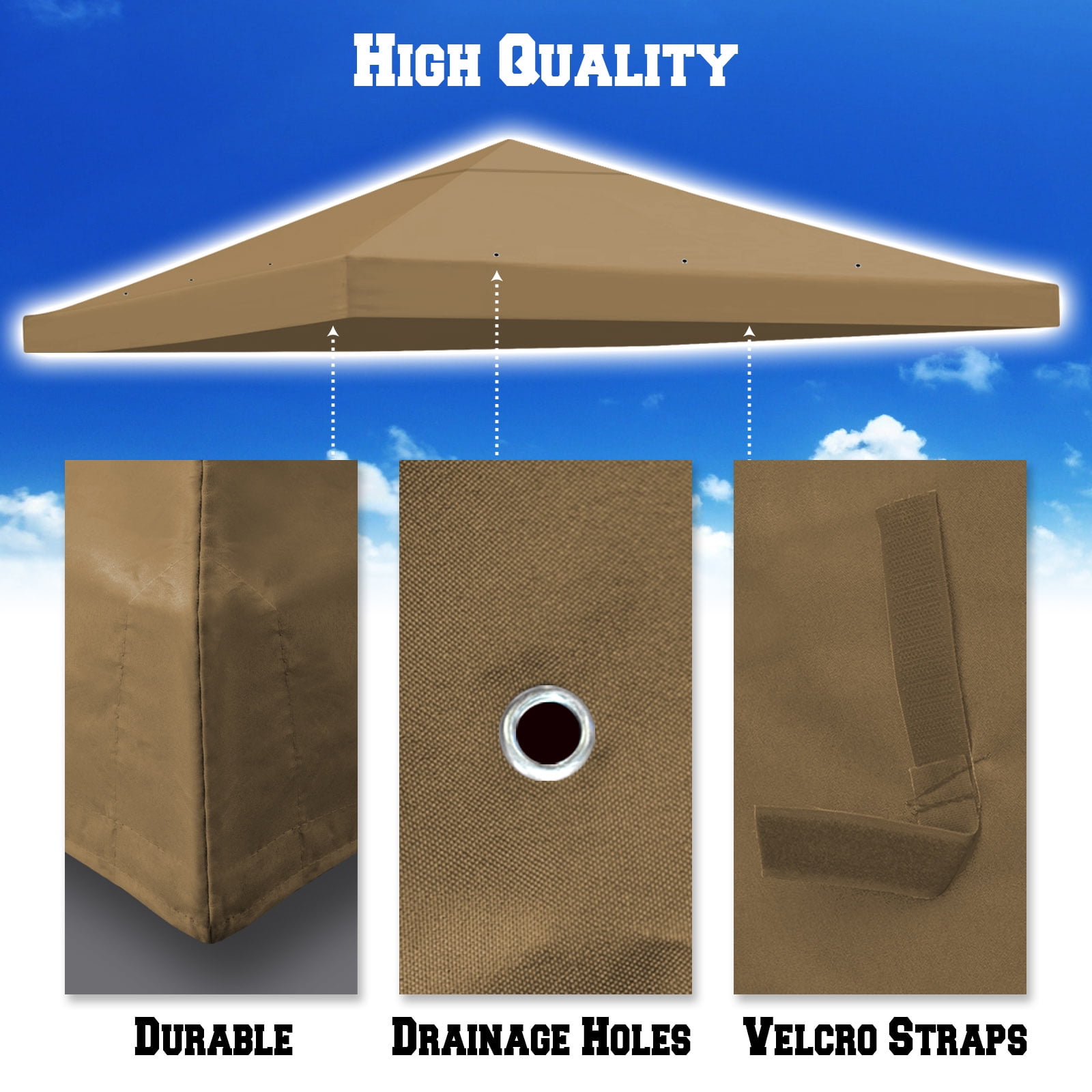 SUNNY 10×10 FT Gazebo Replacement Canopy Top Single Tier Canopy Top Cover (Tan)
