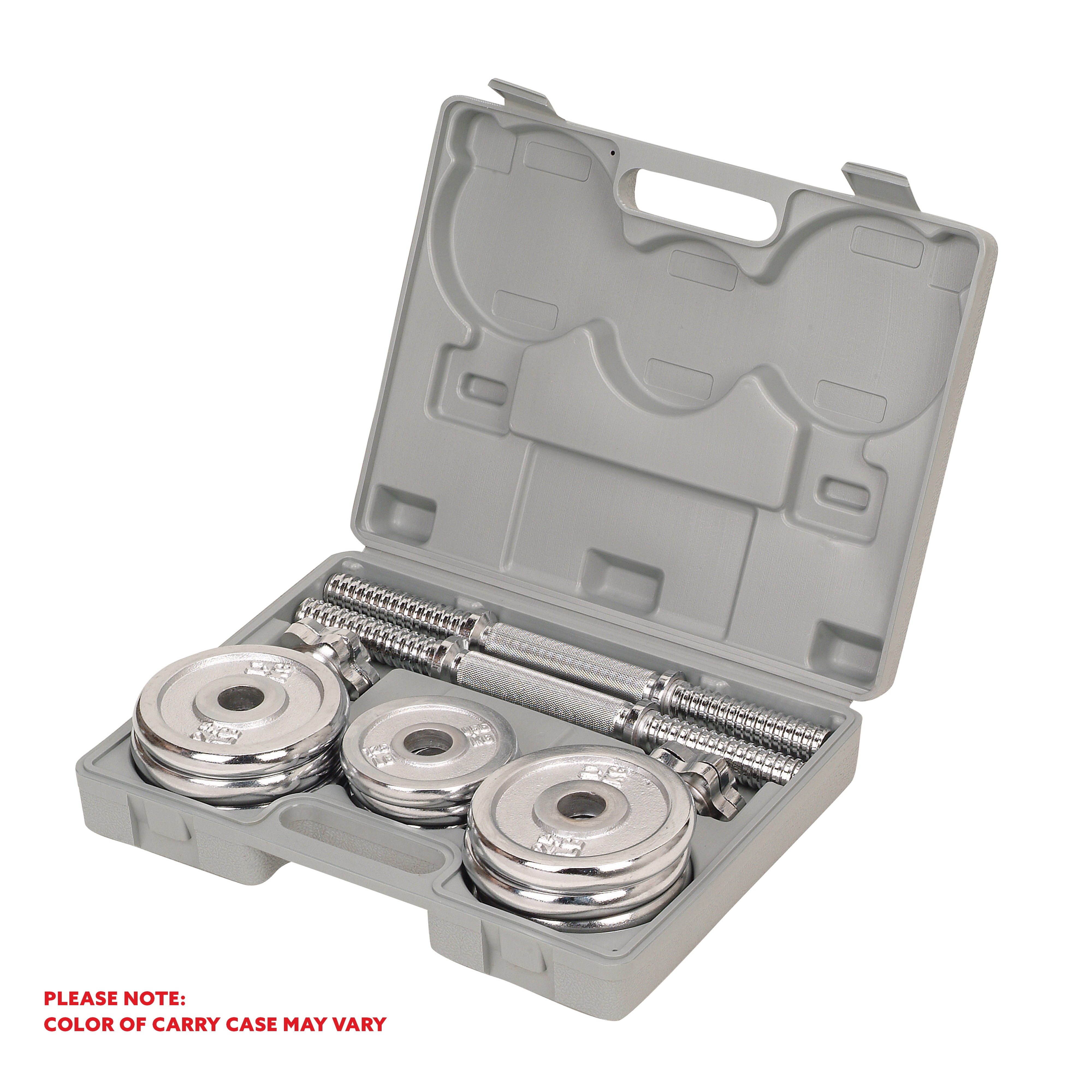 Sunny Health & Fitness 33 LB Chrome Dumbbell Weight Set Hand Weights with Carry Case (Pair) w Free SunnyFit® App Membership – NO. 014