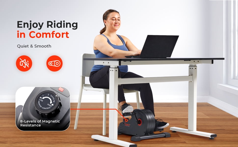 The under-desk pedal exerciser by Sunny Health & Fitness offers versatile exercise options for office workers, seniors, athletes, and those in rehabilitation. Its low-impact, smooth motion minimizes joint strain. Connect via the SunnyFit App to track and personalize your workouts with over 1,000 options and 10,000 routes. Enjoy a quiet, smooth operation with 8 levels of magnetic resistance and a belt drive mechanism. This dual-function equipment caters to both arm and leg exercises, targeting various training zones. It features easy assembly, a built-in digital monitor compatible with the Sunny HR200 heart-rate monitor, and a portable design for convenience. Crafted from premium materials, it comes with a 1-year warranty. Sunny Health & Fitness has over 20 years of excellence, supported by a dedicated U.S. customer service team.