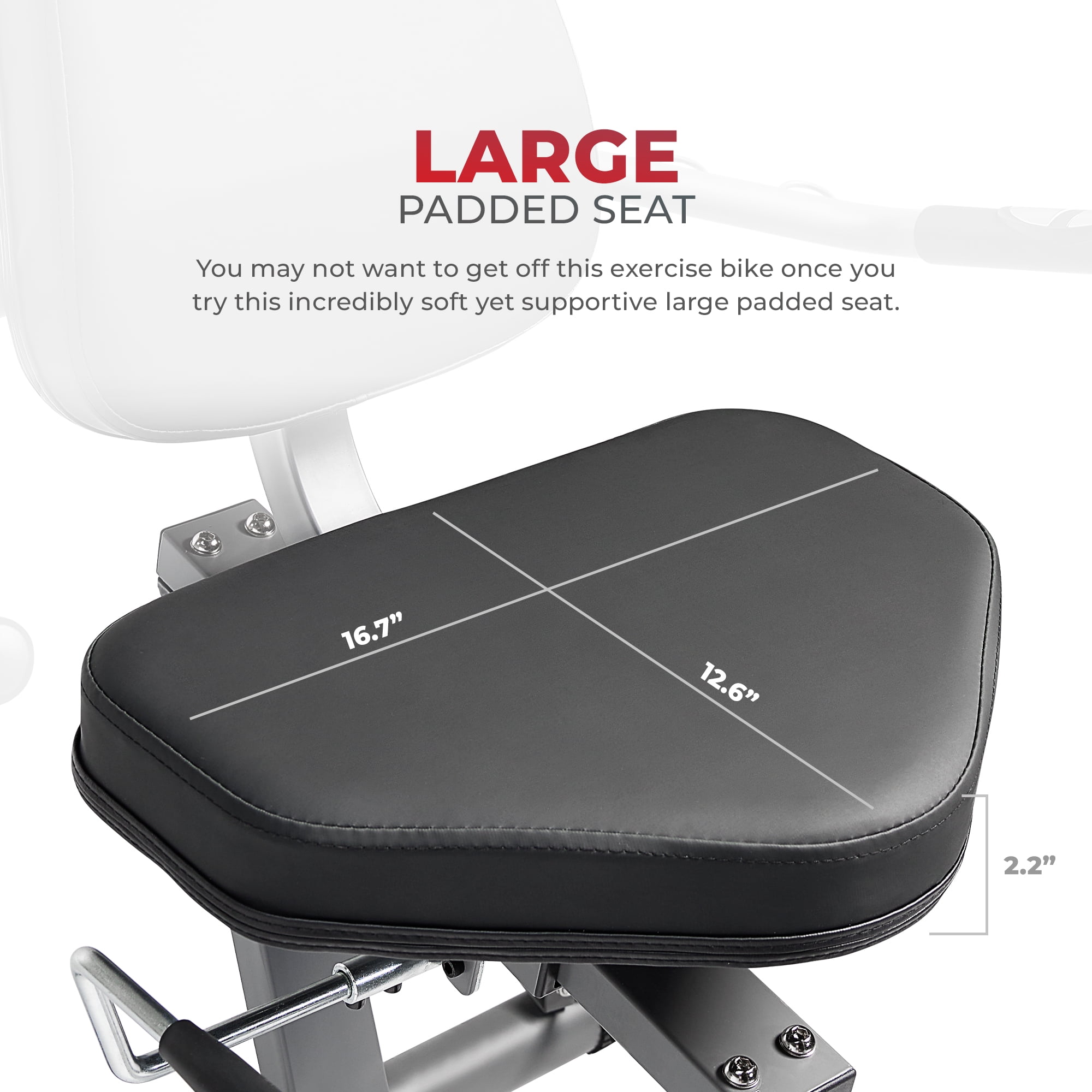 SMART PERFORMANCE FITNESS: Pedal along with Sunny Health & Fitness expert trainers on the Sunny Health & Fitness SunnyFit® APP. Connect your preferred mobile device through Bluetooth and view your performance metrics in real-time. CONNECTED FITNESS: With Bluetooth connectivity, the free SunnyFit app allows you to access 1000+ free trainer guided workouts and hundreds of other fitness programs. Track your progress, set fitness goals, access personalized workout plans, 10,000+ virtual scenic tour simulation and compete with other community members to get to the top of the leader board. Have all the workouts of your choice right at your fingertips, while also feeling supported as a member of this likeminded community. DIGITAL MONITOR: If the monitor is not connected to the SunnyFit® App, it will display fitness metrics in real-time: Time, Speed, Distance, Calories, Odometer, Pulse, Scan. FULL BODY WORKOUTS: Included resistance bands adds a new dimension to your recumbent exercise bike routine by incorporating an upper-body training component into your workouts. 3 separate placement hooks allow for positional adjustment for your body or exercise lesson. ECO-PACKAGING: Sunny is not only committed to the improvement and development of a healthy lifestyle of fitness enthusiasts but also to our environment. This recumbent stationary exercise bike is packaged with the latest in recyclable, sustainable, and biodegradable materials while maintaining its protective structural integrity. Fully ISTA-6 certified to meet the most stringent durability standards. LARGE PADDED SEAT: This recumbent exercise bike features a seat that has over 2 inches of cushioning and measuring 16.7 inches wide and 12.6 inches long. Get the most comfortable and intense recumbent exercise biking experience. PULSE GRIPS: This bike has two seat-level pulse sensors that are easy to grab while you work out. Use the data from the pulse sensor to gauge your performance. Grab the ergonomic handlebars to maintain your balance while you exercise. MAGNETIC RESISTANCE: Smooth and adjustable magnetic resistance with 8 levels makes it easy to modify the intensity or follow along with our Sunny Trainers video lessons during your home workout sessions. TRANSPORTATION WHEELS: In tight spaces, you can tilt and roll for use or away for easy storage with convenient transport wheels allowing easy movement of equipment.