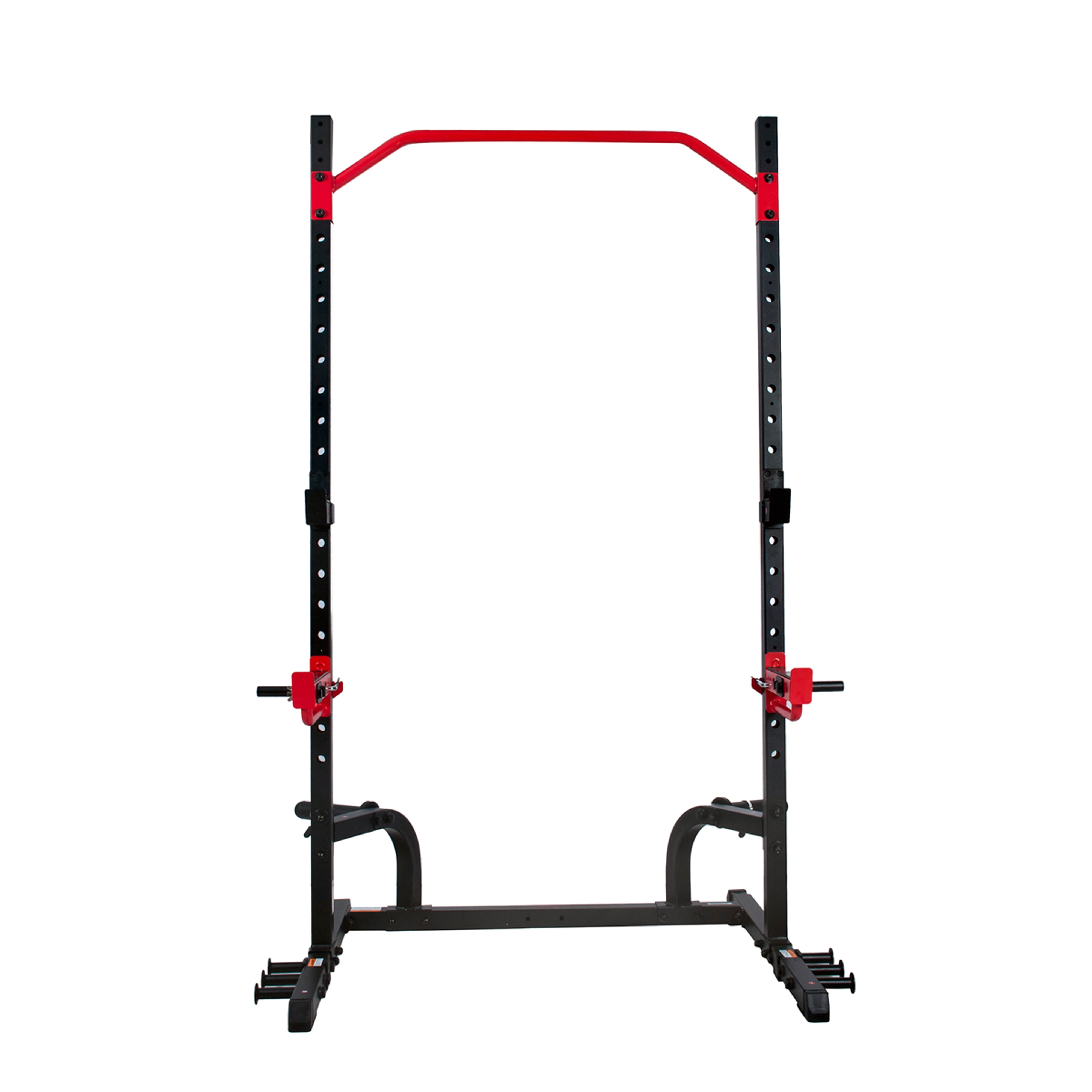 HEAVY DUTY FRAME: Constructed with premium quality steel construction, this power rack supports up to an incredible 805 lb of max weight capacity. ANGLED PULL UP BAR: The pull up bar is adjustable and reversible with 8 different positions and angled for both wide and narrow grip pull ups. SPOTTER ARMS: You will always have a spotter in the Power Zone Squat Rack with safety lock latches for ease of mind and safety assurance when squatting with heavier weights. OLYMPIC PLATE STORAGE: With safety clips, organize weights on racks while adding extra stability when utilizing the machine. (Weights NOT included). OLYMPIC BARS: Fits up to 7 ft Olympic Bars. RESISTANCE BAND POSTS: 6 Resistance Band Pins (3 per side) to increase versatility and add extra resistance for your lifts and squats. (when using resistance bands, weight plate storage should be fully stacked to prevent tipping over). Compatible with SF-BH620037, SF-BH620038, SF-BH6920, SF-BH6921, SF-BH622045, SF-BH6996, SF-XF9927, SF-XFA001, SF-XFA002, SF-XFA003, SF-XFA004, SF-XFA005, SF-XFA006, SF-XFA007, SF-XFA008, and SF-XFA009.