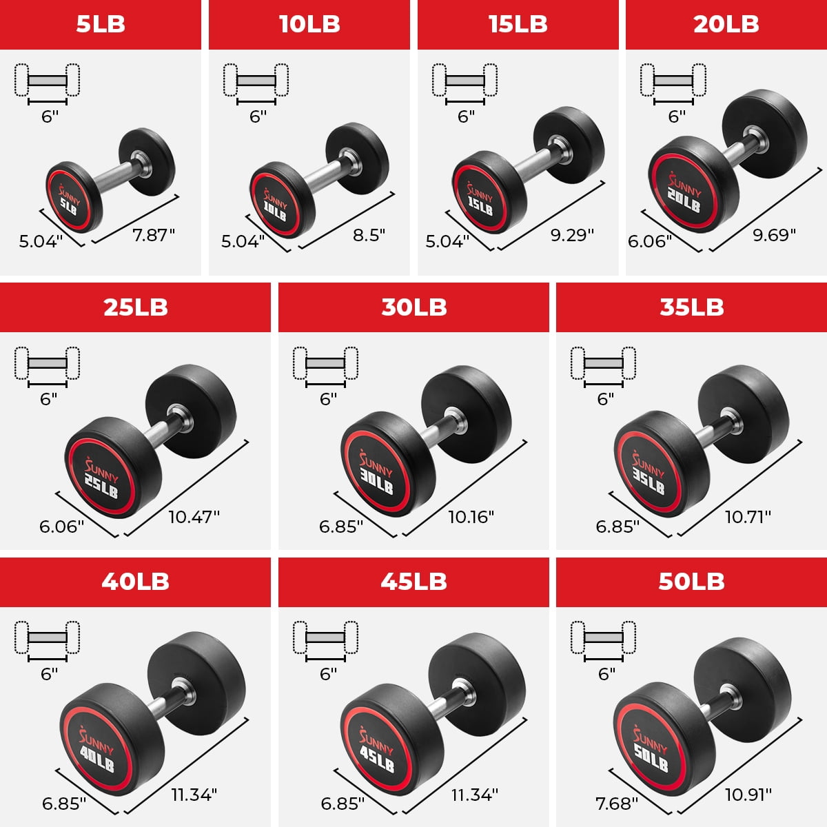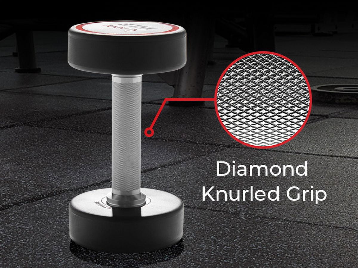 【Premium Polyurethane Construction】 The Signature Round Dumbbells are crafted with high-quality polyurethane plates and solid steel handles, guaranteeing exceptional durability and longevity. Designed to withstand rigorous workouts, these dumbbells offer long-term value and reliability. 【Advanced Handle Design】 Our dumbbells feature a chrome finished handle that is not only corrosion-resistant and visually appealing but also minimizes wear and tear. The diamond knurled texture provides a secure and comfortable grip, enhancing control and reducing the chances of slippage during exercises. Experience a durable and comfortable handle that ensures longevity and stability throughout your workouts. 【Versatile Training】 Elevate your fitness with these dumbbells designed for optimum performance. Unlock the power of balance, flexibility, and strength as you engage in a comprehensive training experience. These dumbbells require precise stabilization, enabling you to explore an extensive range of motion and effectively target multiple muscle groups. Suitable for individuals of all levels, from beginners to advanced enthusiasts, these weight options, ranging from 5 to 50 lbs. 【Compact and Space-Saving Design】 With dimensions of 8.5L x 5.04W x 5H inches, these dumbbells have a compact footprint, making them ideal for small home gyms or workout spaces. They take up minimal space and can be easily stored when not in use. 【Odorless and Rubber Smell-Free】 Enjoy a clean and fresh workout environment with our dumbbells, free from any unpleasant rubber odors or smells.